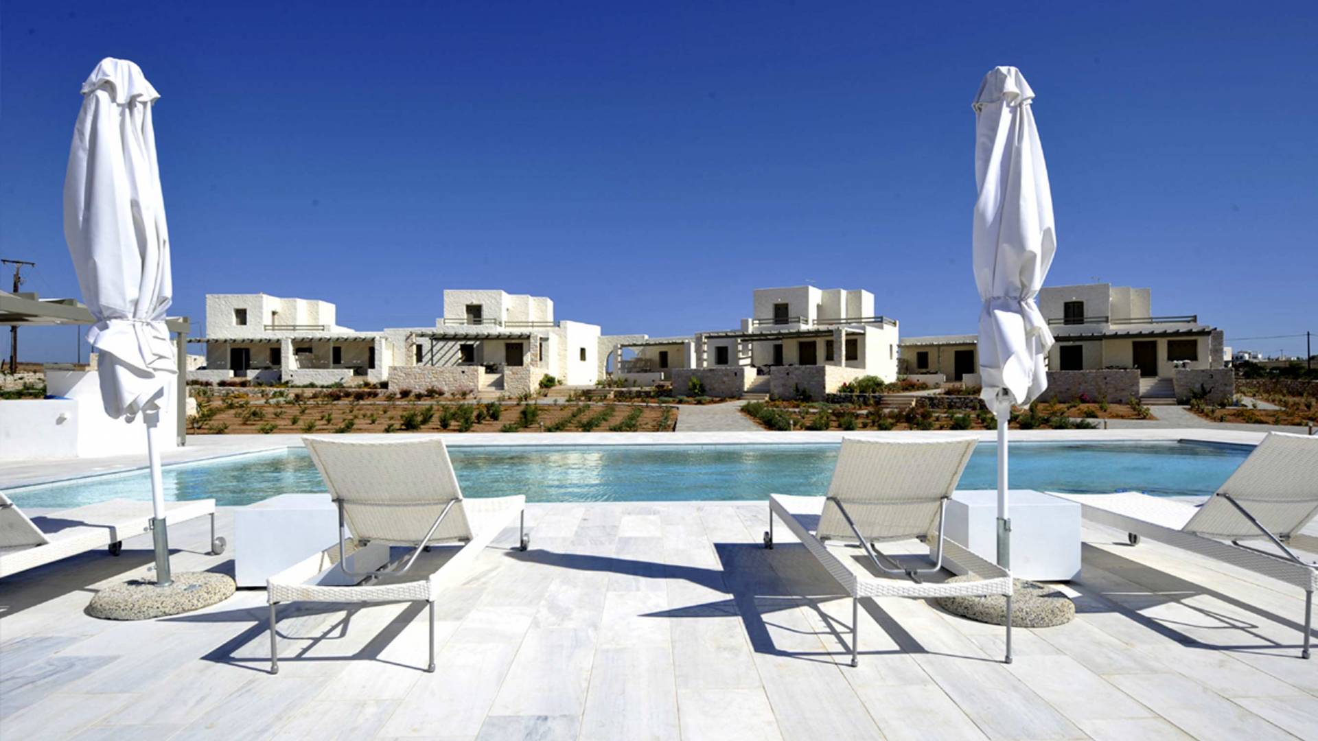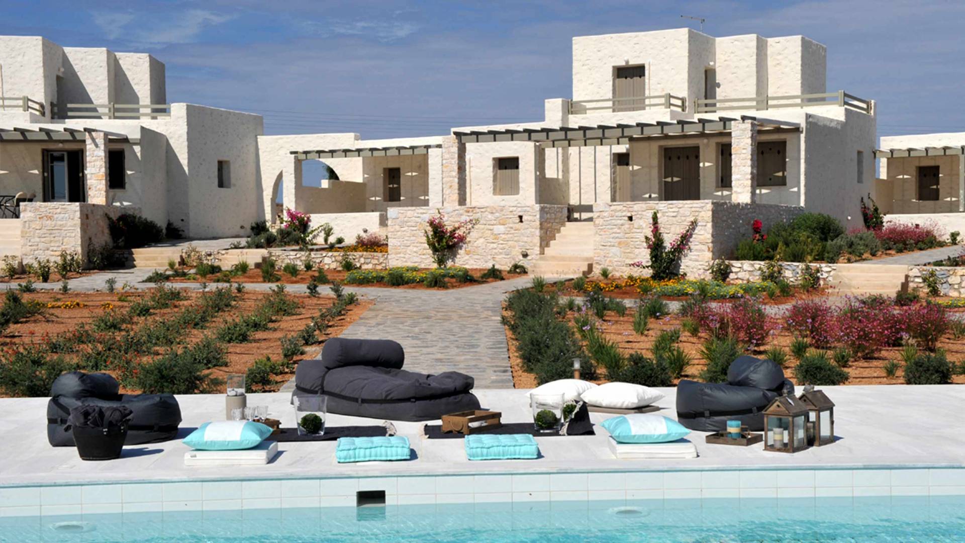 Stagones Villas Paros, un exclusivo complejo de alquiler de villas, que ofrece privacidad, alojamiento espacioso y suntuosamente amueblado. Stagones Villas Paros consta de siete villas ubicadas en el pueblo costero de Ampelas, a solo 10 'en coche del conocido destino, Naoussa de Paros.