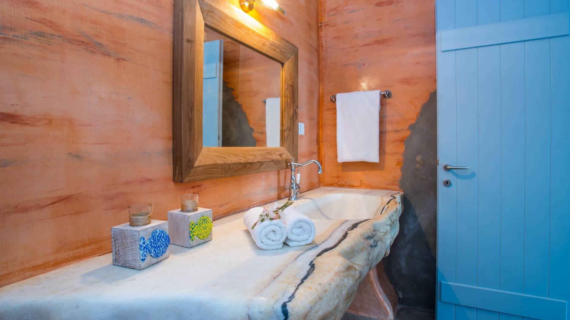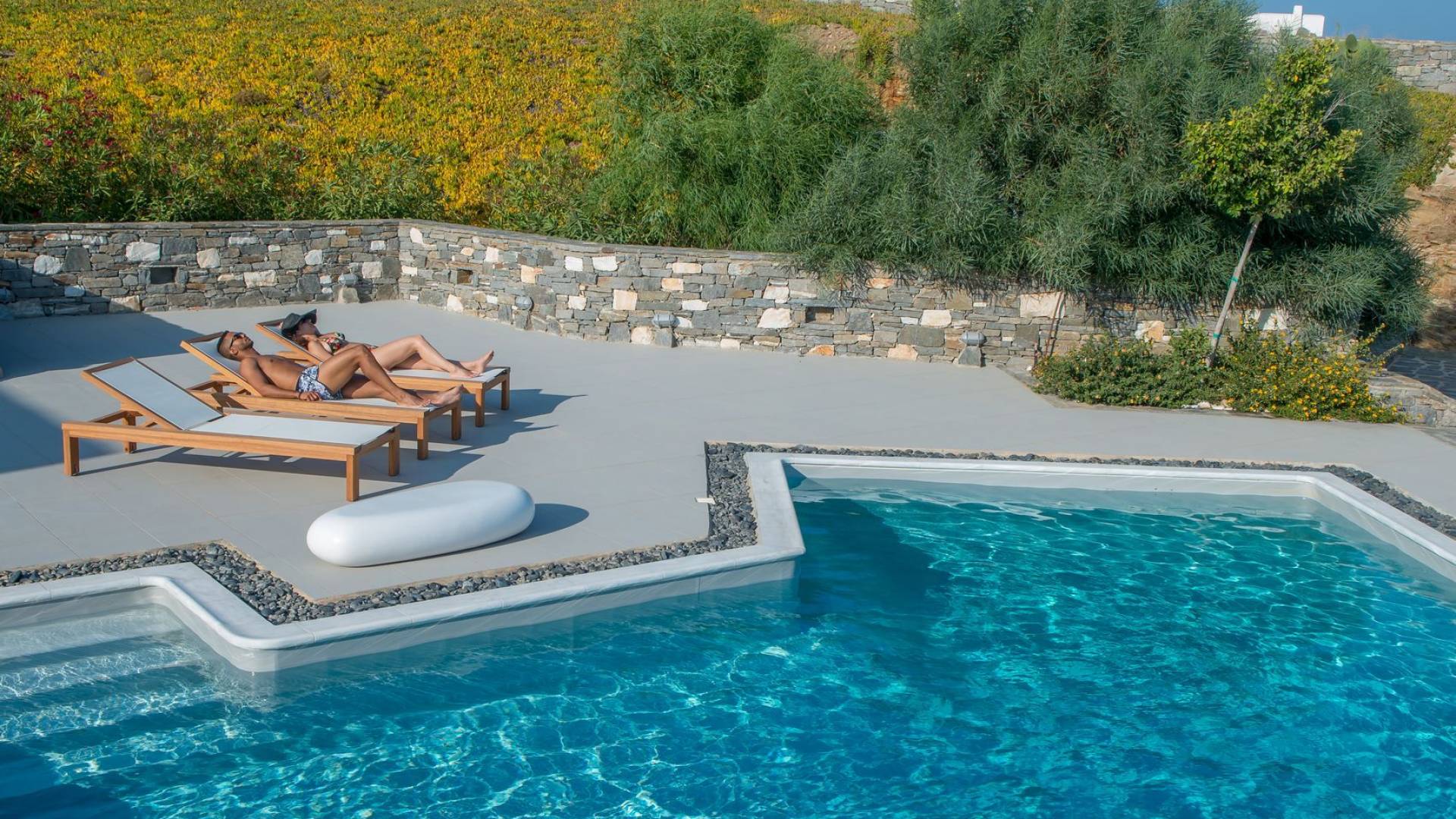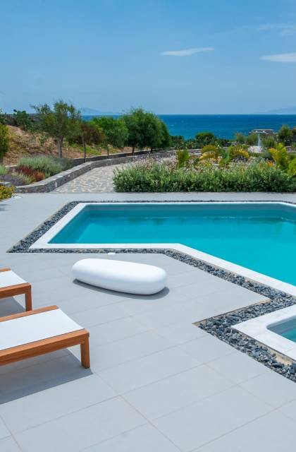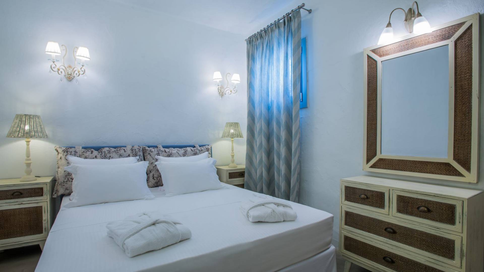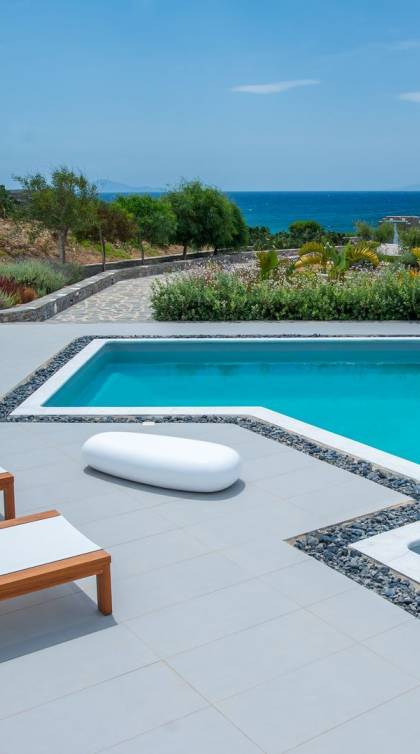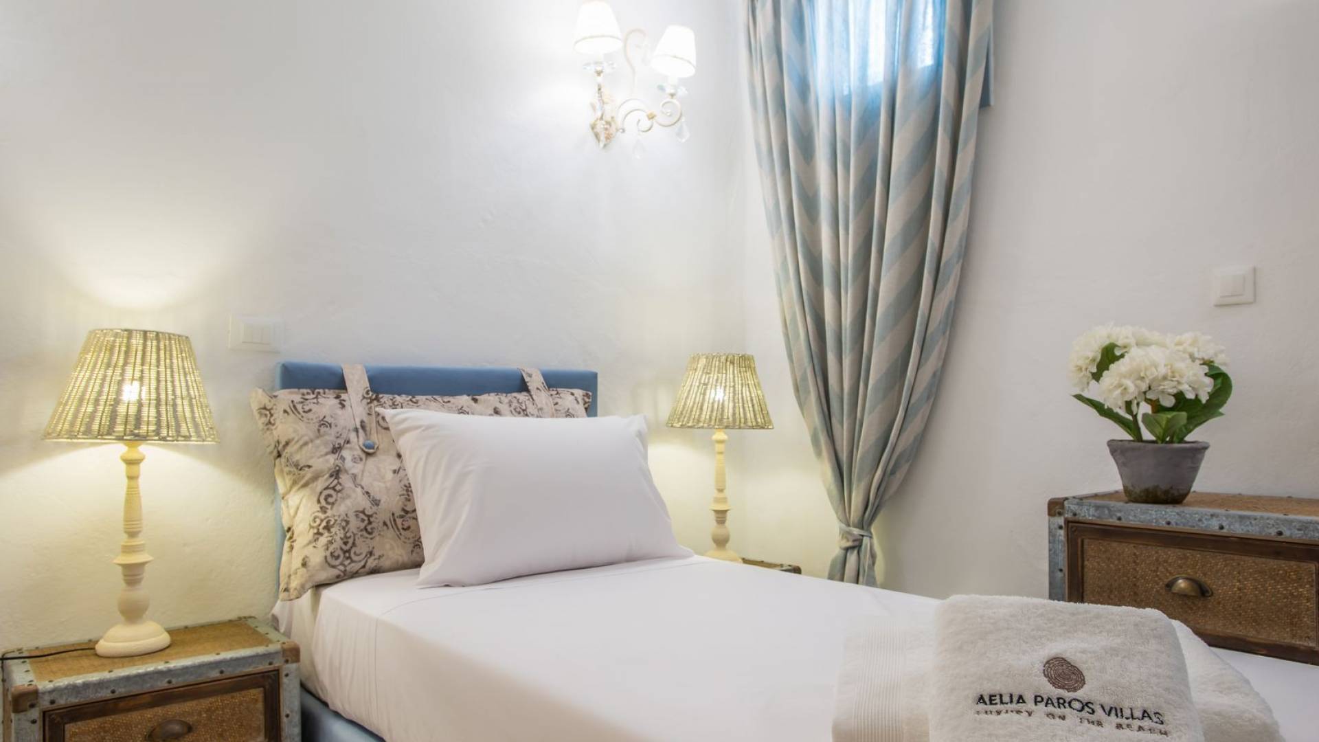 Grand Villa es una magnífica villa de dos niveles de 195 metros cuadrados que puede acomodar hasta ocho personas. La Grand Villa ofrece cuatro espaciosas habitaciones con dos camas individuales que se pueden juntar y transformar en una cama doble para mayor comodidad. La villa cuenta con tres baños donde el elemento principal de diseño es el mármol, ya que Paros es la patria del mejor mármol del mundo.