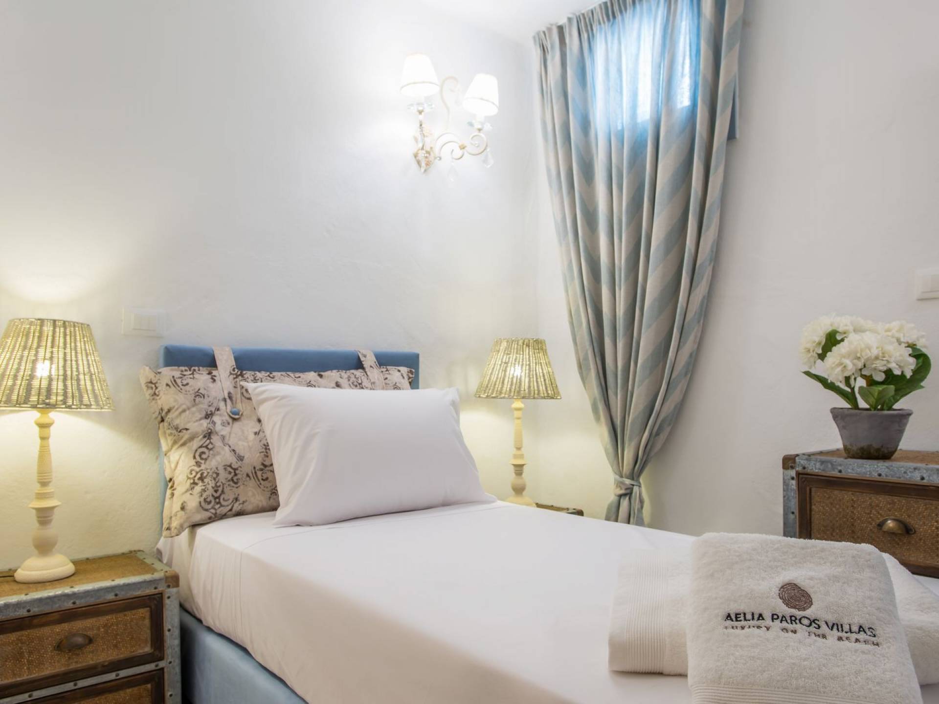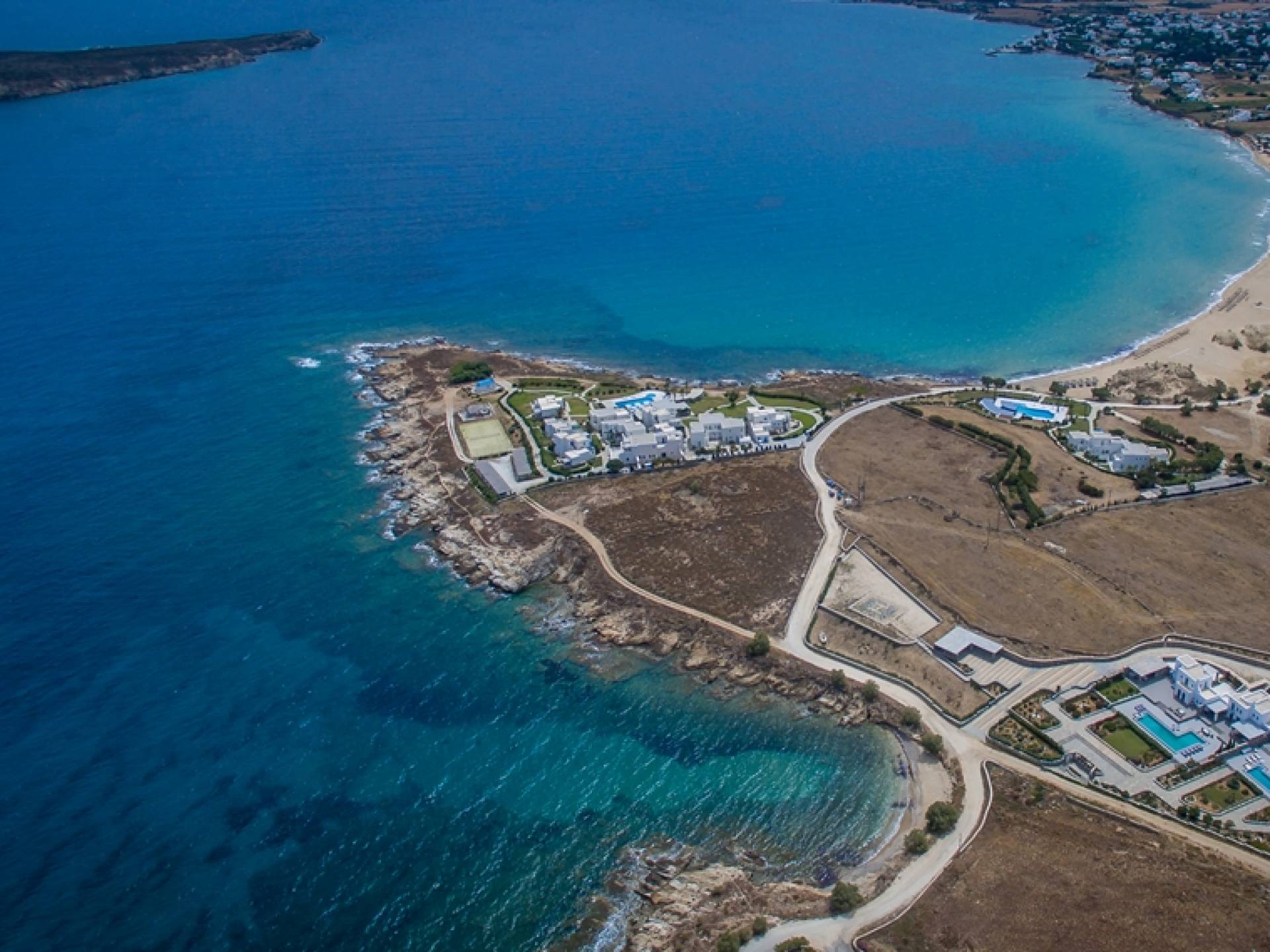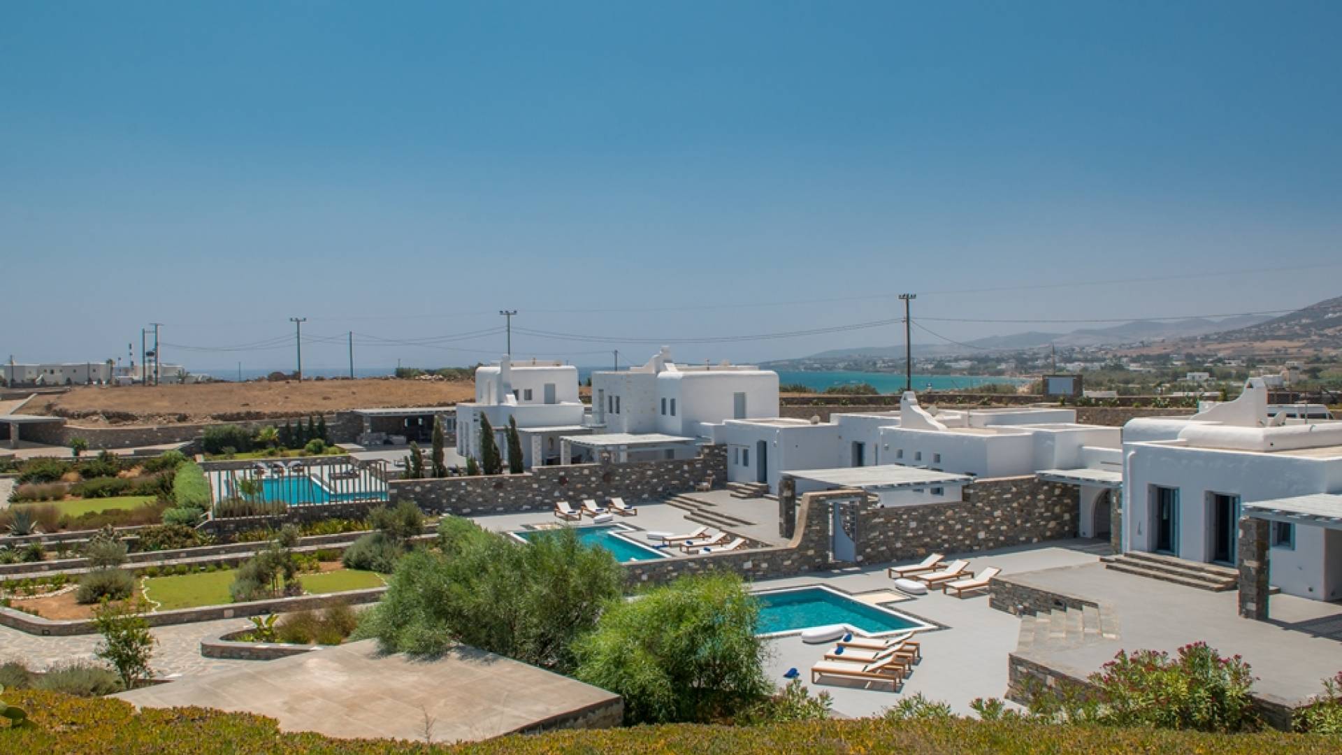 Aelia Paros Villas es un grupo de cuatro villas de alquiler privadas, ubicadas en el lado este de Paros, a pocos minutos a pie de la hermosa playa de arena de Golden Beach. Construido sobre 11.500 metros cuadrados de terreno, el complejo de 4 edificios rodea tres grandes piscinas. Diseñadas y construidas siguiendo la arquitectura de las Cícladas, las villas se mezclan armónicamente con el entorno natural.