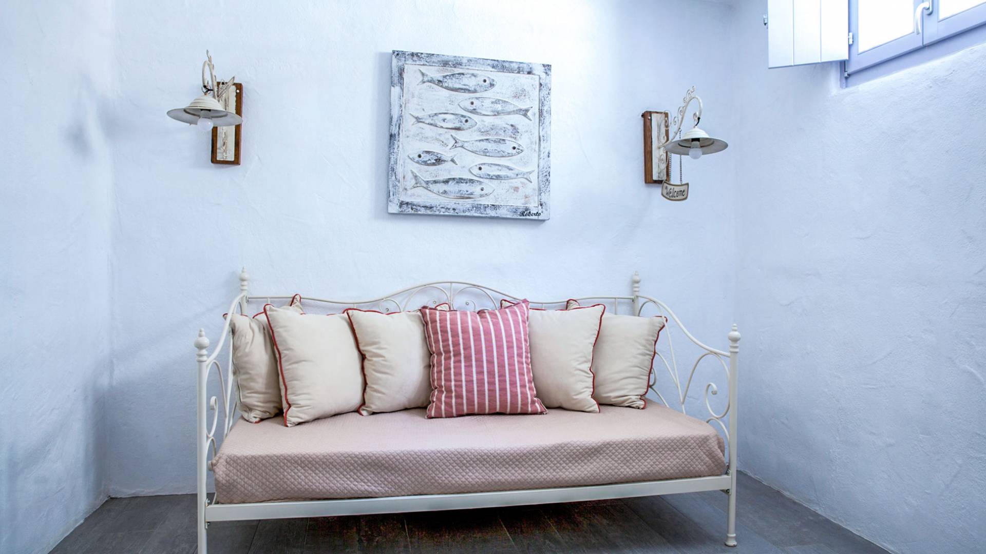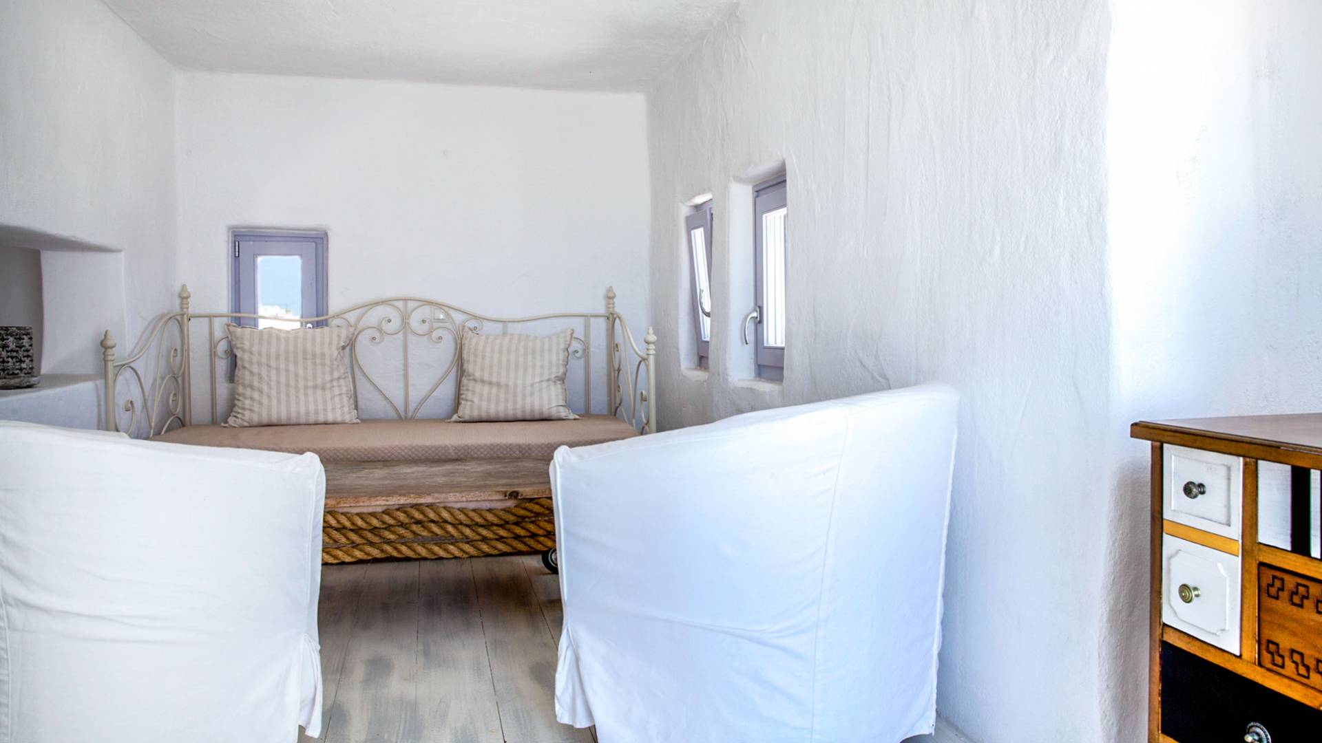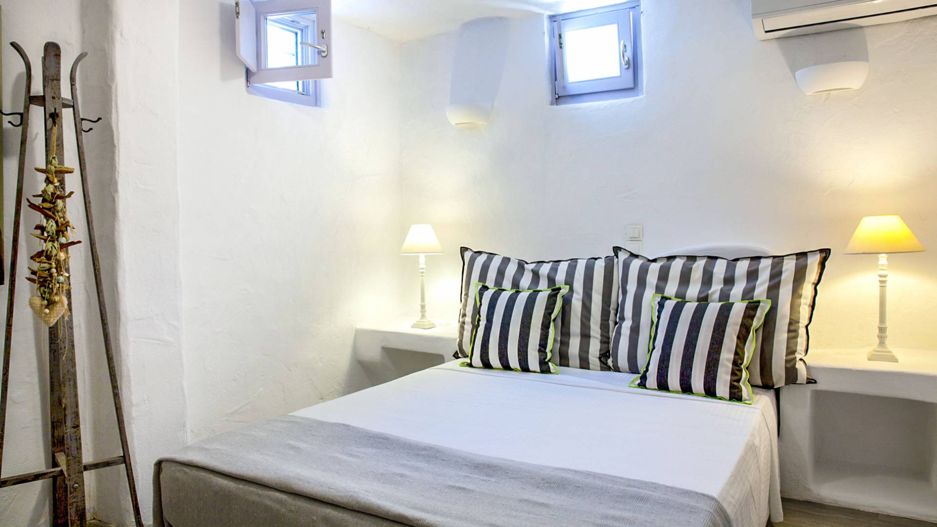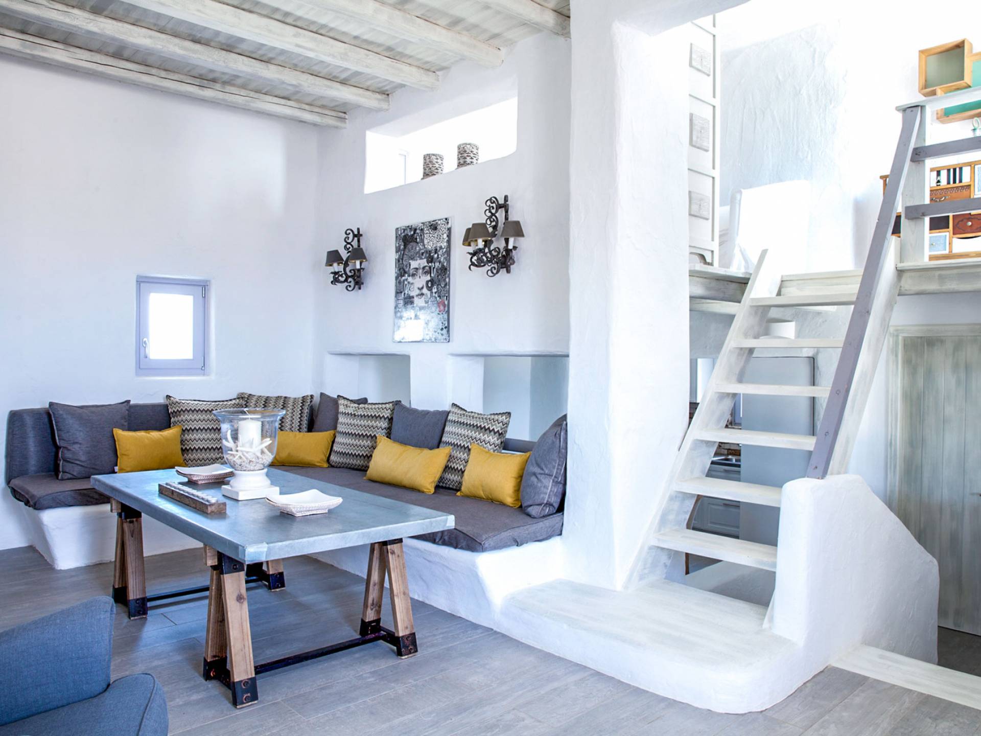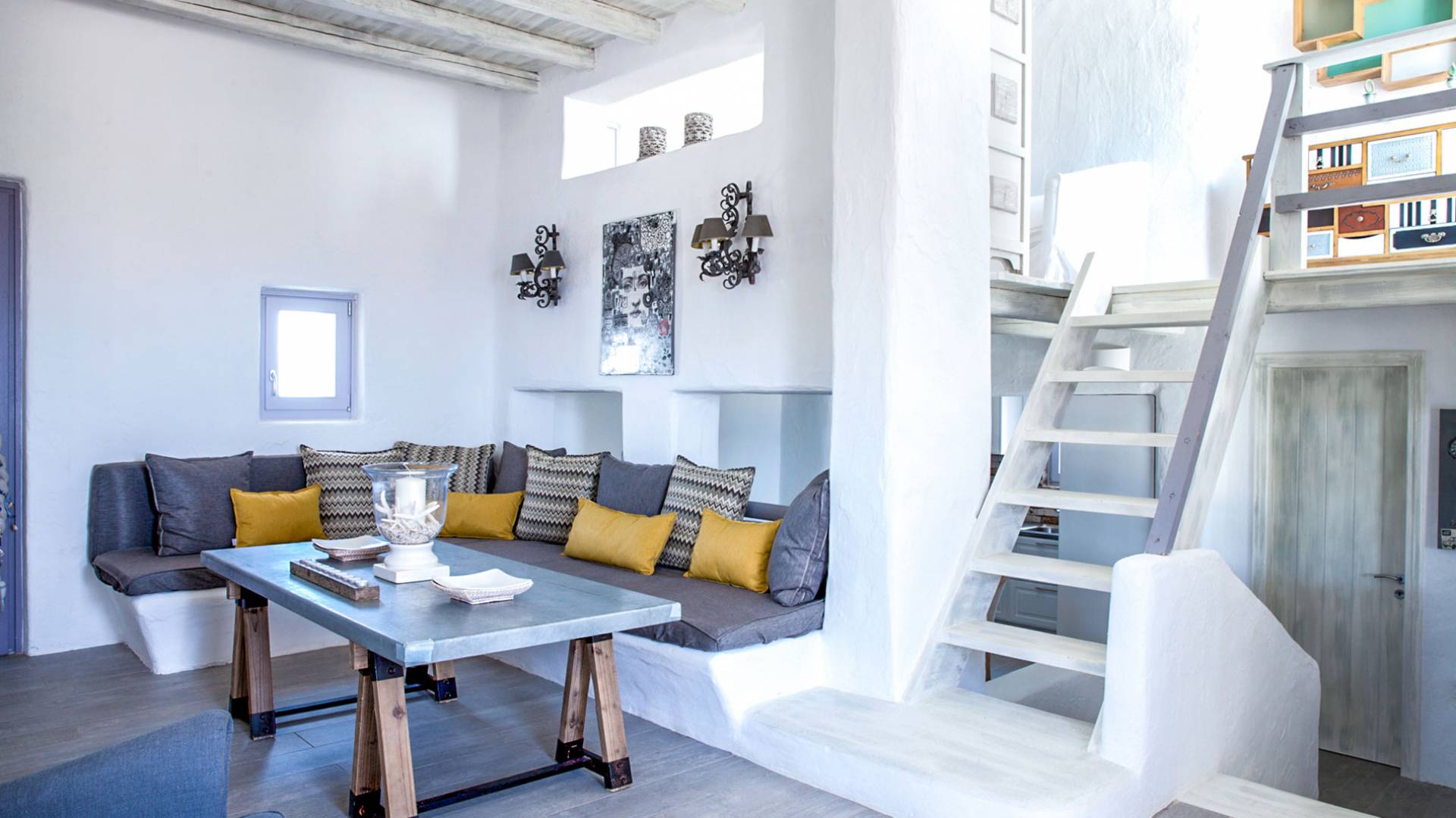 Premium 3 Villa en Alfa Villas Paros ofrece áreas de descanso al aire libre y es una opción ideal para 4 adultos y 1-2 niños. La villa está totalmente amueblada con buen gusto y consta de 2 dormitorios, 1 o 2 camas supletorias para los niños en un espacio diáfano, 1 o 2 baños, una elegante sala de estar, un comedor y una cocina. μDesde el salón al aire libre, los huéspedes pueden disfrutar de fascinantes vistas al mar y relajarse en varios lugares para descansar y tumbonas que bordean la pequeña piscina. El salón con TV plana se encuentra en la planta baja. La cocina abierta y totalmente equipada también se encuentra en el mismo piso, así como un comedor con una elegante mesa redonda. En la planta sótano, hay dos dormitorios bellamente decorados con baños en suite.