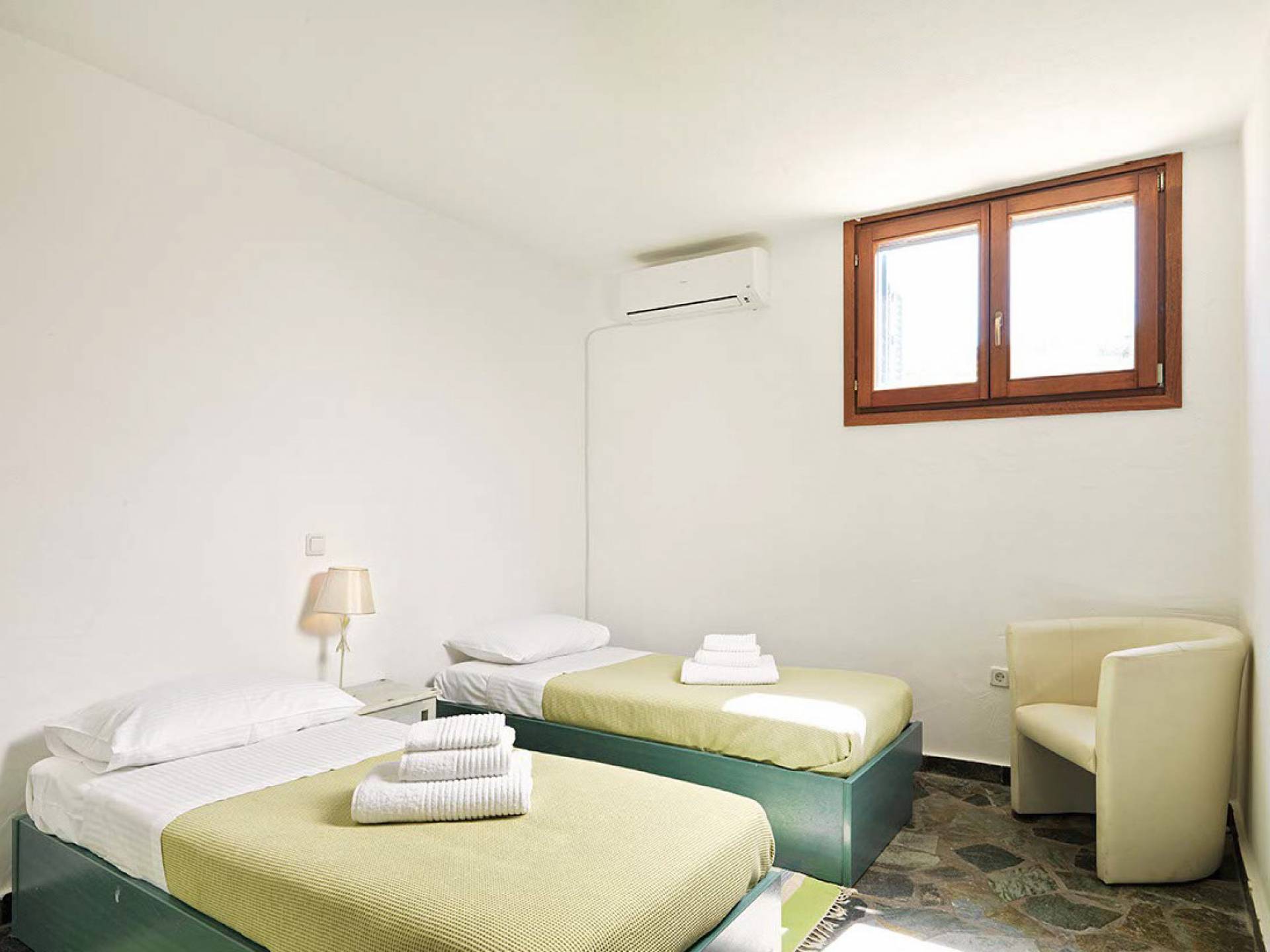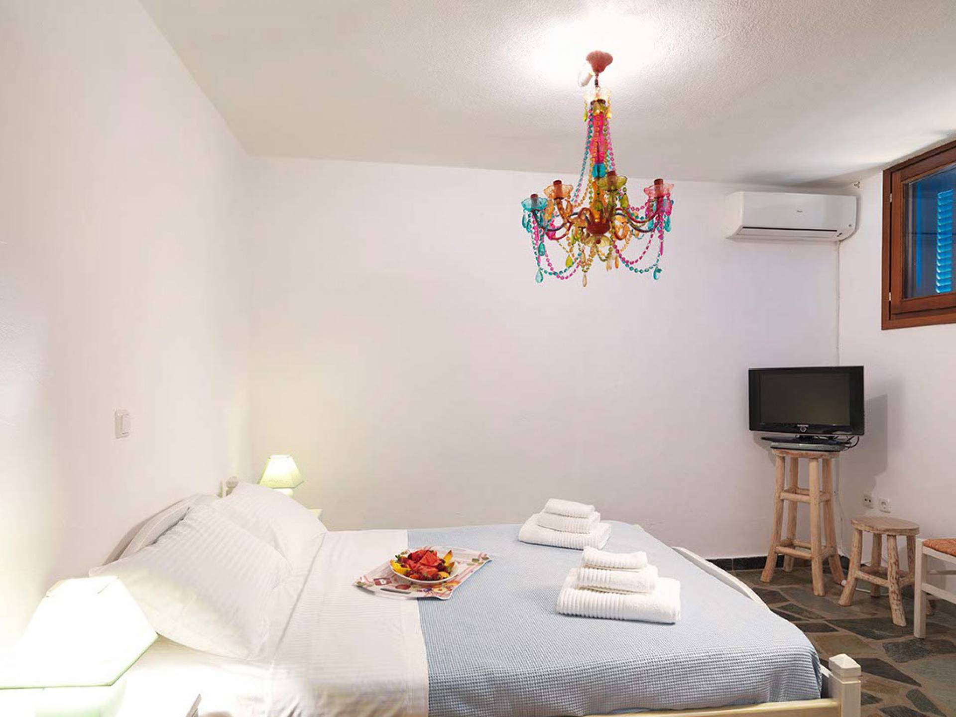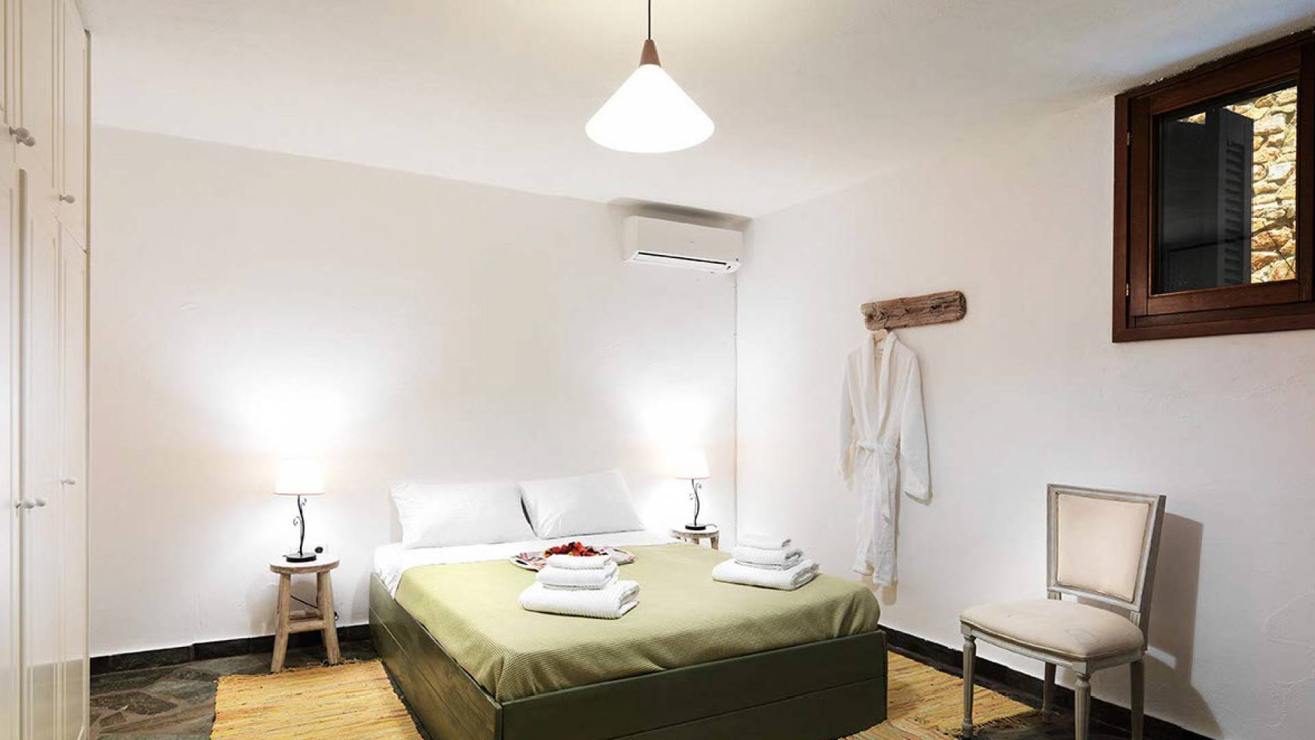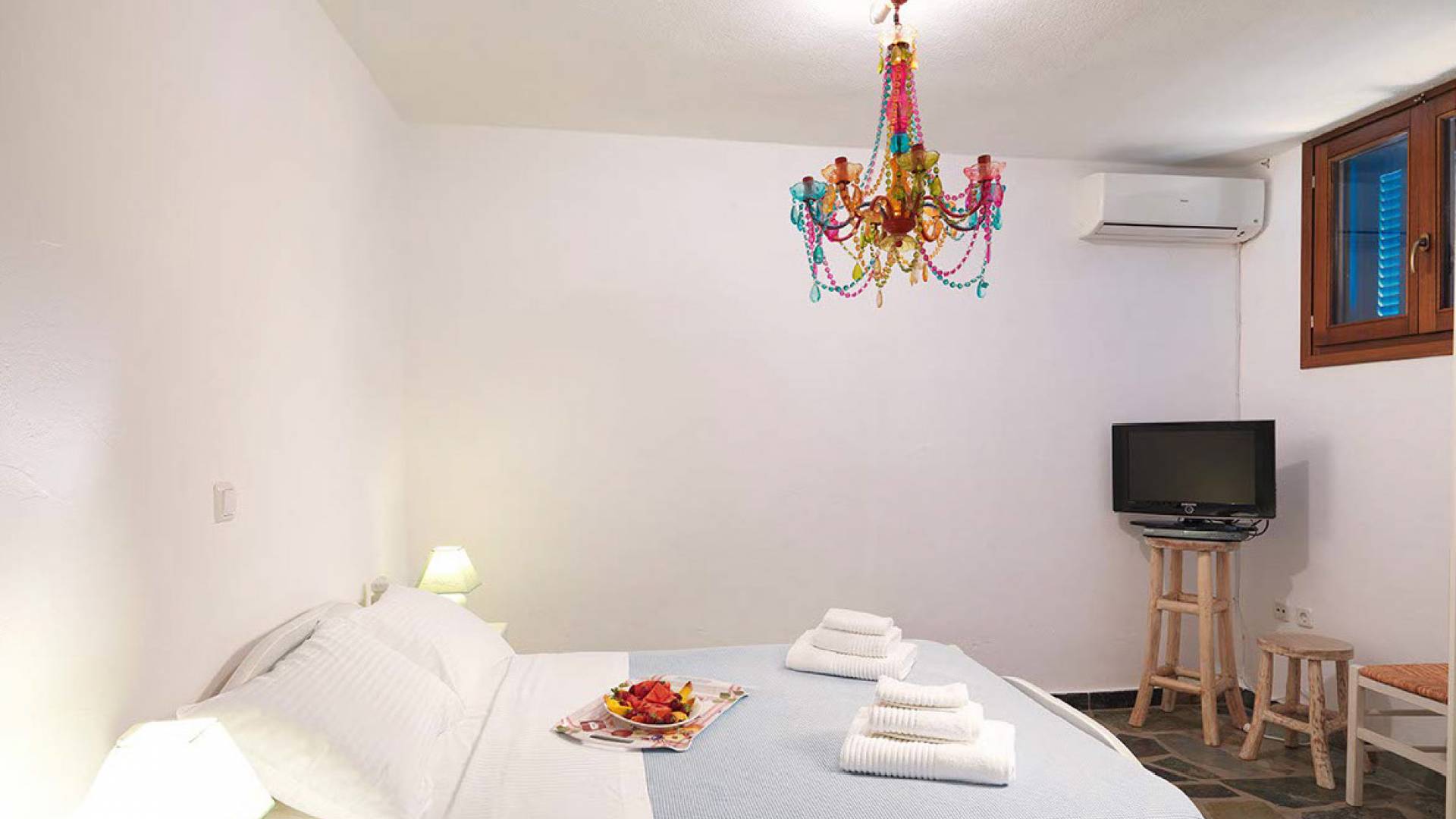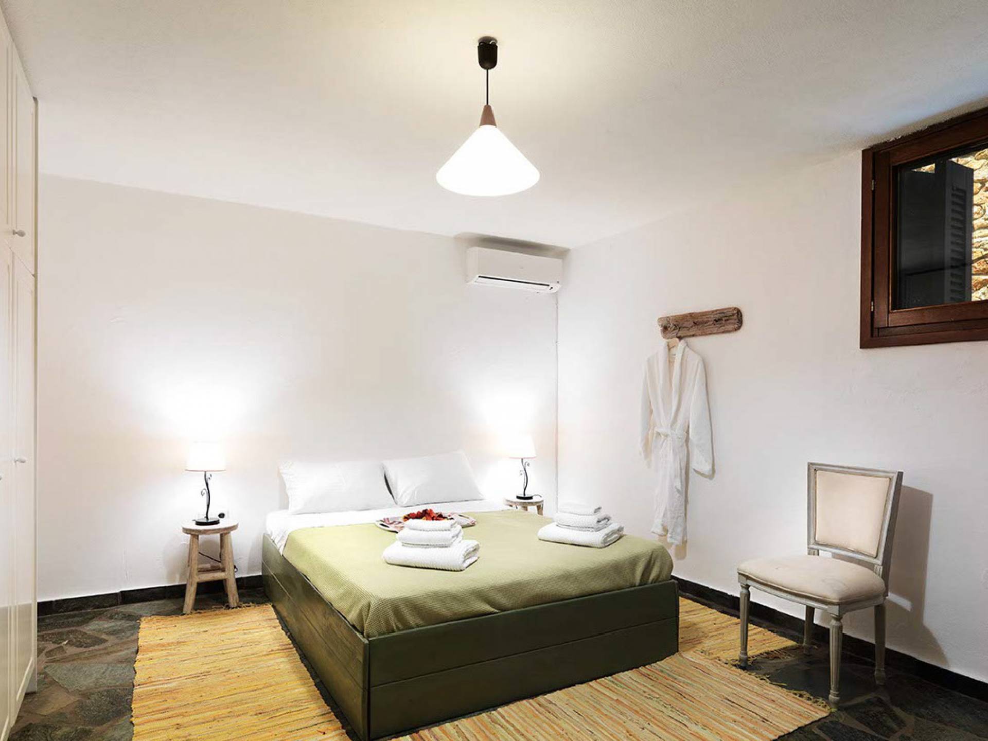 Villa Artemis Paros tiene 175m2 con 800 m2 de terreno, en dos niveles con 5 dormitorios (dos grandes maestros con baños no adecuados), un baño más y un aseo con una pequeña ducha. La villa está equipada con todos los electrodomésticos (horno y lavavajillas empotrados, frigorífico, lavadora, etc).