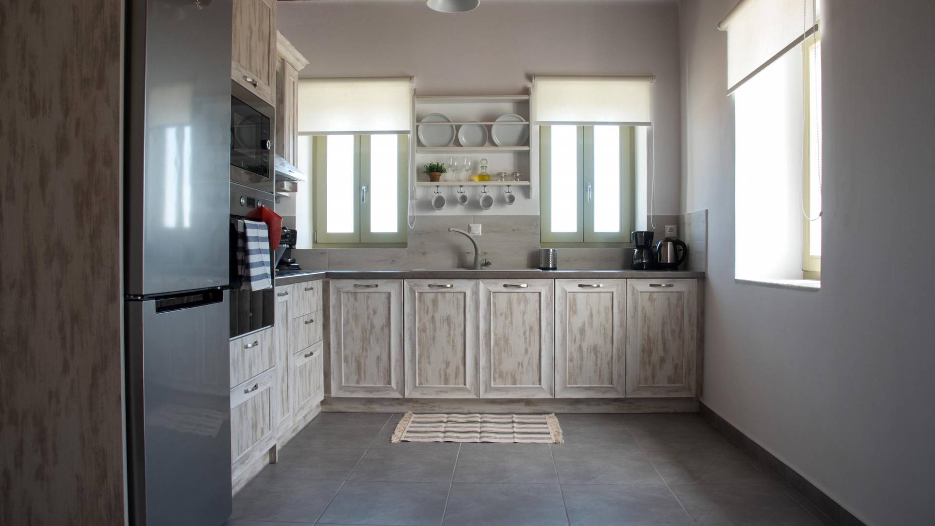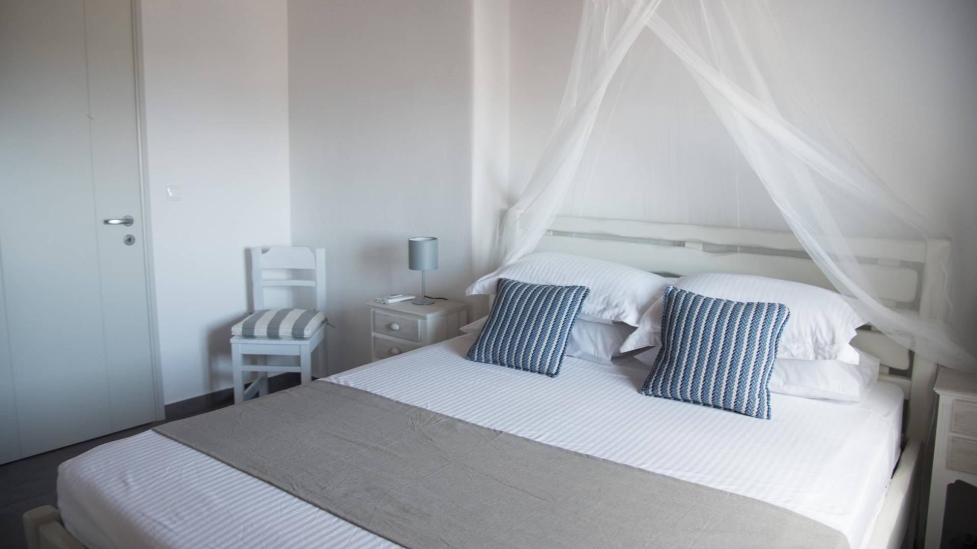 Agiasi Villa III Paros es una propiedad de dos pisos que puede albergar hasta 6 personas. En el nivel superior, hay una cocina totalmente equipada (horno, microondas, hornillos, nevera y congelador) y una cómoda sala de estar y comedor. También cuenta con dos baños con ducha, secador de pelo y productos de limpieza. Esta magnífica villa tiene en total 3 dormitorios. Uno está ubicado en el segundo piso y tiene una vista maravillosa del pueblo y el mar Egeo, mientras que los dos dormitorios inferiores tienen una vista espléndida de la isla de Naxos. Siguiendo la arquitectura de las Cícladas, todas las camas están empotradas. La mini cocina adicional cuenta con placas eléctricas y una nevera pequeña. También hay una lavadora-secadora y una máquina de planchar.