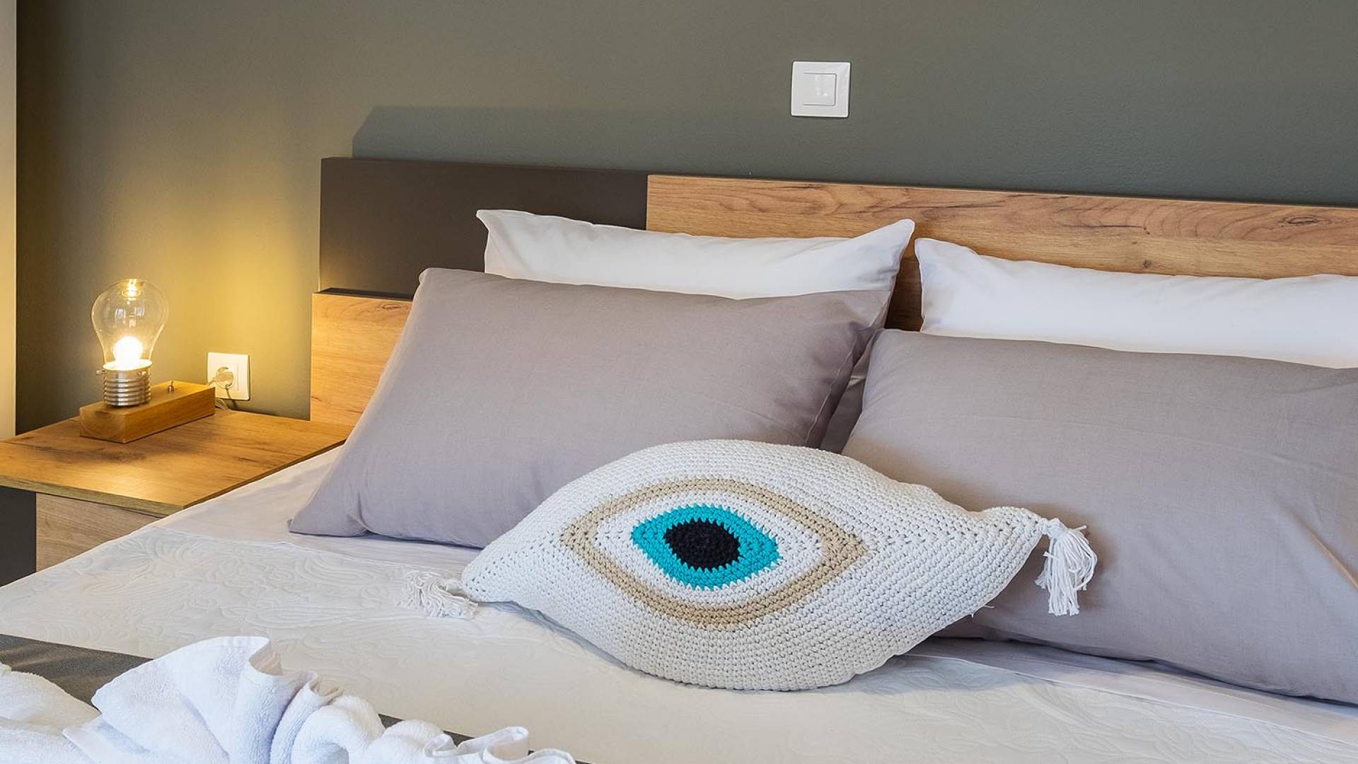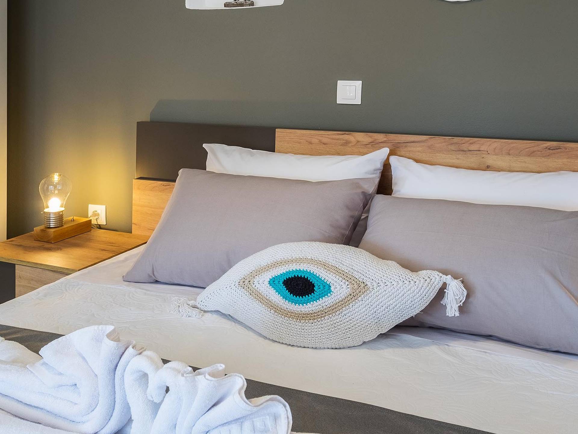 Villa Galatea consta de dos habitaciones, una con una cama doble y otra con dos camas individuales o una doble king size. Una amplia sala de estar con una cocina totalmente equipada y un baño. El espacio al aire libre cuenta con pérgolas con una mesa de comedor, una piscina privada y un área de barbacoa.