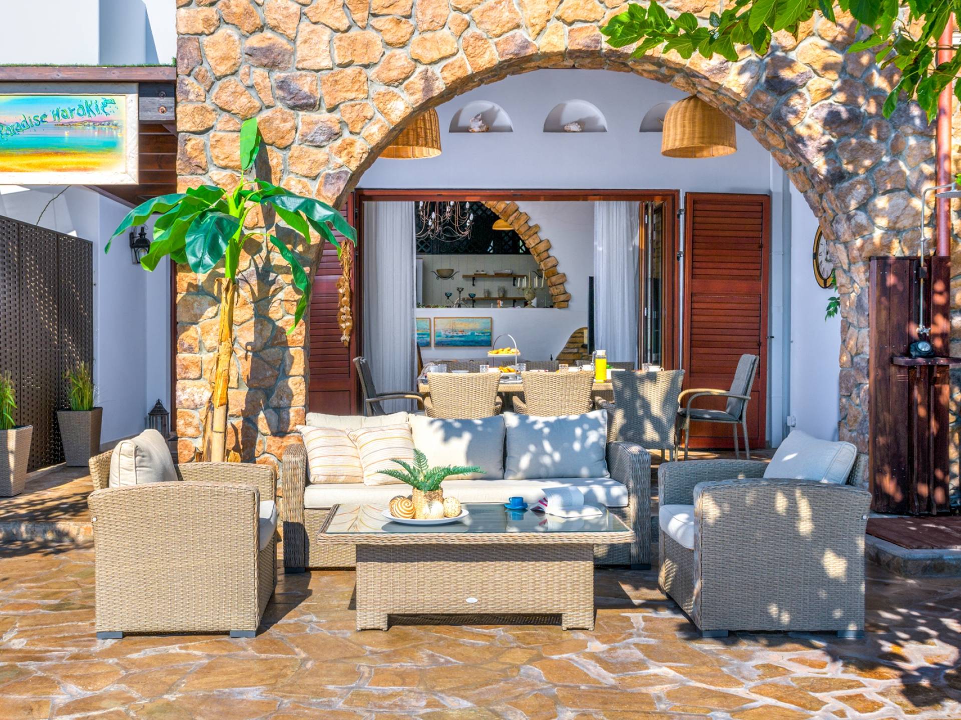 Villa Paradise Haraki Rhodes es una villa de alquiler frente al mar, ubicada justo al lado del mar en la bahía de la playa de Haraki en Rodas, Grecia. Villa Paradise Haraki Rhodes tiene capacidad para 10 adultos y bebés. Las habitaciones están decoradas con todo lujo de detalles lo que brinda comodidad y lujo.