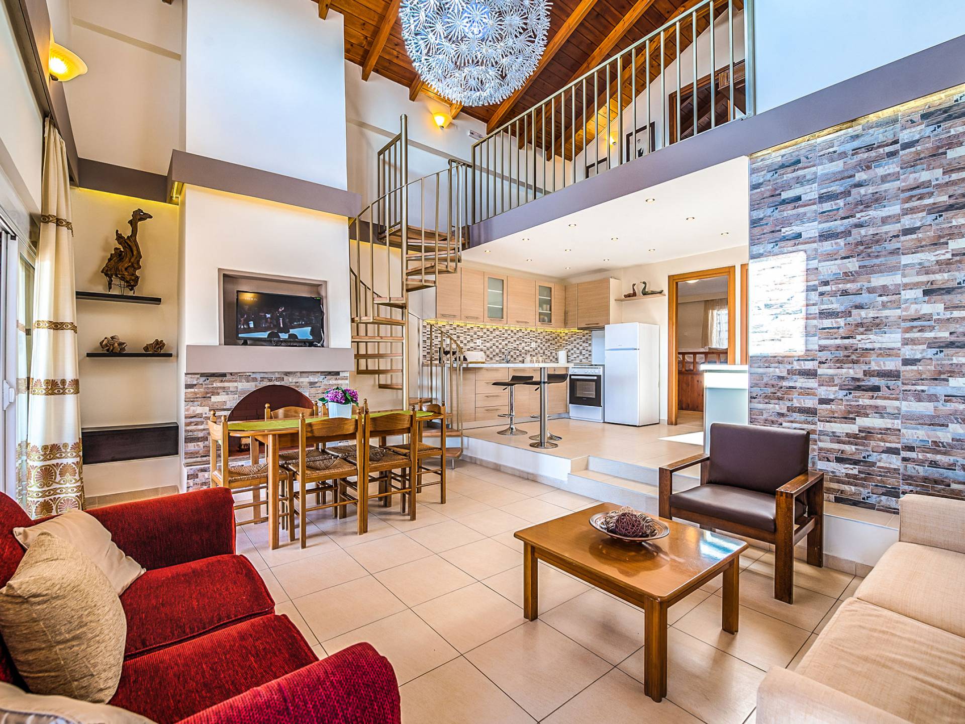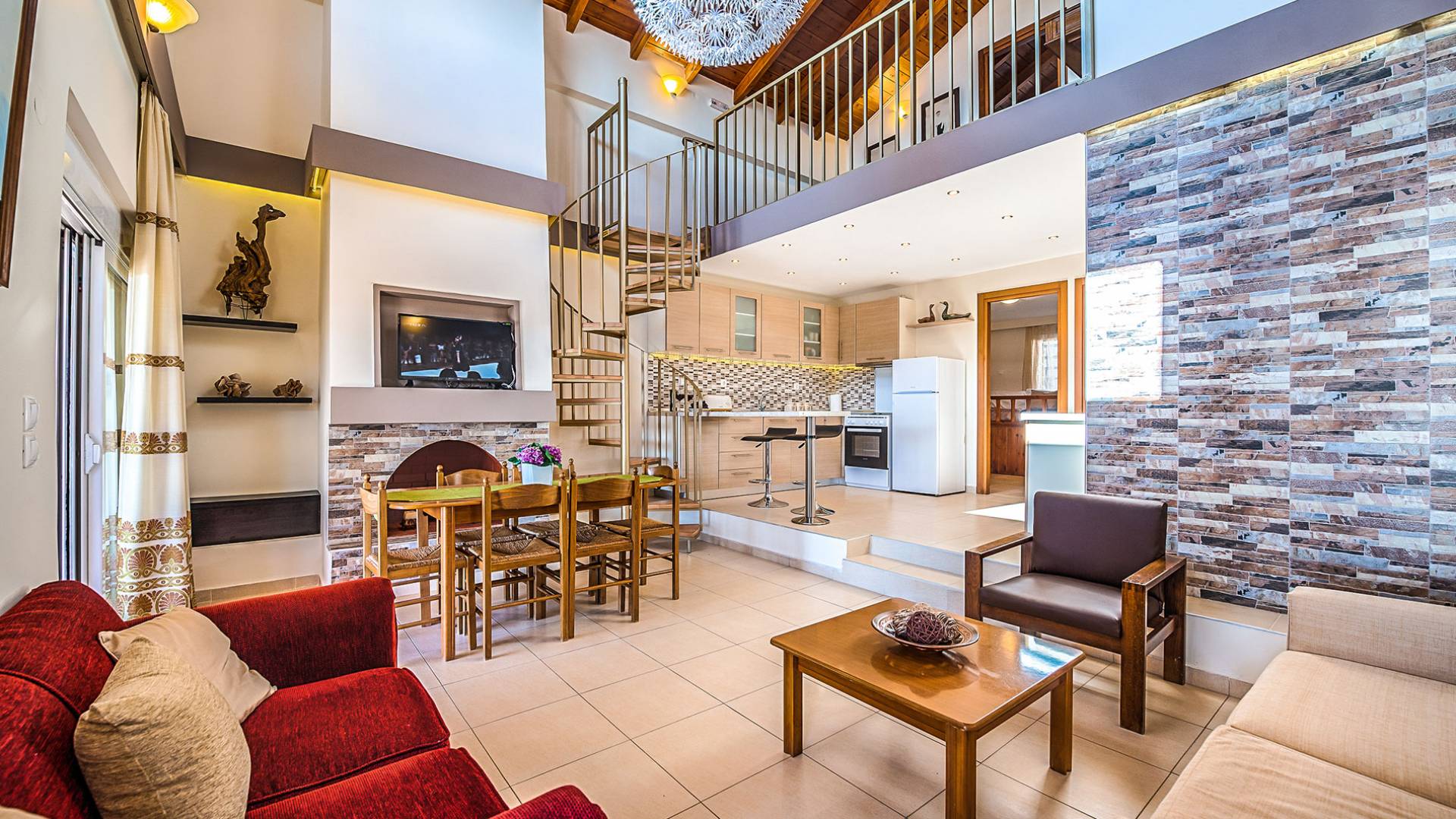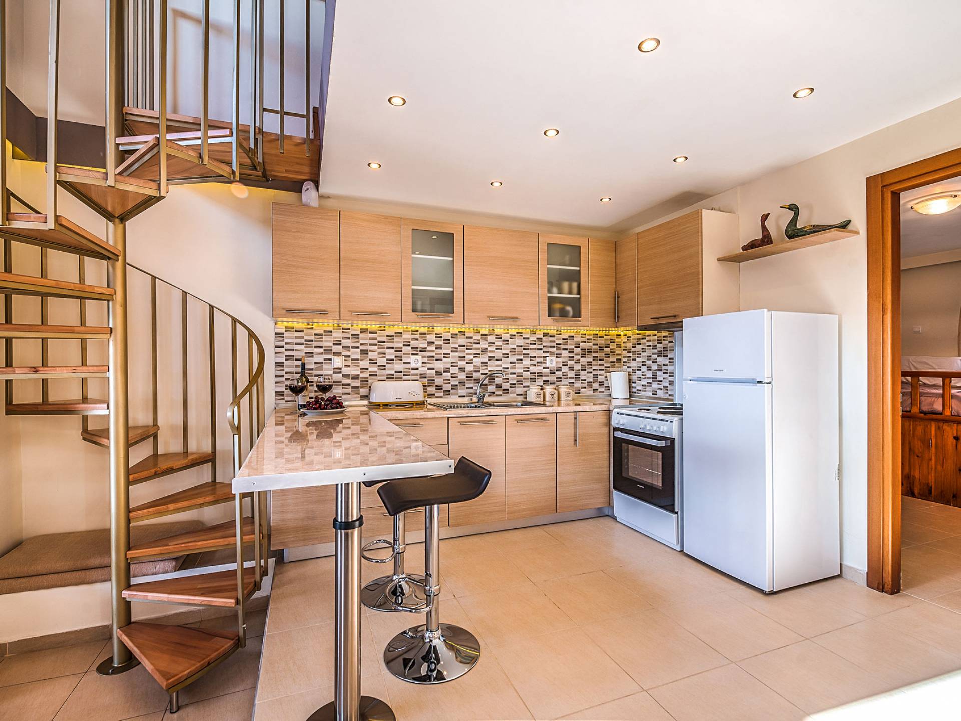 Hay una amplia sala de estar con una cocina independiente totalmente equipada, un comedor con TV LED vía satélite y ofrece un entorno perfecto para disfrutar de agradables reuniones alrededor de la chimenea. Villa Fay contiene una espaciosa cocina de planta abierta con luz natural que entra por las ventanas. Las puertas lo llevarán al frente del increíble jardín con la increíble vista al mar. La cocina está totalmente equipada con horno vitrocerámica, frigorífico-congelador, lavadora, cafetera y todo el menaje necesario para que puedas preparar y disfrutar tus comidas.