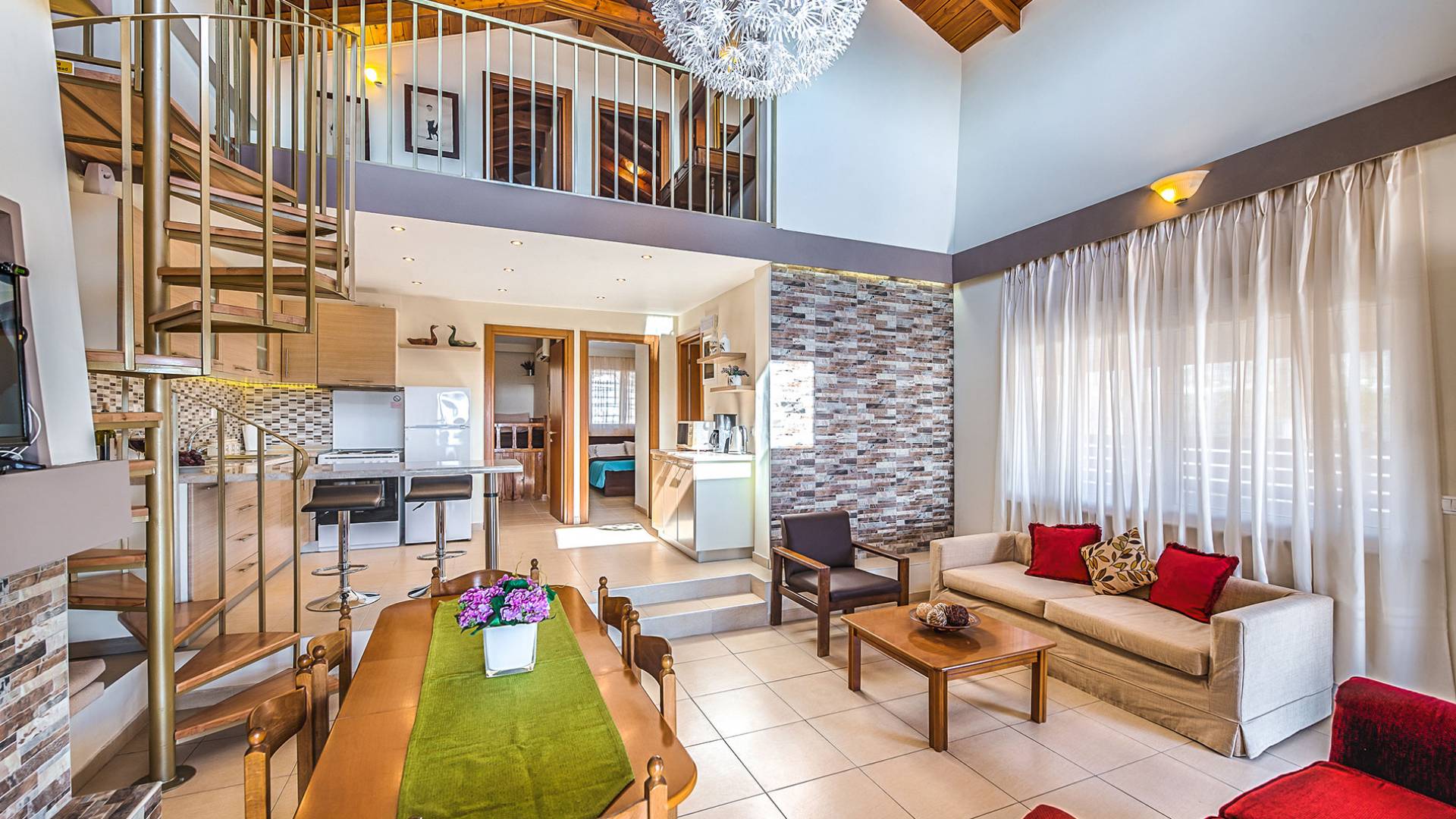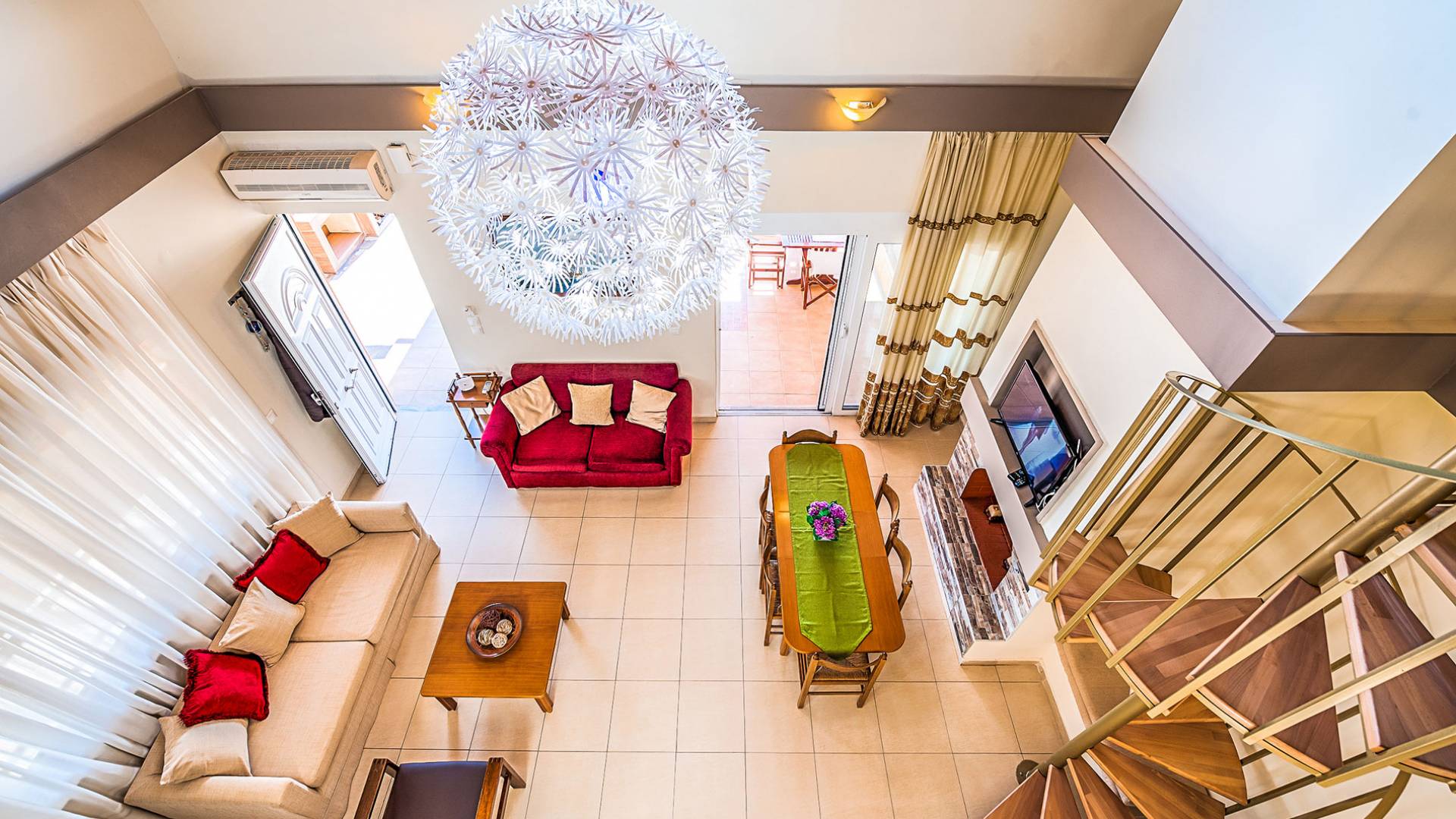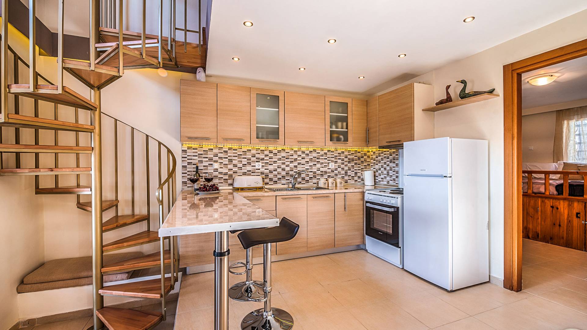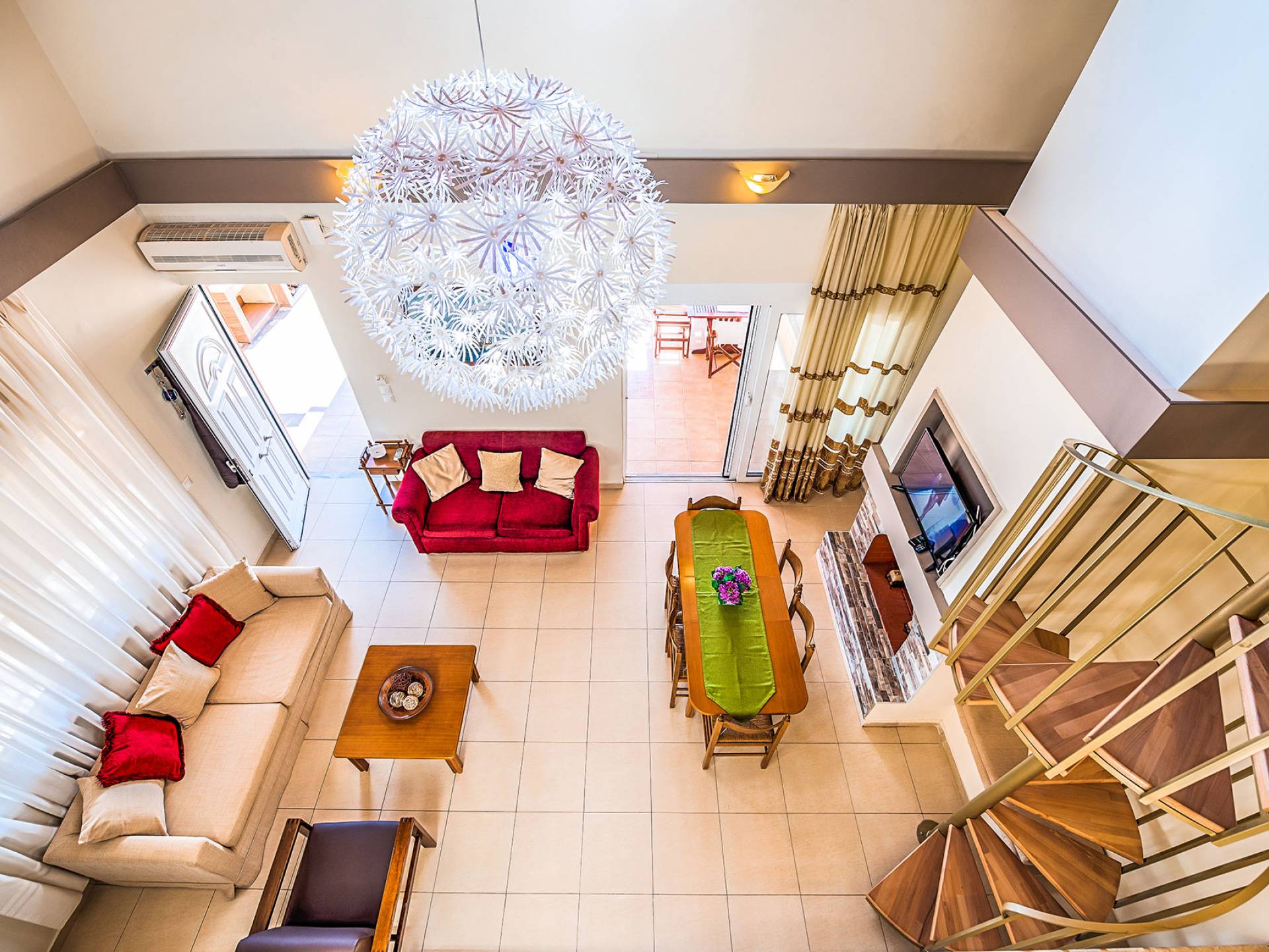 Hay una amplia sala de estar con una cocina independiente totalmente equipada, un comedor con TV LED vía satélite y ofrece un entorno perfecto para disfrutar de agradables reuniones alrededor de la chimenea. Villa Fay contiene una espaciosa cocina de planta abierta con luz natural que entra por las ventanas. Las puertas lo llevarán al frente del increíble jardín con la increíble vista al mar. La cocina está totalmente equipada con horno vitrocerámica, frigorífico-congelador, lavadora, cafetera y todo el menaje necesario para que puedas preparar y disfrutar tus comidas.