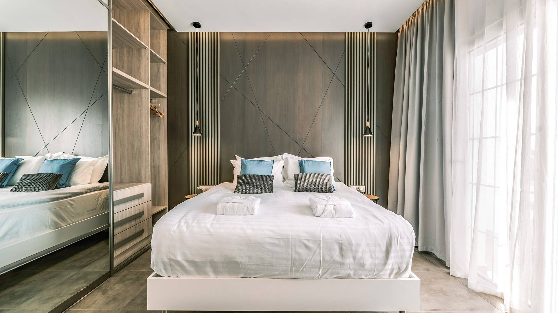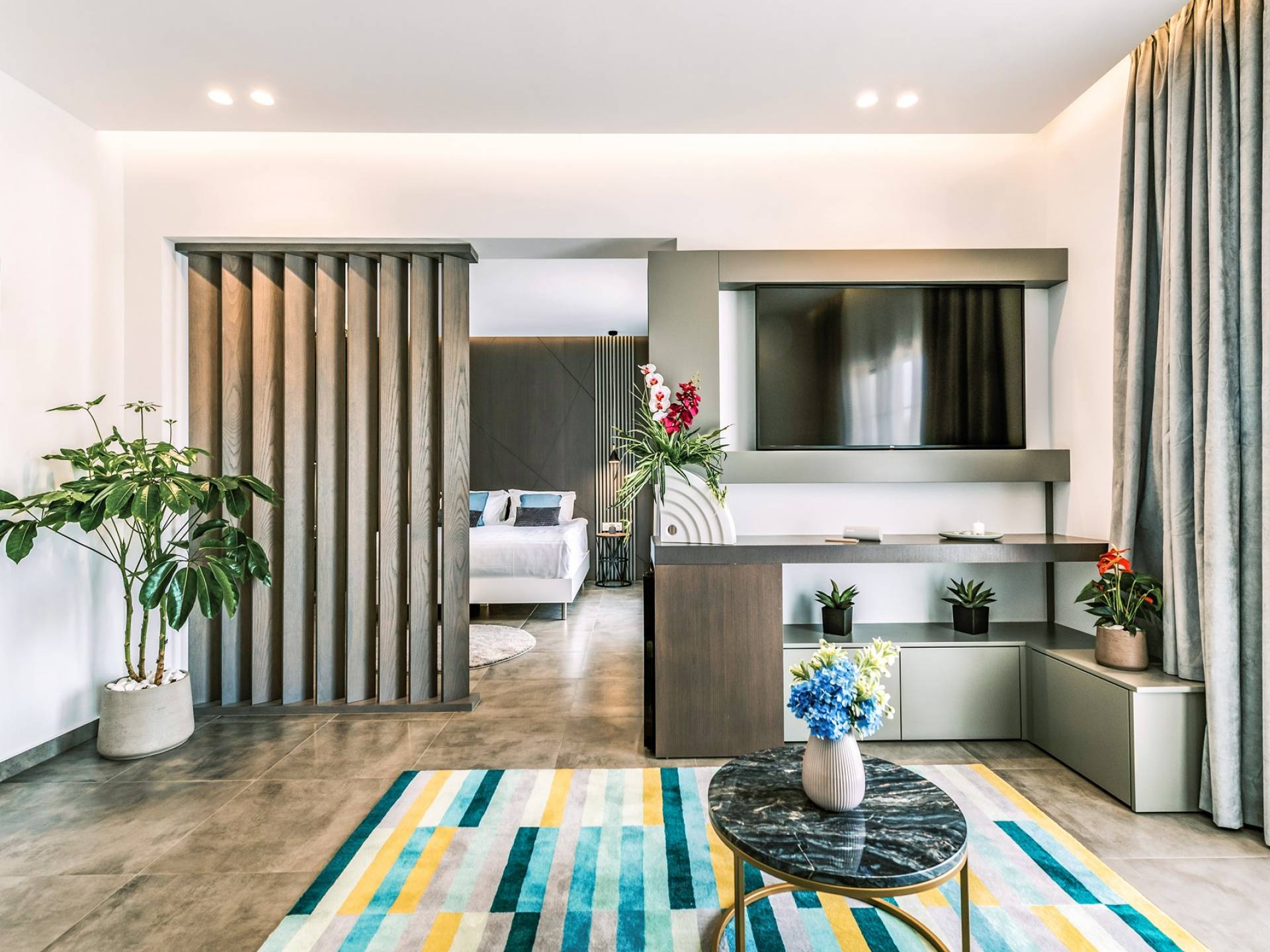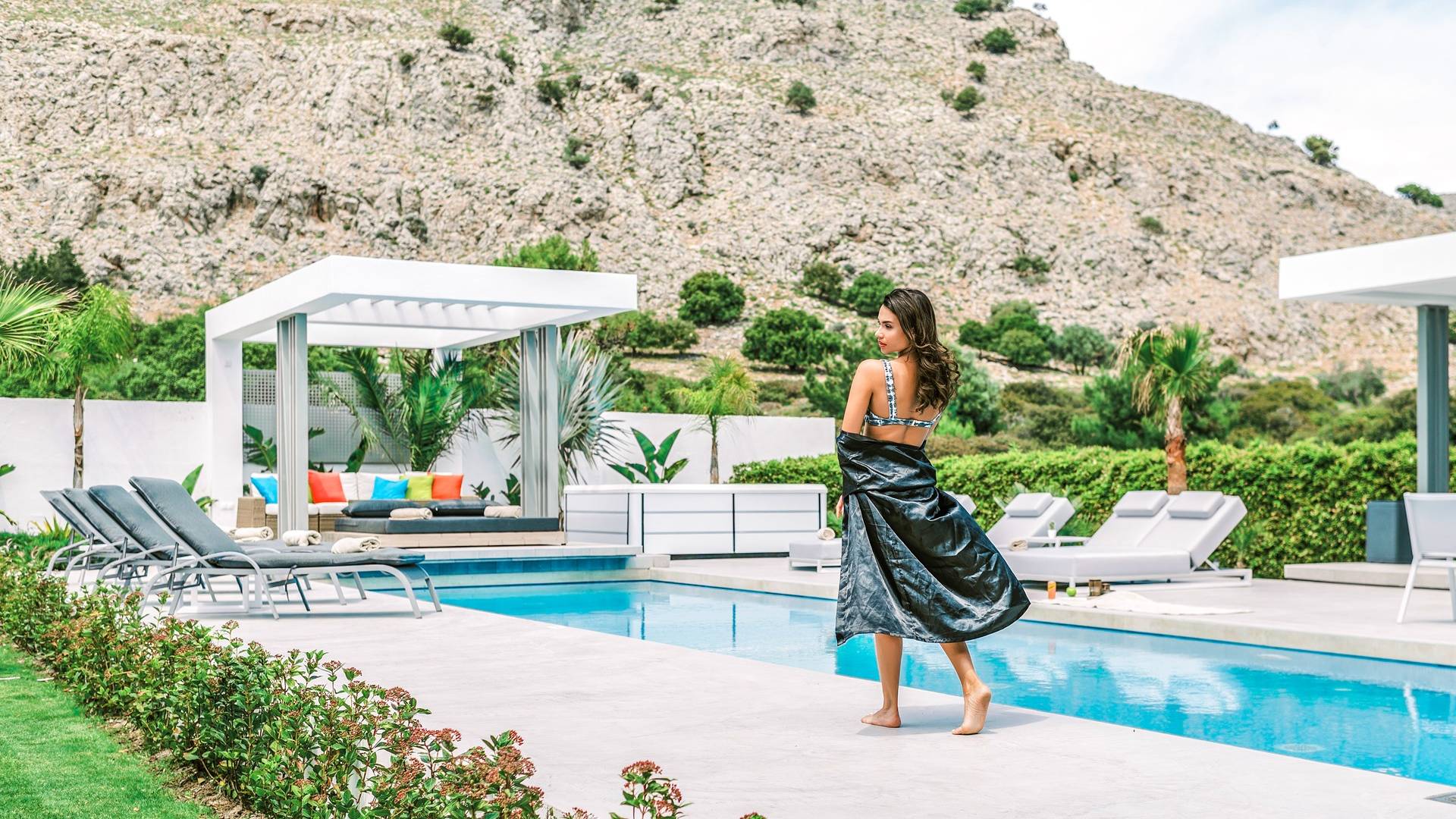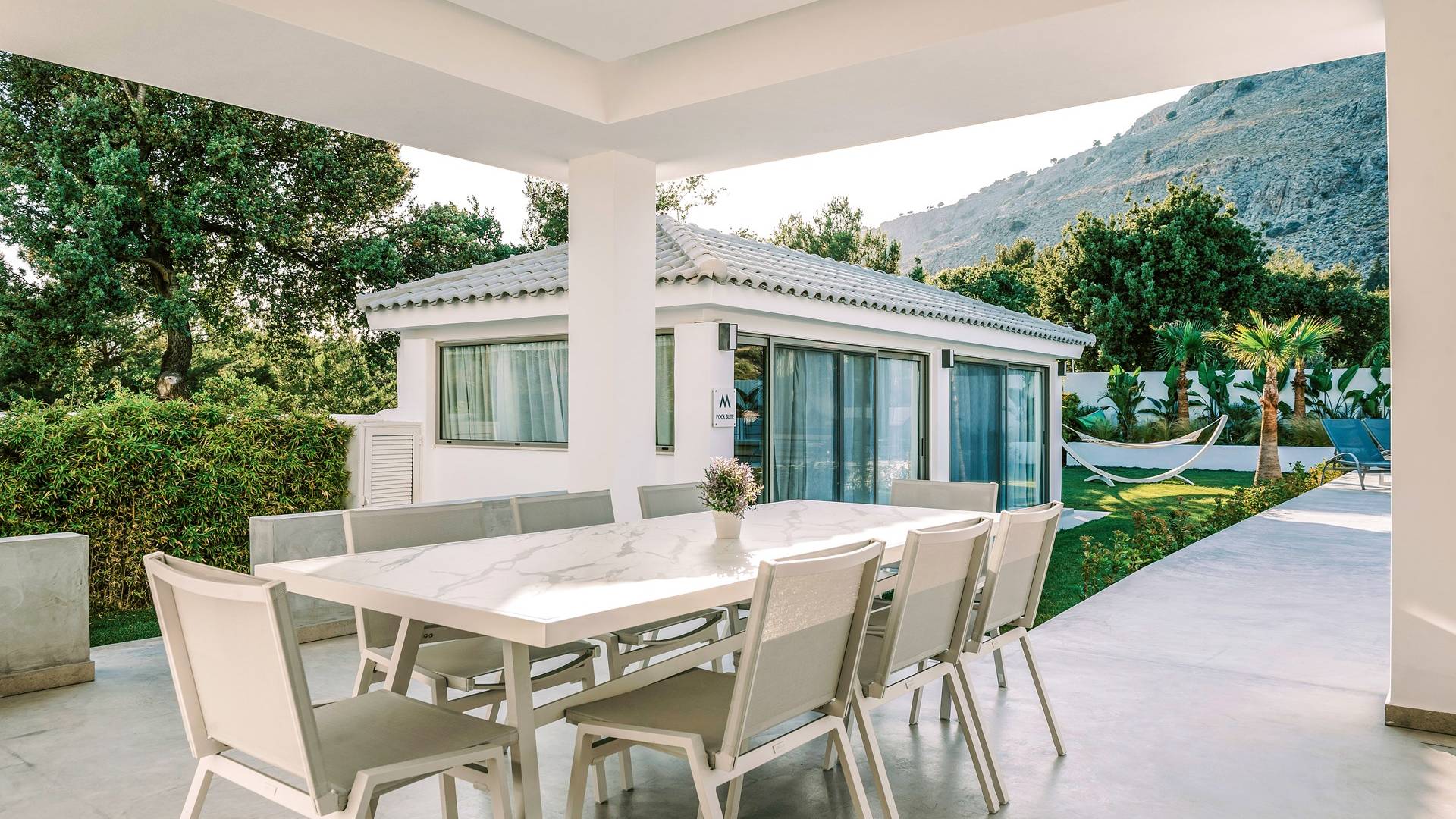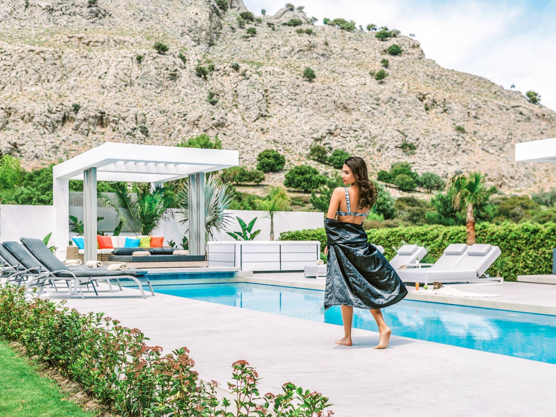 Cada habitación ofrece impresionantes vistas del paisaje tropical privado, así como del espectacular paisaje natural del área de Pefkos. La espaciosa villa (350 metros cuadrados) encapsula el espíritu del minimalismo sofisticado además de los elementos arquitectónicos tradicionales de Lindia y está llena de áreas de vida genuinas llenas de arte. Tanto las áreas interiores como las exteriores son irresistibles para todos los gustos.