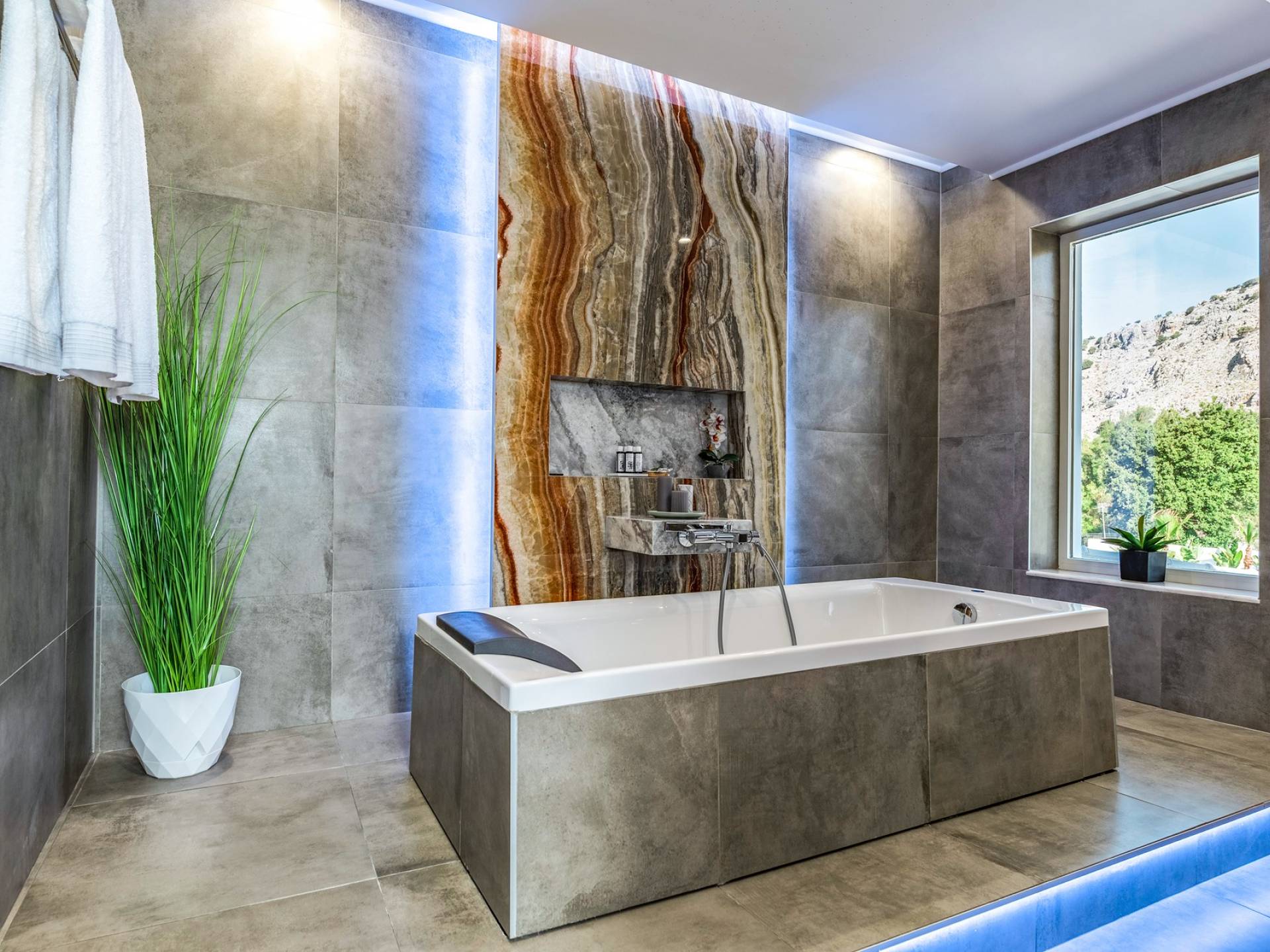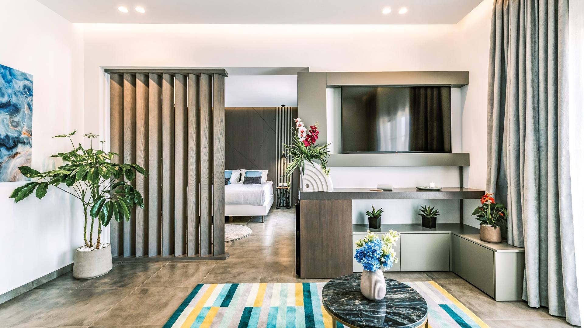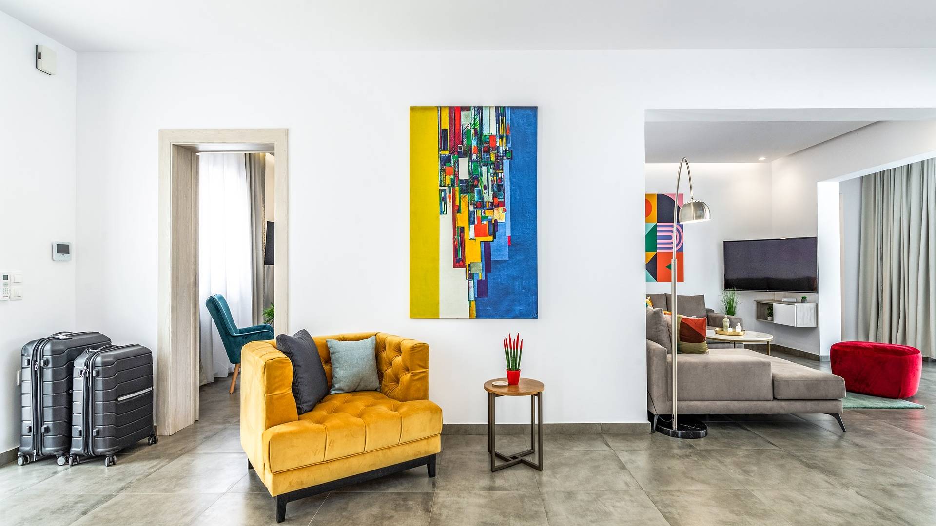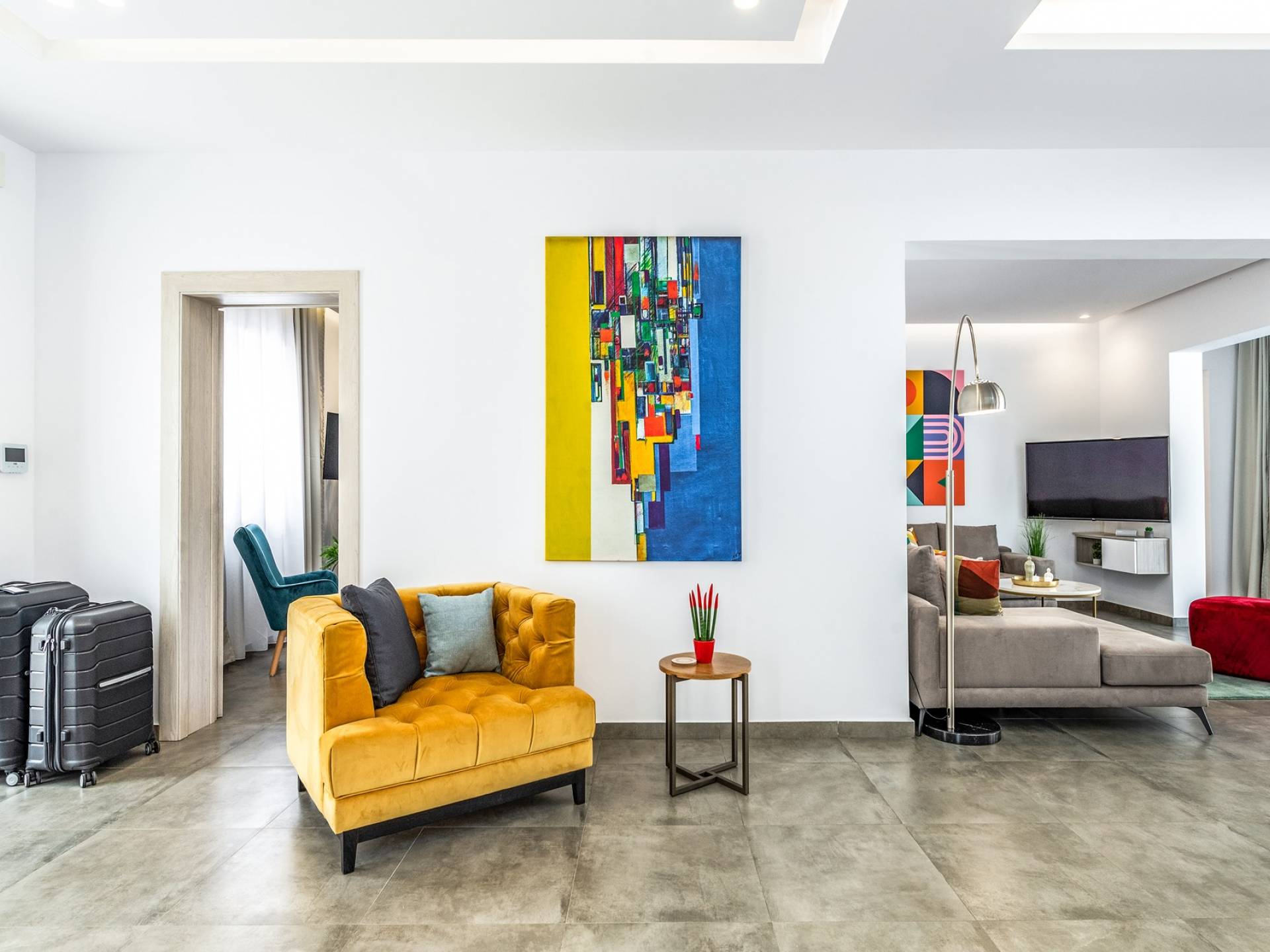 Cada habitación ofrece impresionantes vistas del paisaje tropical privado, así como del espectacular paisaje natural del área de Pefkos. La espaciosa villa (350 metros cuadrados) encapsula el espíritu del minimalismo sofisticado además de los elementos arquitectónicos tradicionales de Lindia y está llena de áreas de vida genuinas llenas de arte. Tanto las áreas interiores como las exteriores son irresistibles para todos los gustos.