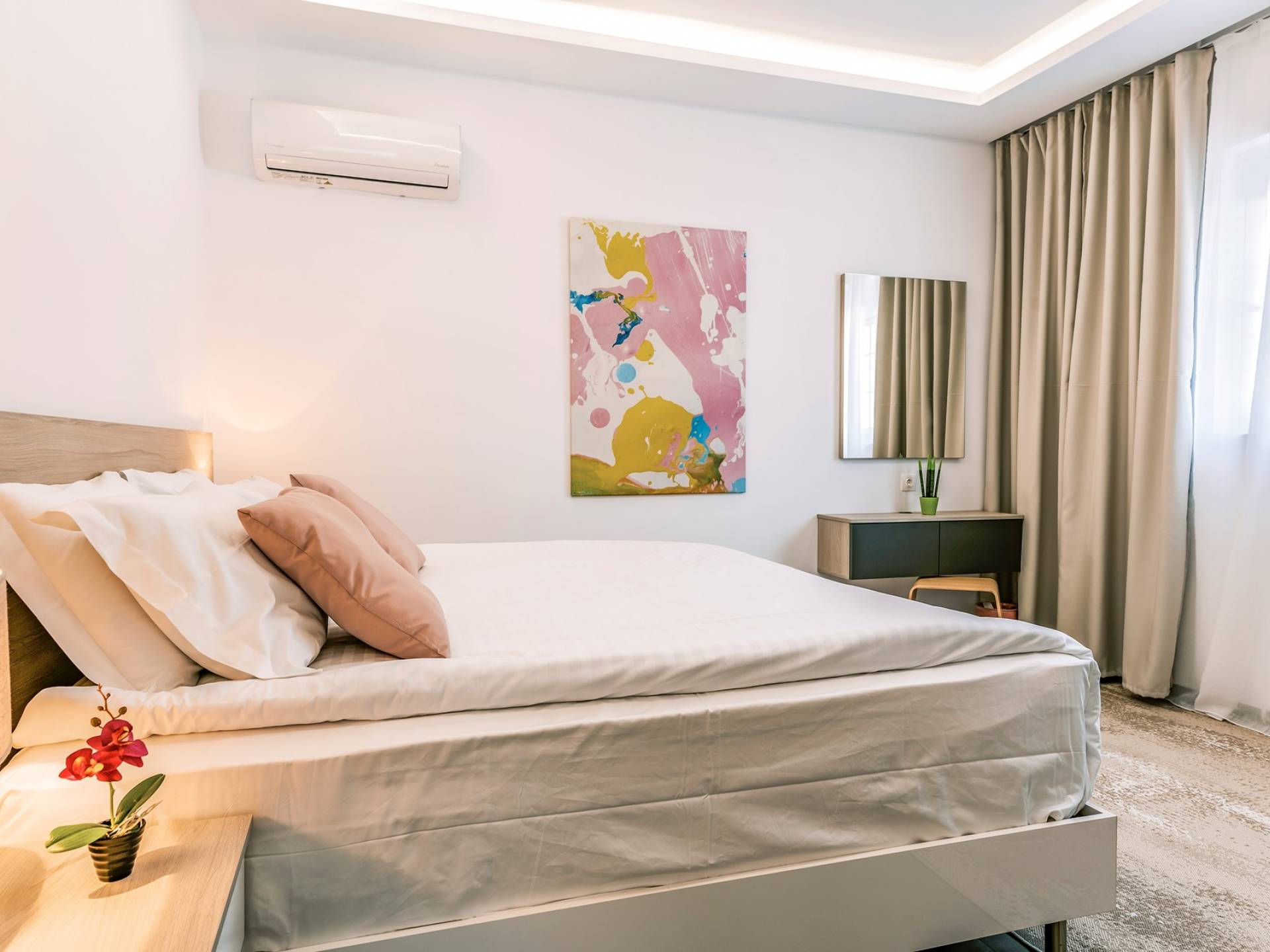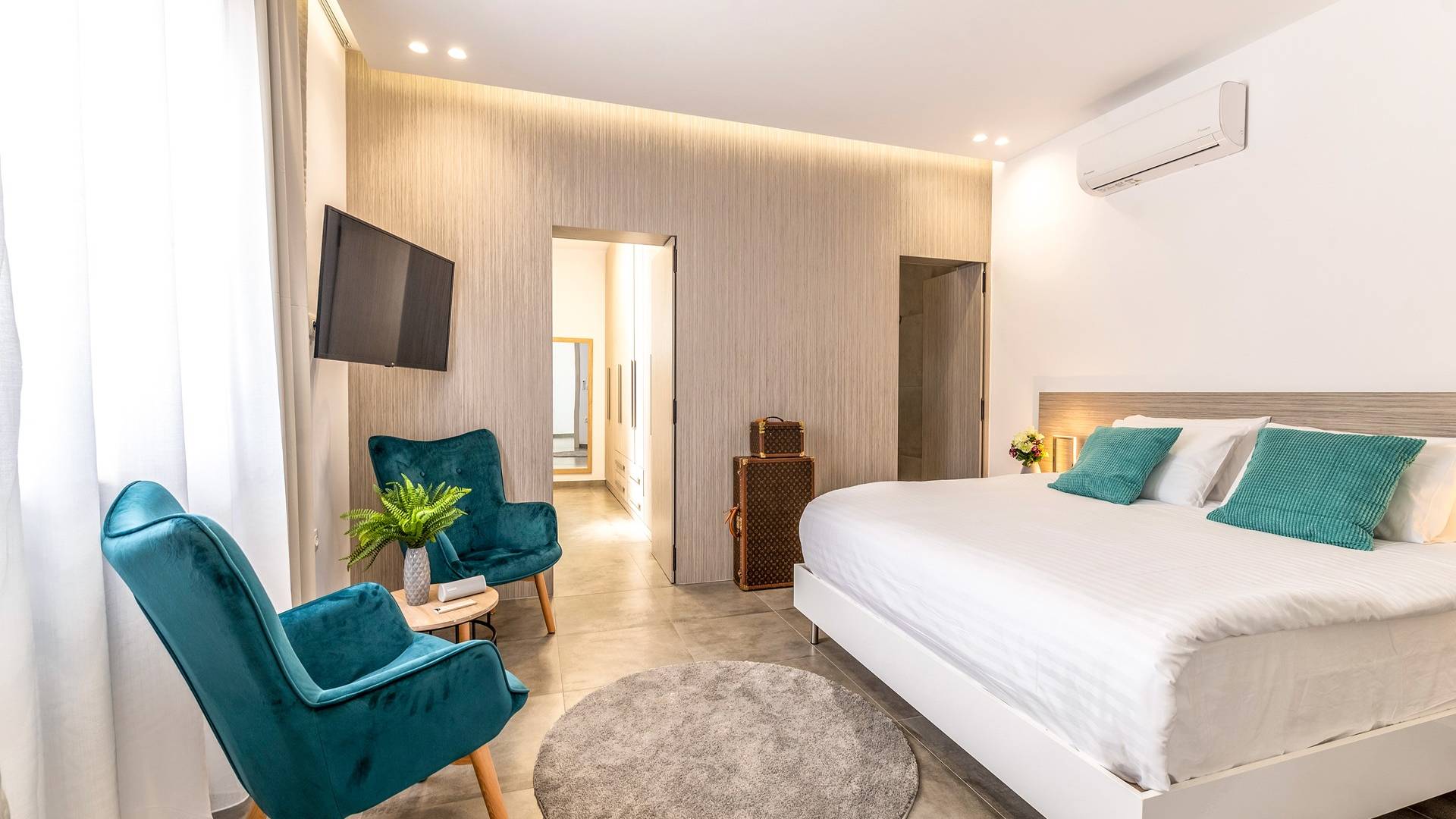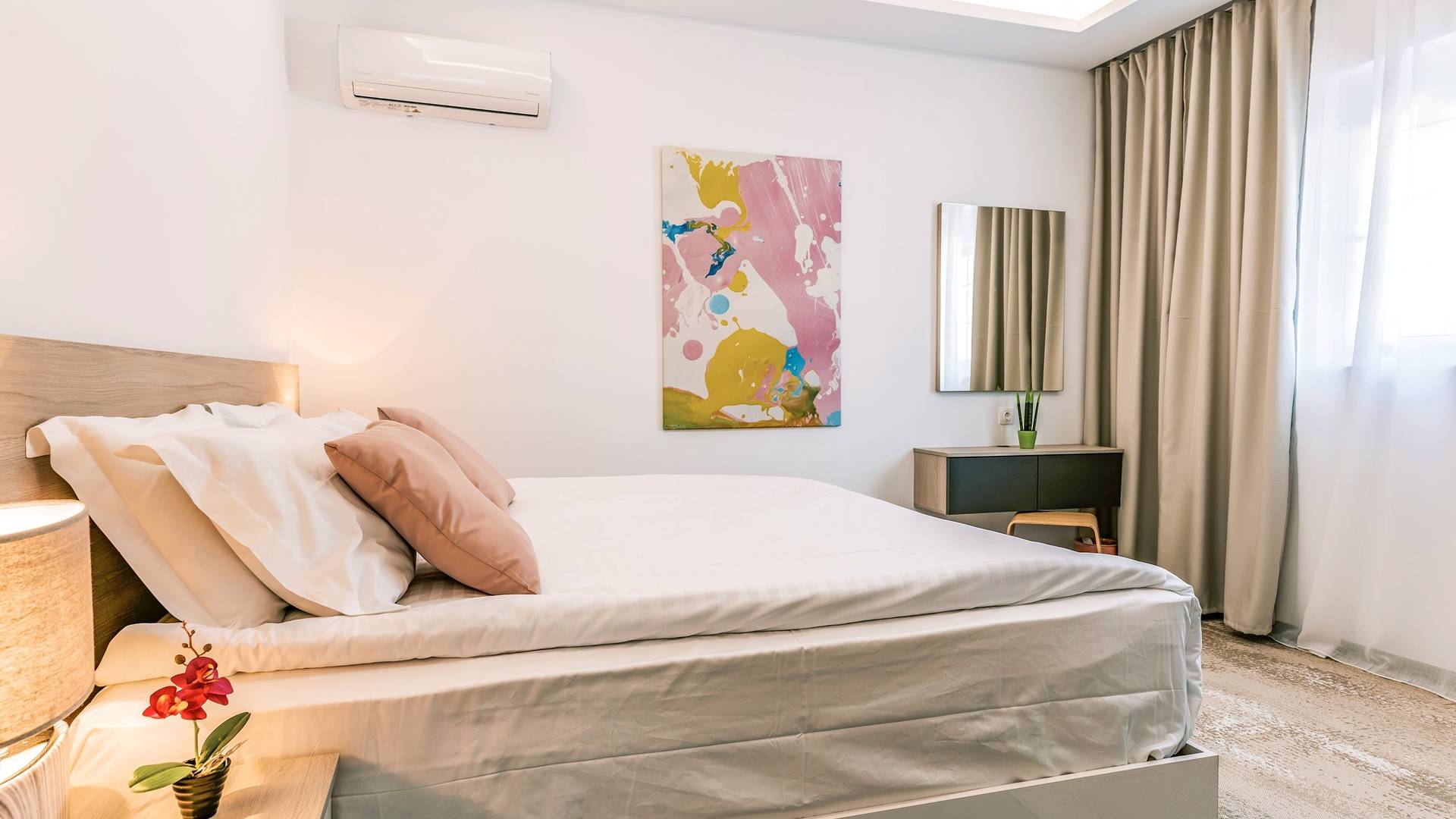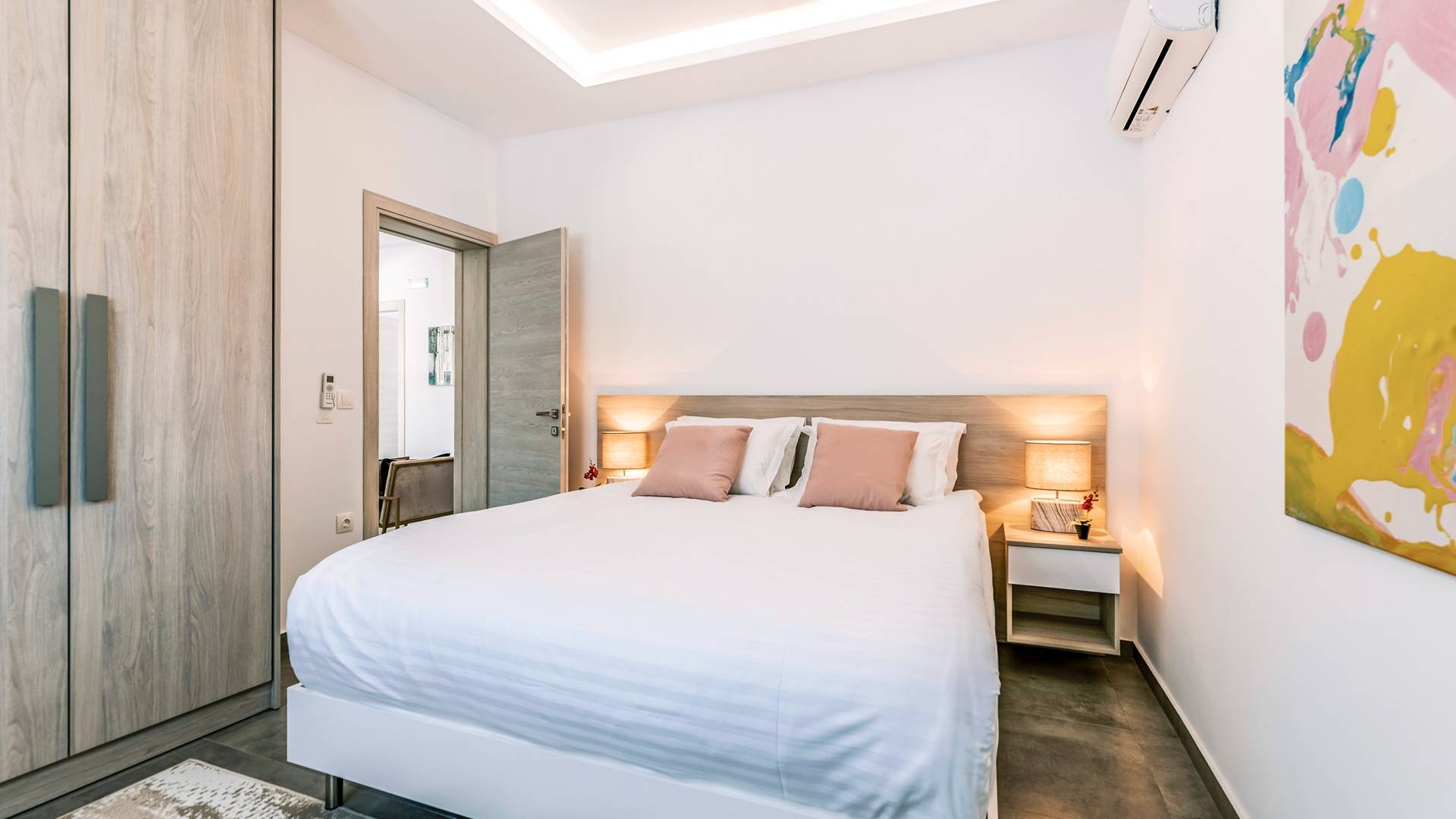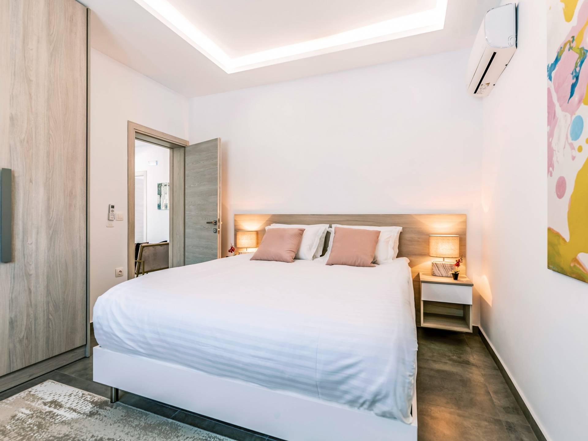 Cada habitación ofrece impresionantes vistas del paisaje tropical privado, así como del espectacular paisaje natural del área de Pefkos. La espaciosa villa (350 metros cuadrados) encapsula el espíritu del minimalismo sofisticado además de los elementos arquitectónicos tradicionales de Lindia y está llena de áreas de vida genuinas llenas de arte. Tanto las áreas interiores como las exteriores son irresistibles para todos los gustos.