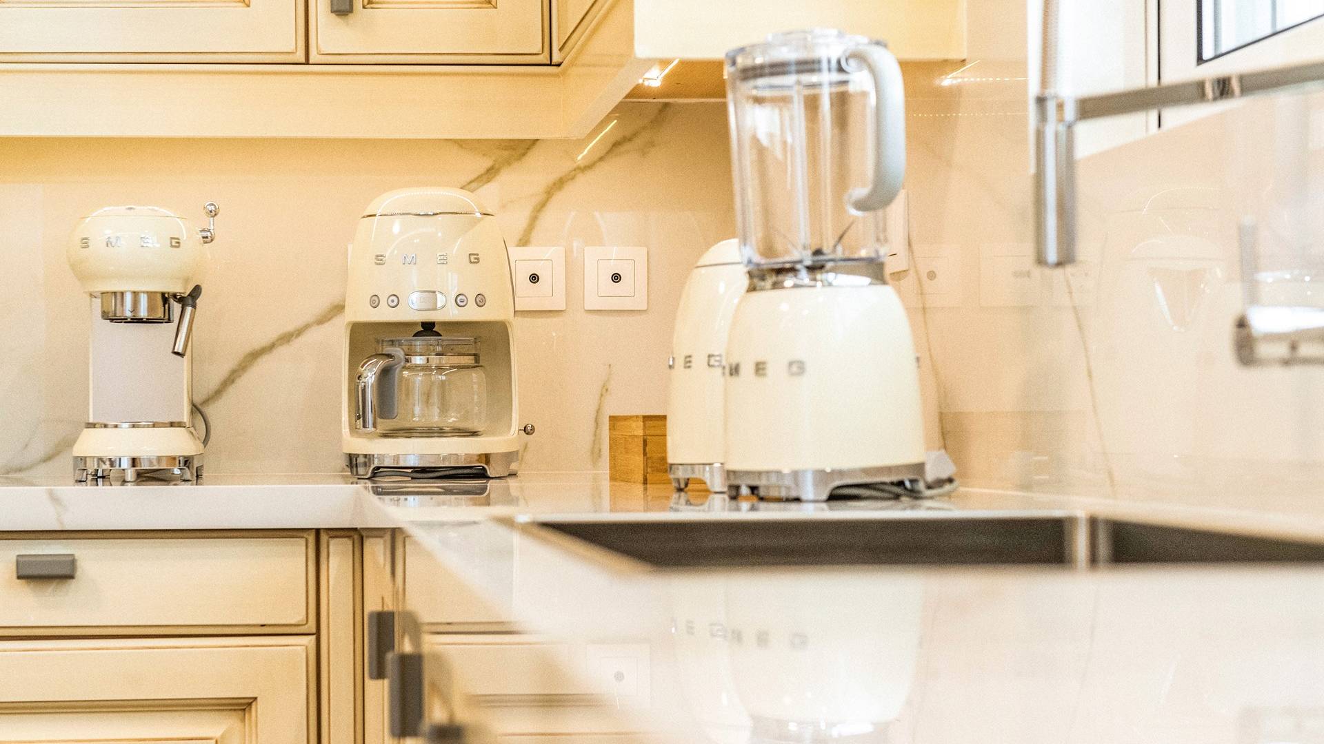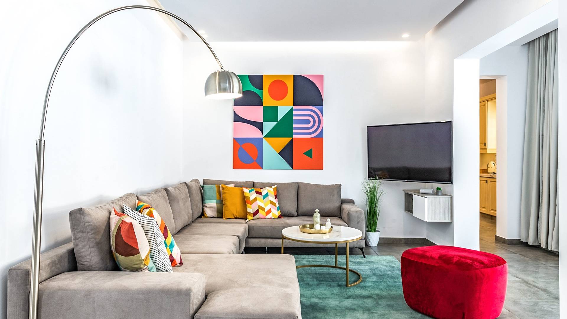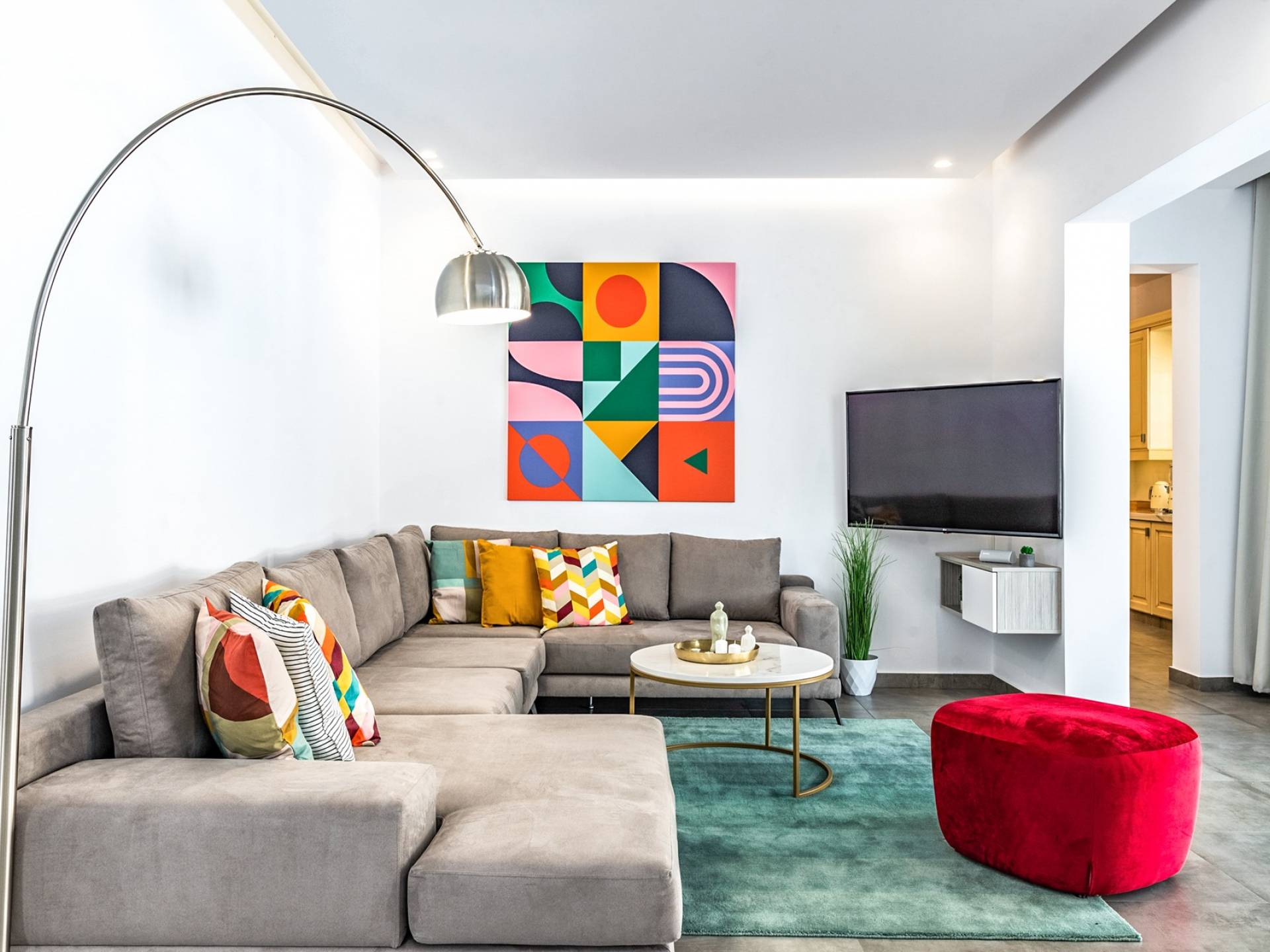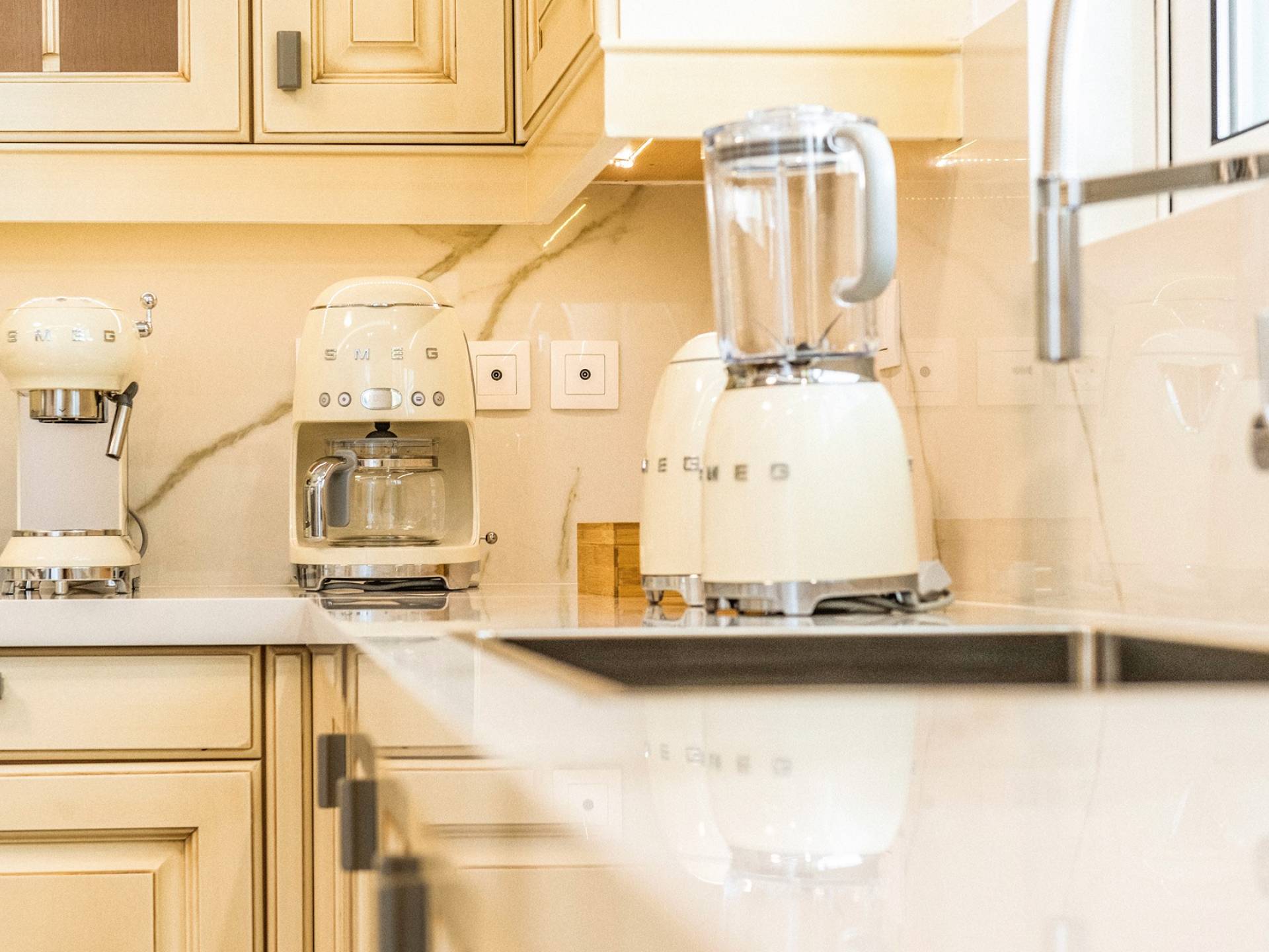 La luminosa sala de estar con muebles artesanales y una pared de vidrio, una pantalla plana de 55 pulgadas tiene vista a la piscina. Toda la mansión tiene un sistema de sonido Sonos. Todos los altavoces y componentes de Sonos se conectan a través de WiFi para que pueda construir el sistema que desee. El diseño tradicional se mezcla con obras de arte locales, una gran mesa de comedor, una cocina totalmente equipada con un refrigerador grande y electrodomésticos Smeg, maximiza el placer de cocinar.