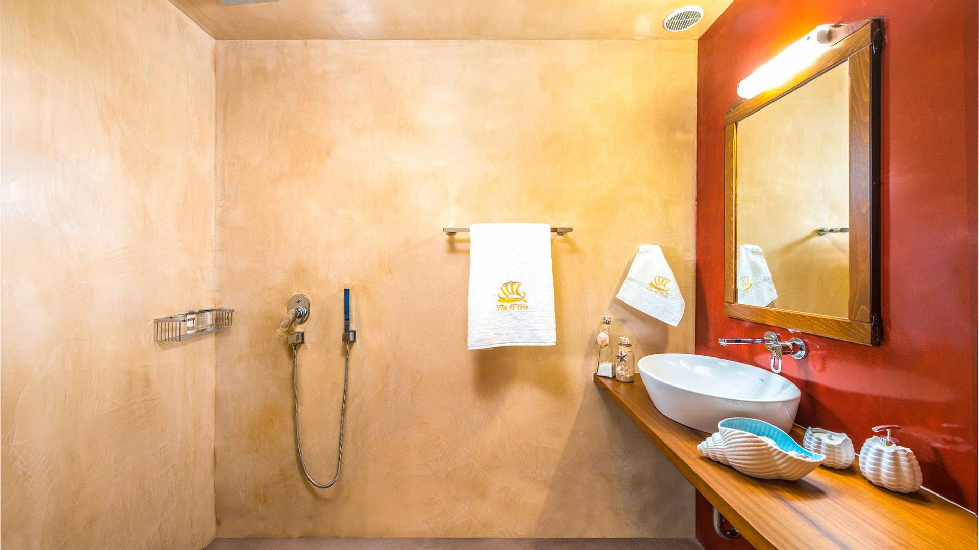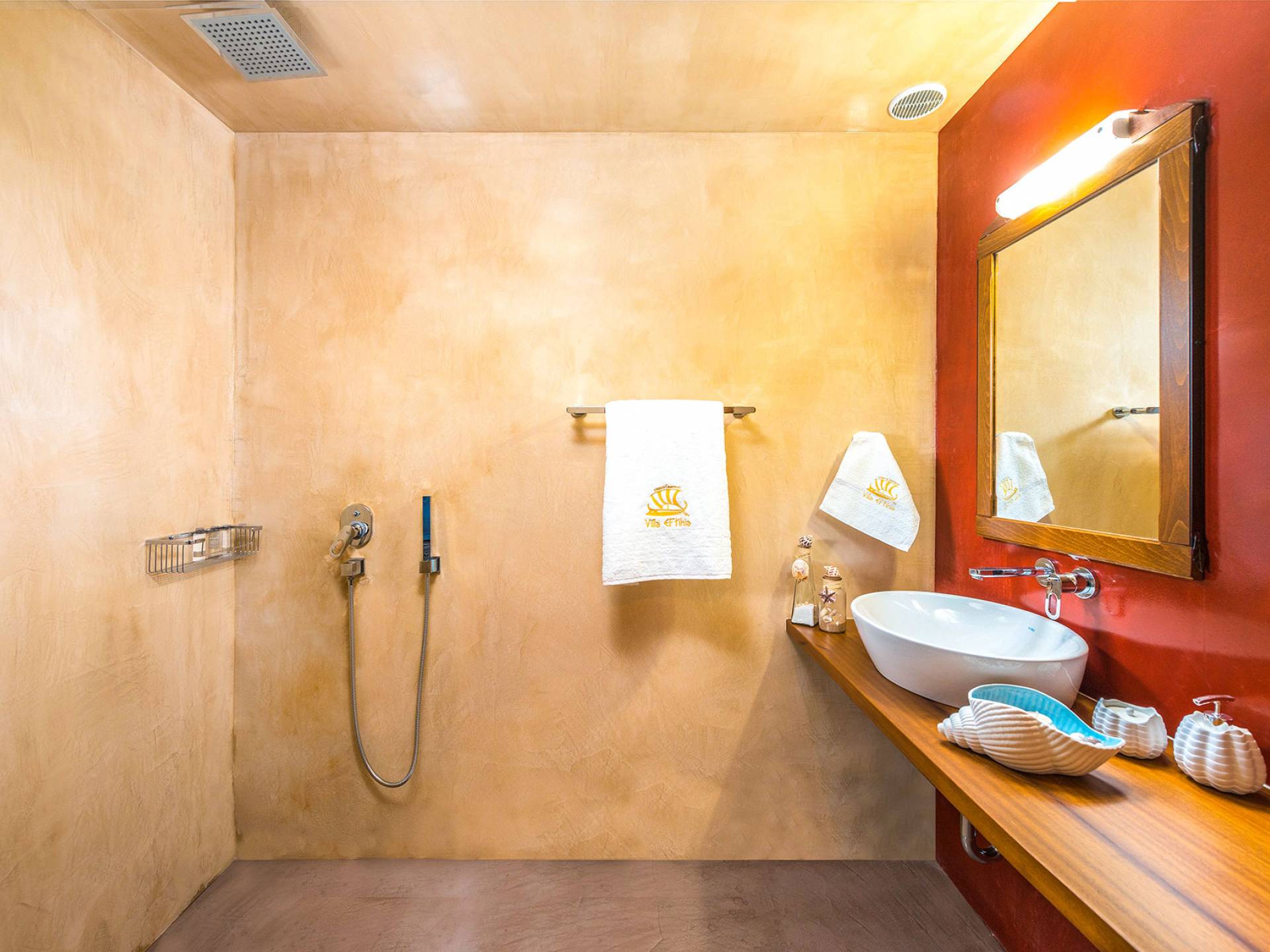 En el patio, hay sillas, mesas, hamacas, una gran sombrilla, barbacoa, un horno de leña tradicional y un jacuzzi (jacuzzi) para siete personas. Fuera de la cocina, en el primer piso, hay una terraza, que está configurada para el descanso de nuestros huéspedes y para disfrutar de la vista de la Acrópolis, el antiguo Anfiteatro y el mar. La terraza tiene sillas, mesas, una gran sombrilla y una barra con taburetes.