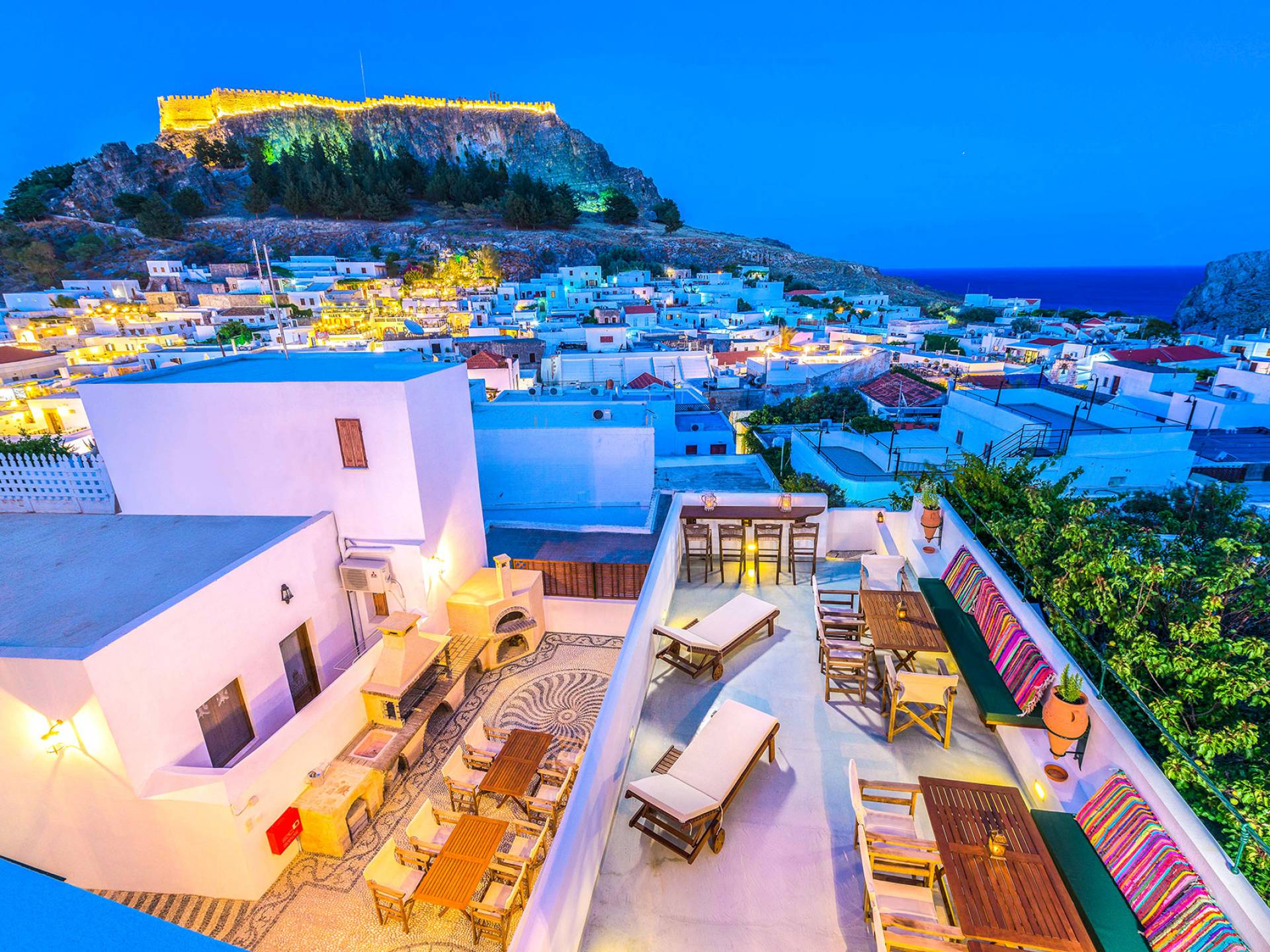 Lindos Rhodes es un pueblo encantador ubicado al sur de la capital y es famoso por ser uno de los pueblos más atractivos y hermosos de Rodas. Destaca por su ubicación principal anfiteatro en las faldas del cerro, con vistas a una pintoresca bahía con su emblemática acrópolis en lo alto. El pueblo está adornado con casas encaladas con callejuelas empedradas y edificios que abarcan elementos arquitectónicos bizantinos, medievales, árabes y locales. Se puede llegar a la impresionante acrópolis a pie o en burro. Lindos es rico en atracciones; Uno de los principales atractivos es el antiguo teatro de la ciudad, tallado en una roca, y el santuario dórico de Athena Lindia, que también son de visita obligada. En Lindos, encontrará una amplia gama de alojamientos y comodidades como tabernas, cafés y bares románticos.