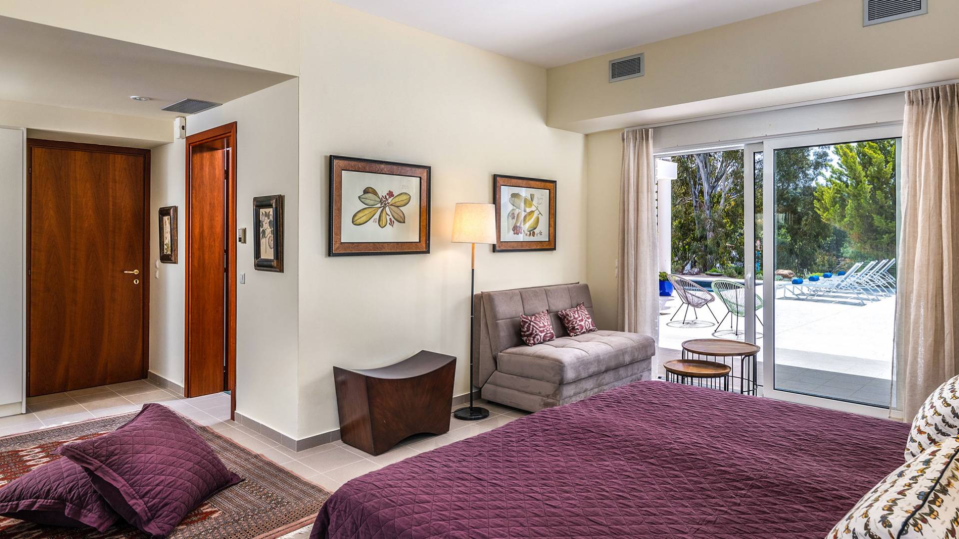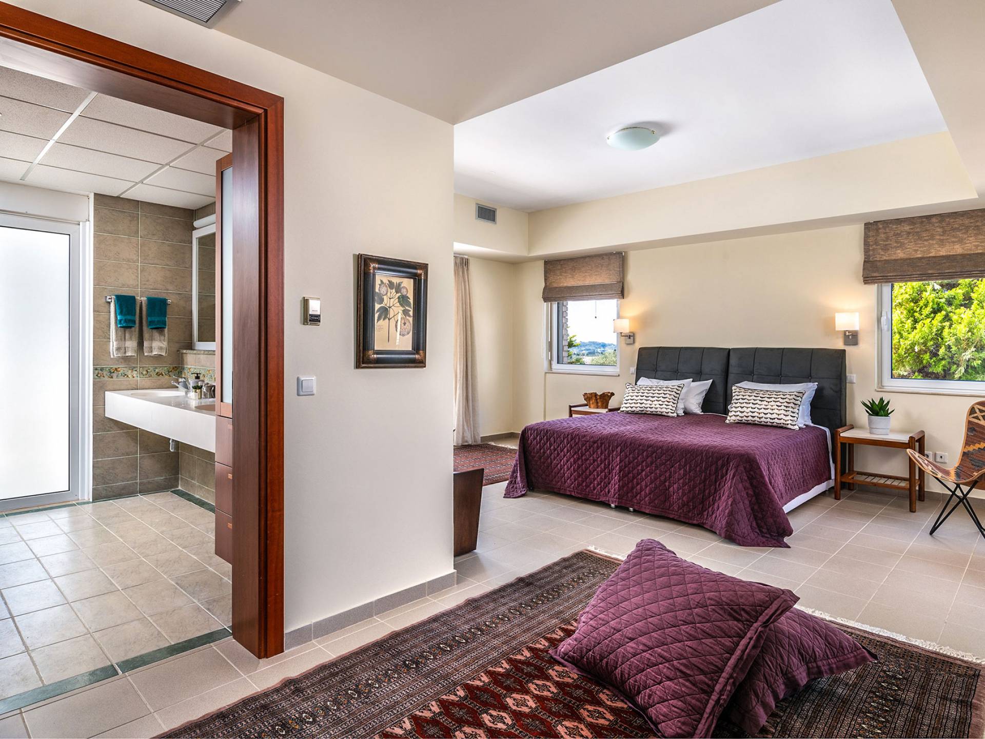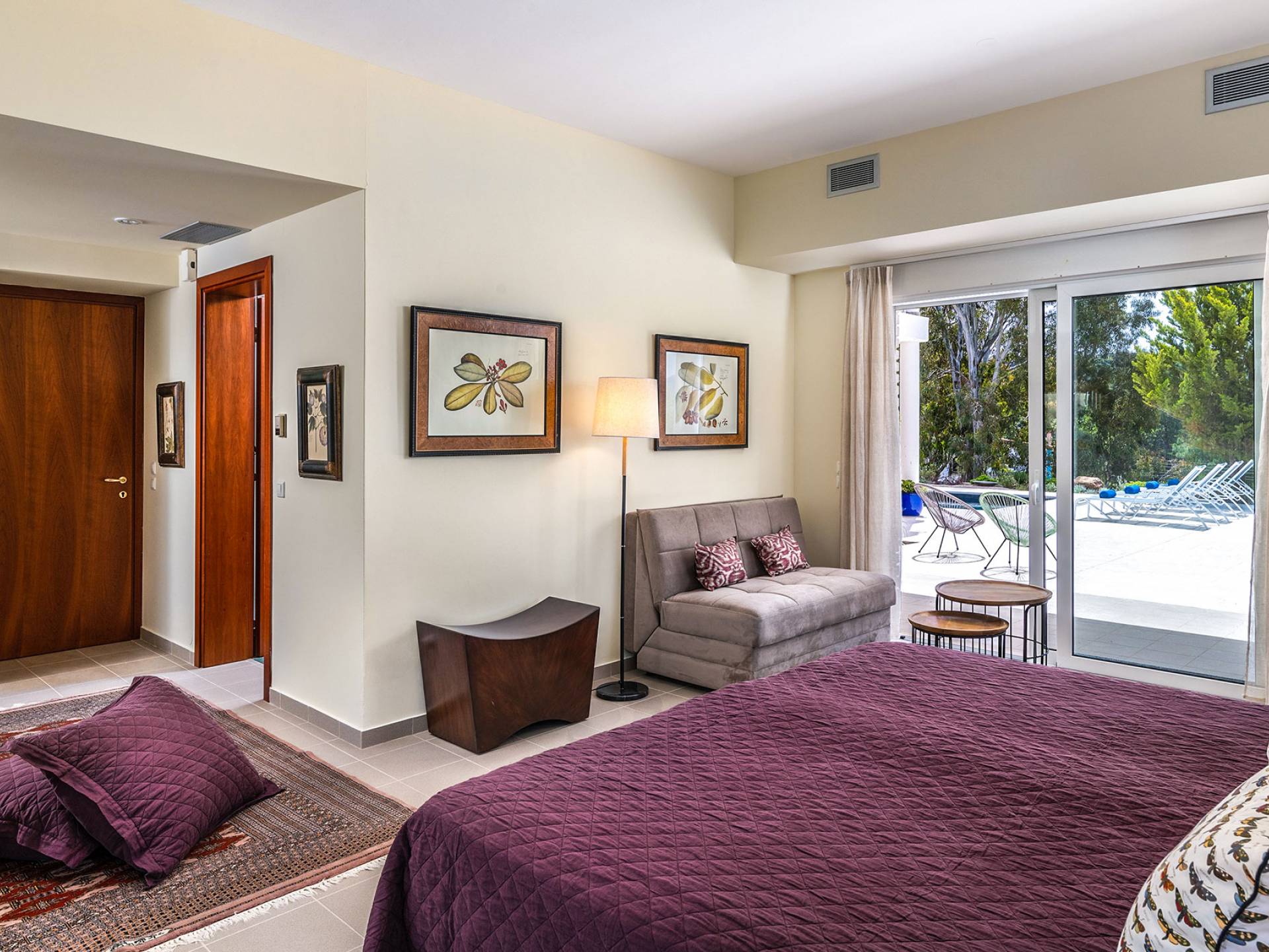 Las habitaciones de lujo están cuidadosamente diseñadas para ser su santuario, dándole una sensación de serenidad y permitiéndole despertar felizmente a su propio ritmo. Las habitaciones son espaciosas, luminosas y ventiladas pero relajadas, y las persianas exteriores eléctricas le permiten oscurecer su habitación para dormir. Las noches cálidas y bochornosas se enfrían a una temperatura perfecta con el aire acondicionado de última generación, para que pueda dormir bien. Las camas tamaño king de Hilltop Villa con colchones gruesos, ropa de cama de primera calidad, almohadas suaves y habitaciones decoradas con buen gusto crean la combinación perfecta para una noche de sueño que solo es posible en vacaciones. La comodidad de lujo significa que cada habitación tiene un baño en suite con detalles exclusivos y accesorios de lujo, toallas suaves y toques cuidados.