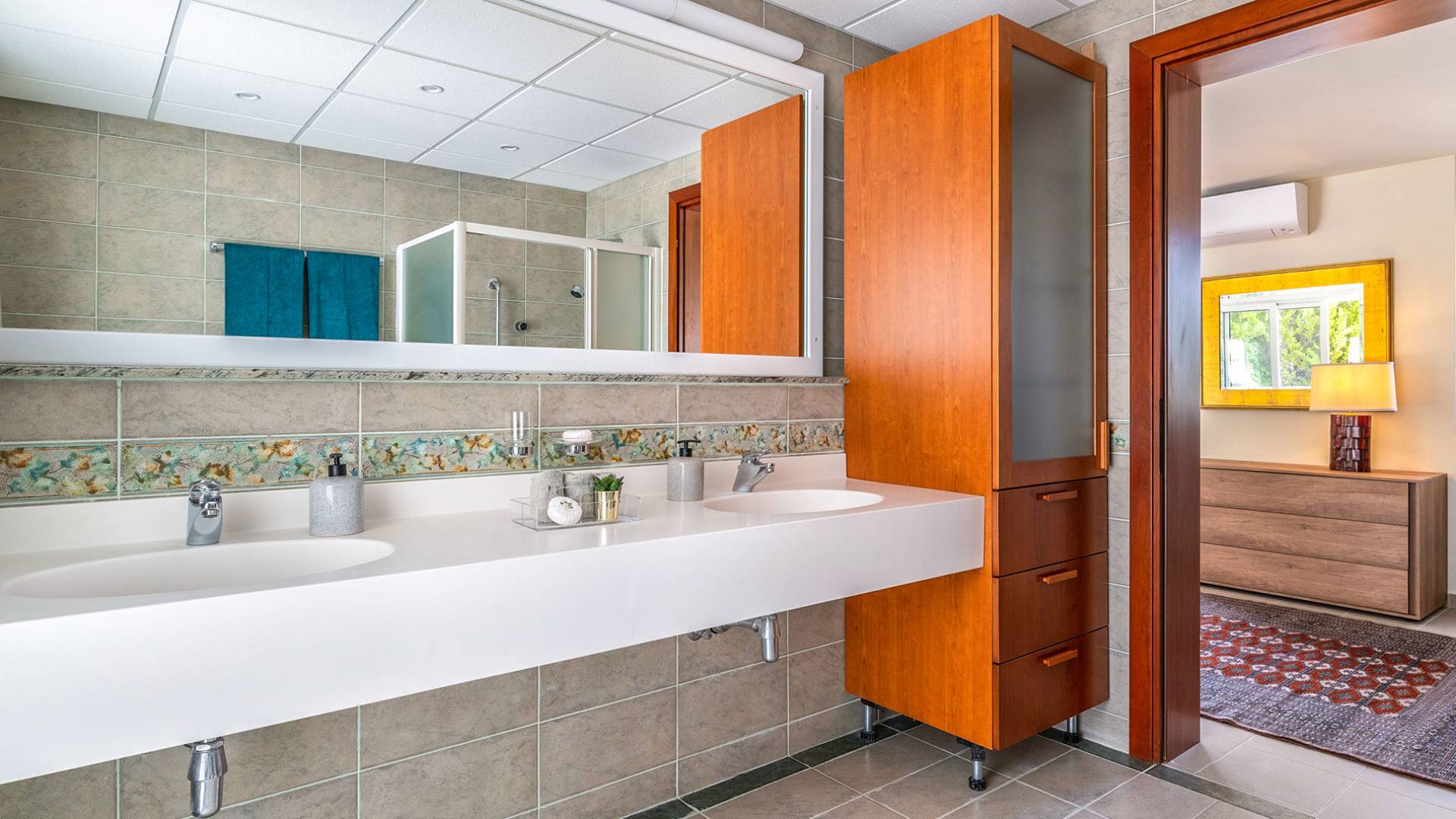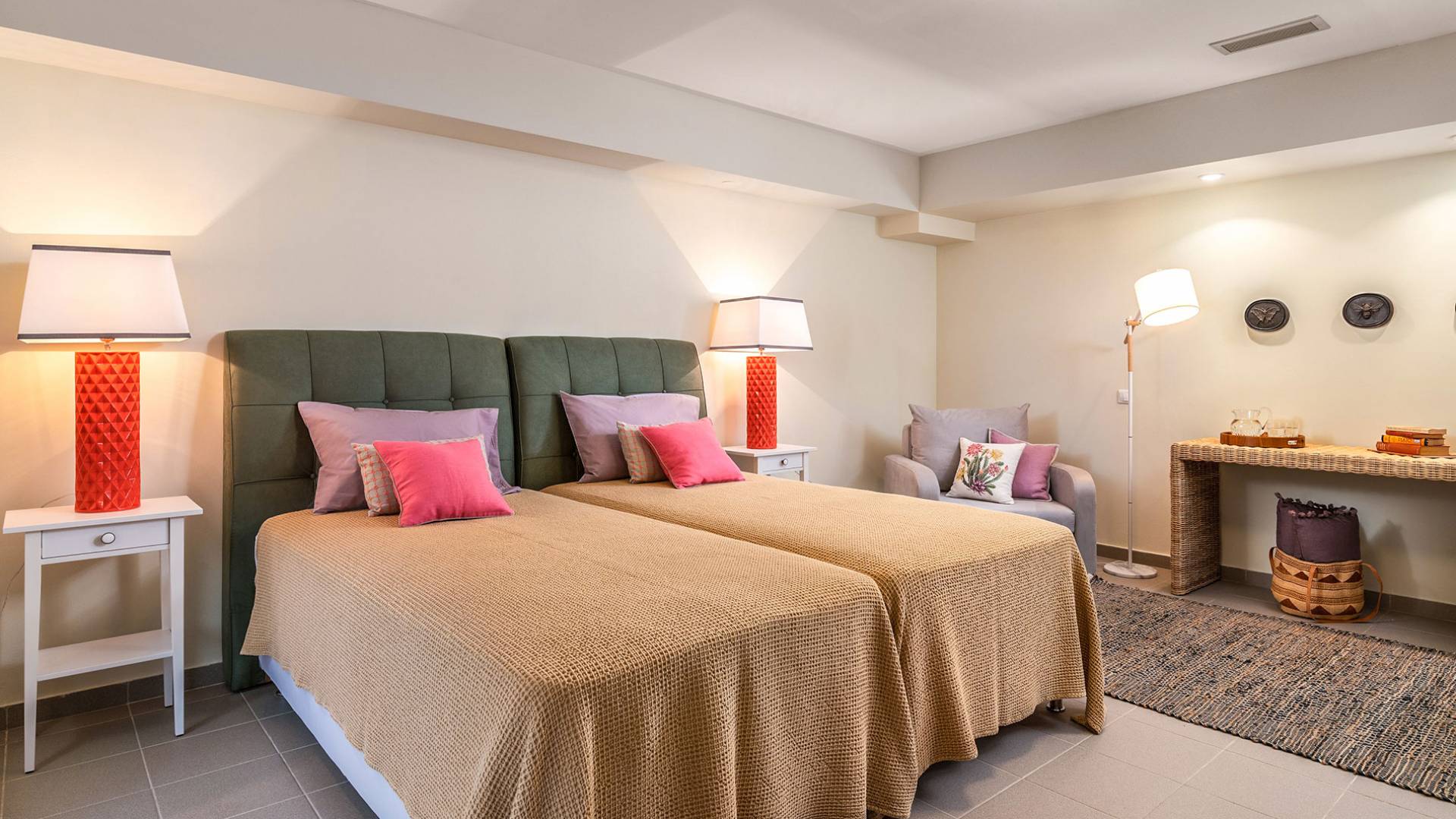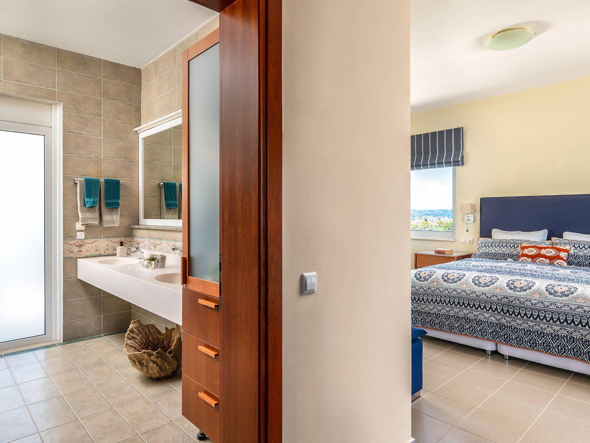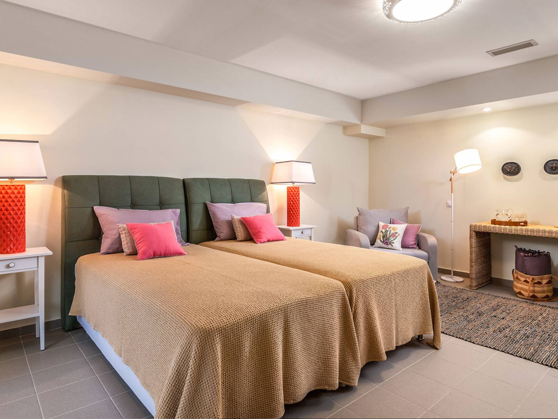 Las habitaciones de lujo están cuidadosamente diseñadas para ser su santuario, dándole una sensación de serenidad y permitiéndole despertar felizmente a su propio ritmo. Las habitaciones son espaciosas, luminosas y ventiladas pero relajadas, y las persianas exteriores eléctricas le permiten oscurecer su habitación para dormir. Las noches cálidas y bochornosas se enfrían a una temperatura perfecta con el aire acondicionado de última generación, para que pueda dormir bien. Las camas tamaño king de Hilltop Villa con colchones gruesos, ropa de cama de primera calidad, almohadas suaves y habitaciones decoradas con buen gusto crean la combinación perfecta para una noche de sueño que solo es posible en vacaciones. La comodidad de lujo significa que cada habitación tiene un baño en suite con detalles exclusivos y accesorios de lujo, toallas suaves y toques cuidados.