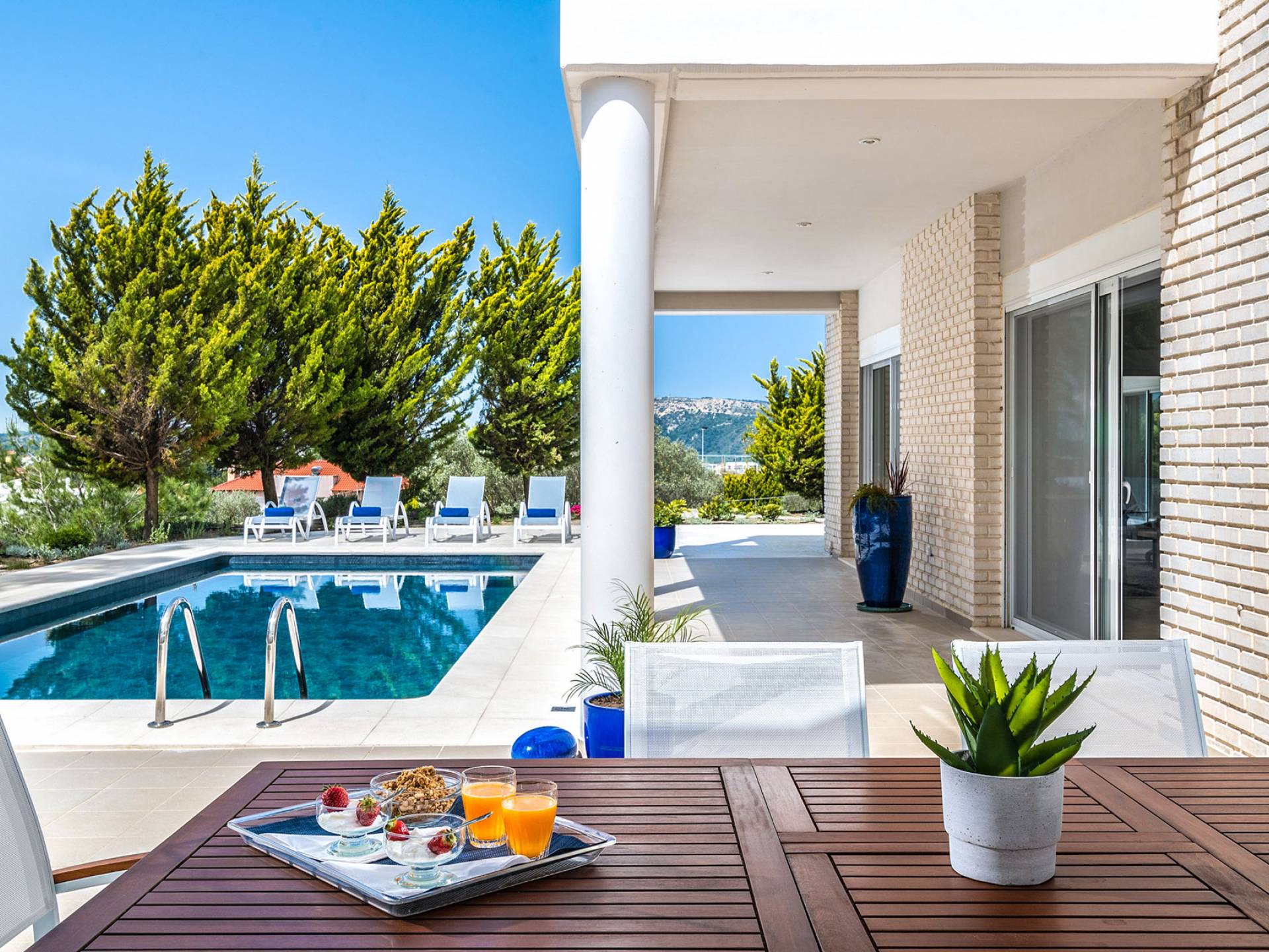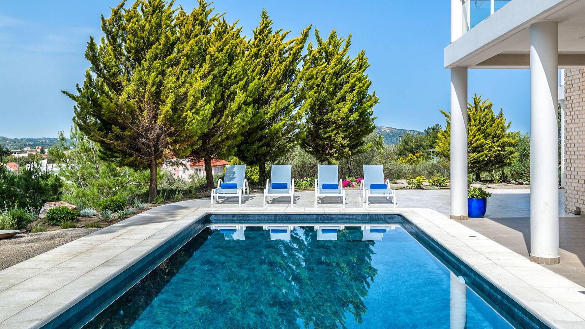 Hill Top Luxury Villa Rhodes es una villa de lujo en alquiler con 4 dormitorios y piscina privada. Hilltop Luxury Villa es la elección perfecta para aquellos que desean pasar sus vacaciones en absoluto lujo y total privacidad, mientras disfrutan del sol y la piscina. Esta villa única se encuentra en la zona tranquila y serena de Pastida en un punto alto rodeado de colinas; con vistas a los olivares, Filerimos, Pastida y más allá. Sin embargo, está a solo 10 minutos del aeropuerto y de las playas y de ambos lados de la isla. Con todas las comodidades disponibles para usted y las instalaciones de primera clase, Hilltop Villa tiene todo lo que necesita para unas vacaciones inolvidables.