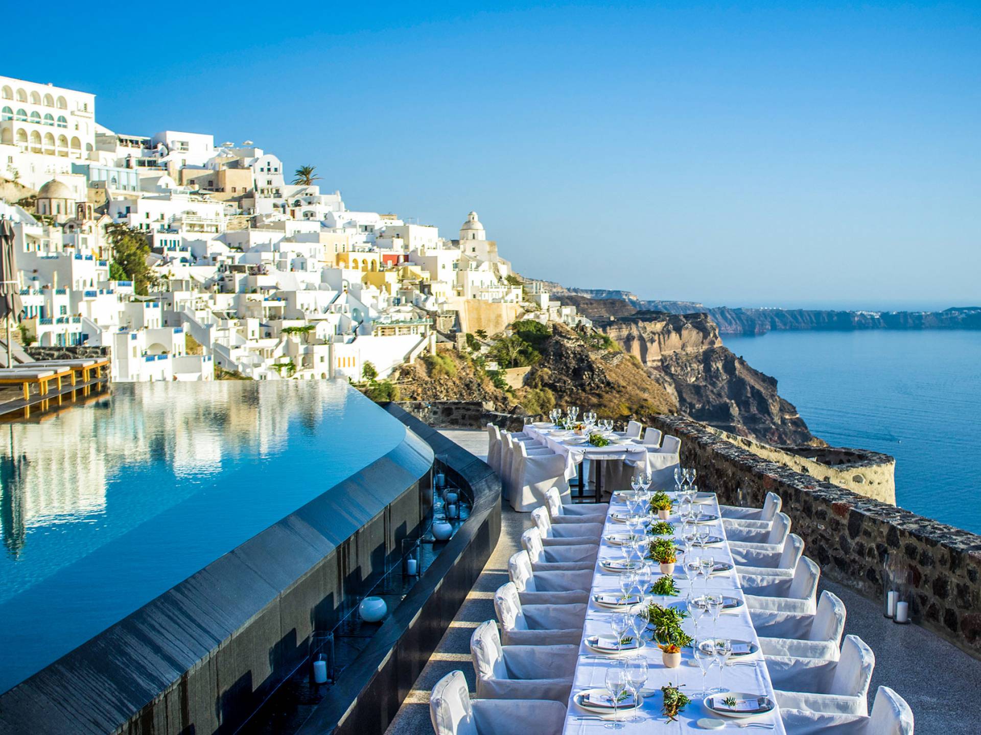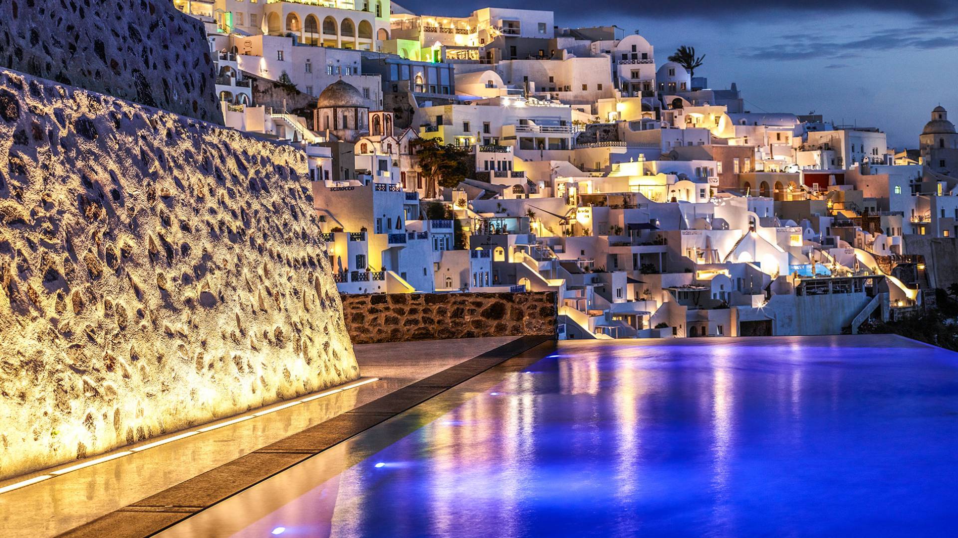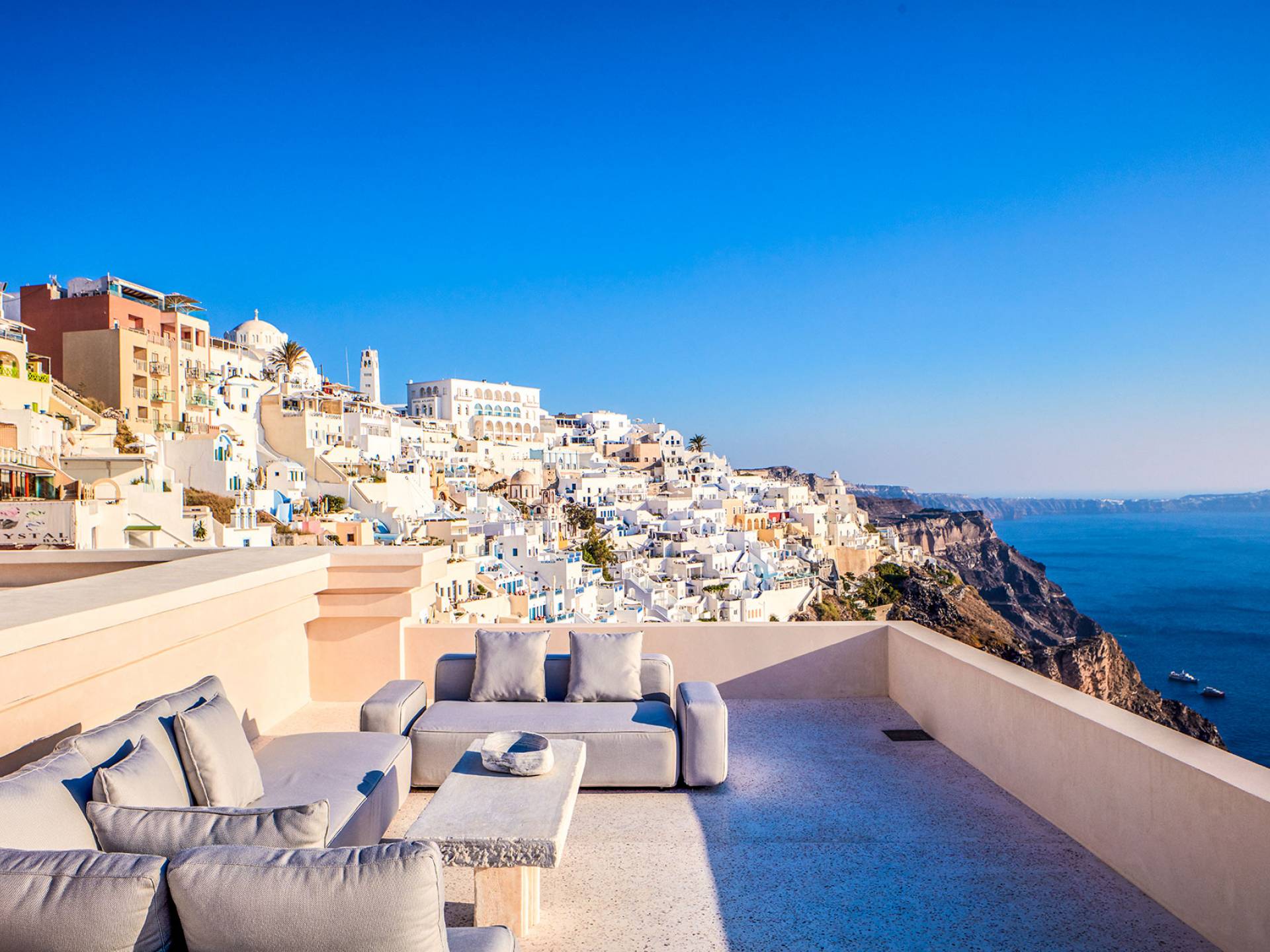 Fira Santorini es la capital de Santorini, Grecia, ubicada en el lado oeste de la isla, a 10 km del puerto principal de Athinios. Construido sobre un acantilado, a una altura de 260 metros, ofrece una impresionante vista panorámica del volcán. La ciudad de Fira se llena de gente durante la temporada alta. Es un pueblo típico de las Cícladas con encantadoras casas encaladas, con puertas y ventanas azules y pequeños callejones pavimentados en forma de laberinto. La mayoría de sus hermosos edificios son de arquitectura veneciana, incluidas algunas iglesias con cúpulas azules y coloridas terrazas que abren una vista increíble del volcán y la mundialmente famosa puesta de sol de Santorini. Fira es el centro comercial de la isla con todo tipo de tiendas, excelentes restaurantes, cafés, bares y clubes nocturnos. La caldera se considera el punto culminante de Santorini. Para aquellos interesados en la historia, una visita al Museo Arqueológico es imprescindible. La ciudad incluye numerosas iglesias y monasterios dignos de visitar, como Agios Minas, la catedral de Ipapanti, la catedral de Cristo, el monasterio de Panagia ton Dominikanidon y otros. Fira también tiene un puerto que solo se utiliza para cruceros. Desde allí, los barcos pueden llevar a los visitantes a un recorrido por el volcán de Nea y Palia Kameni.