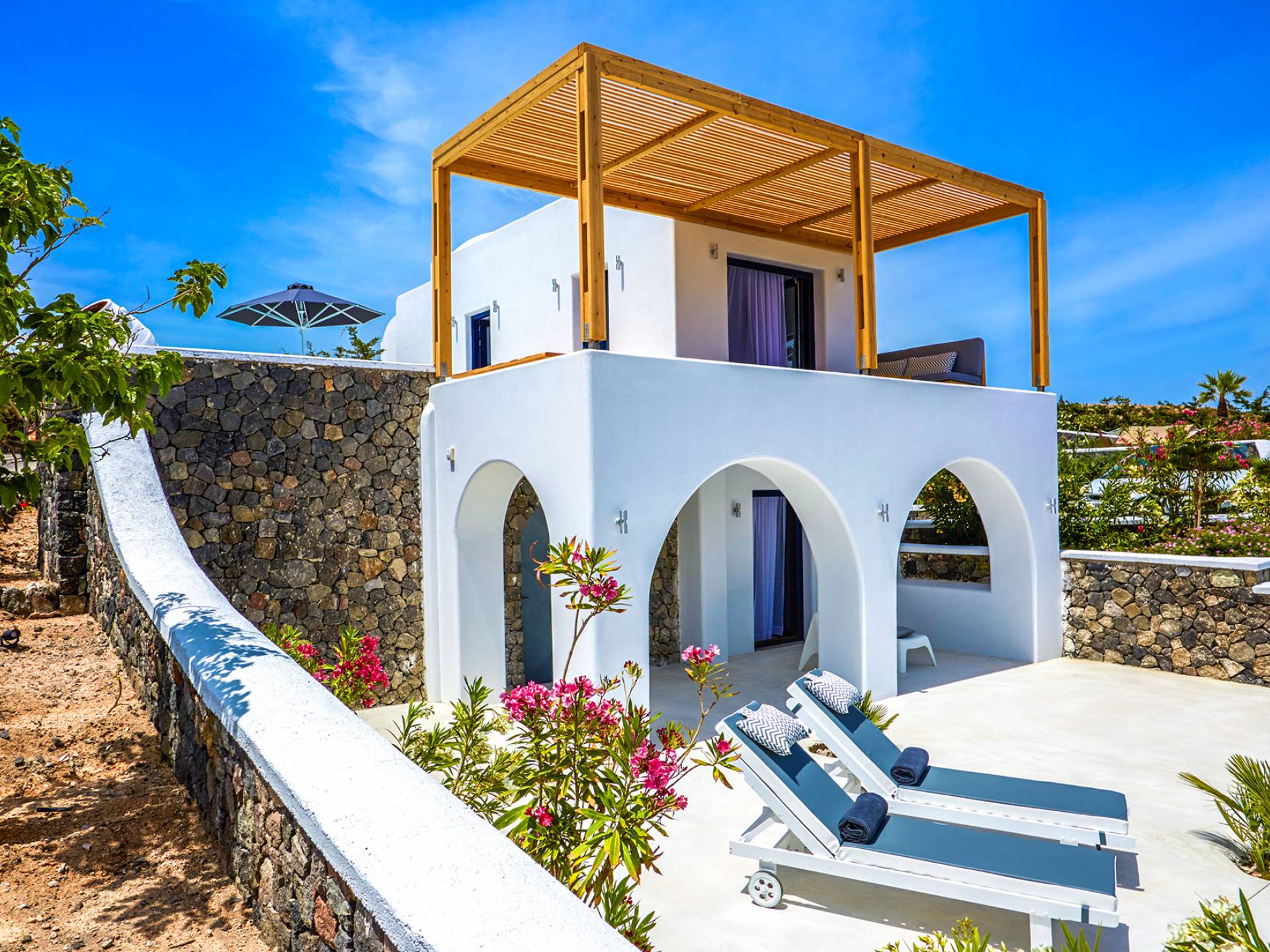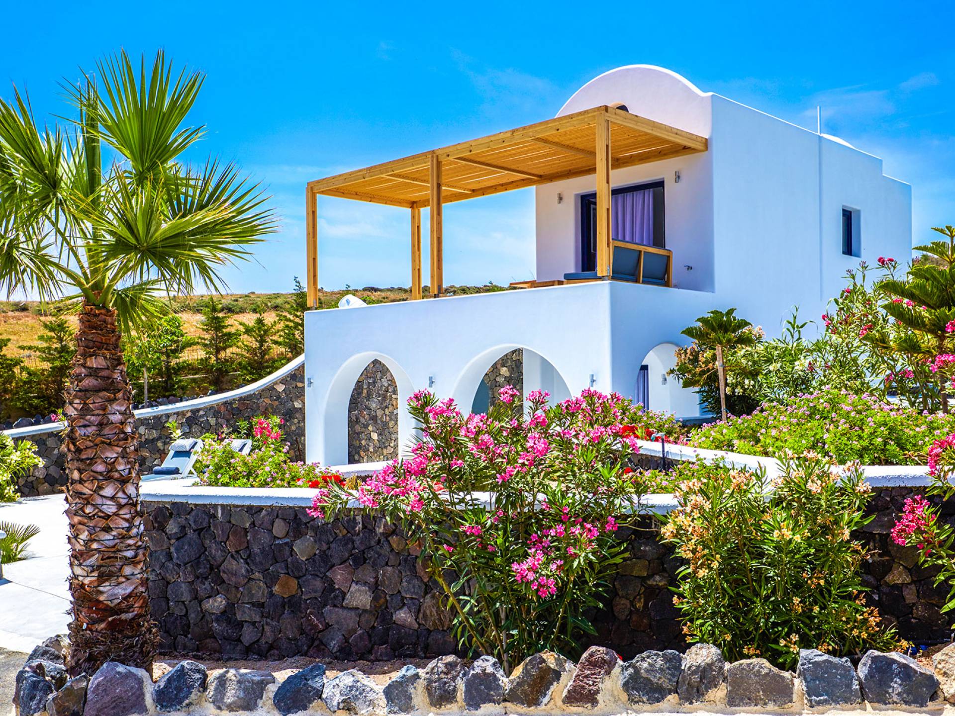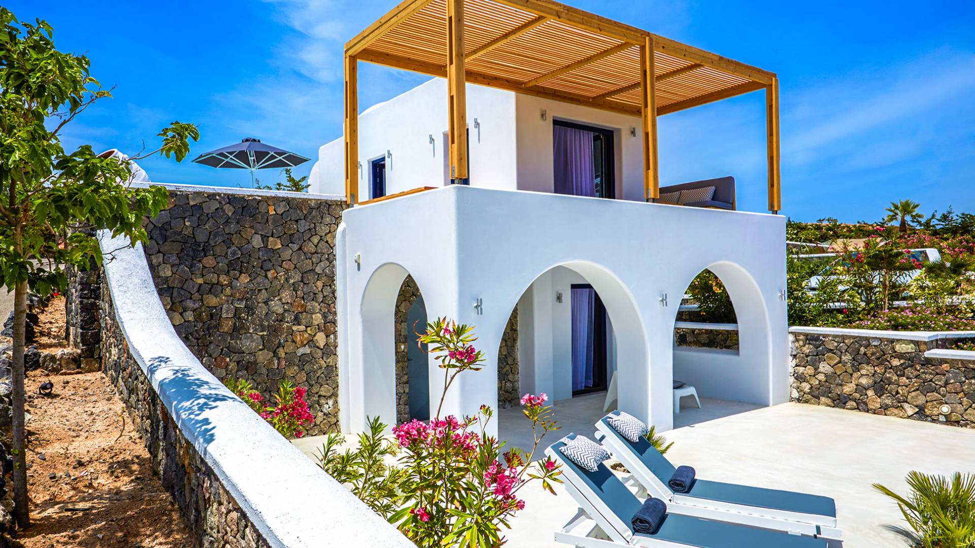 Fira Santorini es la capital de Santorini, Grecia, ubicada en el lado oeste de la isla, a 10 km del puerto principal de Athinios. Construido sobre un acantilado, a una altura de 260 metros, ofrece una impresionante vista panorámica del volcán. La ciudad de Fira se llena de gente durante la temporada alta. Es un pueblo típico de las Cícladas con encantadoras casas encaladas, con puertas y ventanas azules y pequeños callejones pavimentados en forma de laberinto. La mayoría de sus hermosos edificios son de arquitectura veneciana, incluidas algunas iglesias con cúpulas azules y coloridas terrazas que abren una vista increíble del volcán y la mundialmente famosa puesta de sol de Santorini. Fira es el centro comercial de la isla con todo tipo de tiendas, excelentes restaurantes, cafés, bares y clubes nocturnos. La caldera se considera el punto culminante de Santorini. Para aquellos interesados en la historia, una visita al Museo Arqueológico es imprescindible. La ciudad incluye numerosas iglesias y monasterios dignos de visitar, como Agios Minas, la catedral de Ipapanti, la catedral de Cristo, el monasterio de Panagia ton Dominikanidon y otros. Fira también tiene un puerto que solo se utiliza para cruceros. Desde allí, los barcos pueden llevar a los visitantes a un recorrido por el volcán de Nea y Palia Kameni.