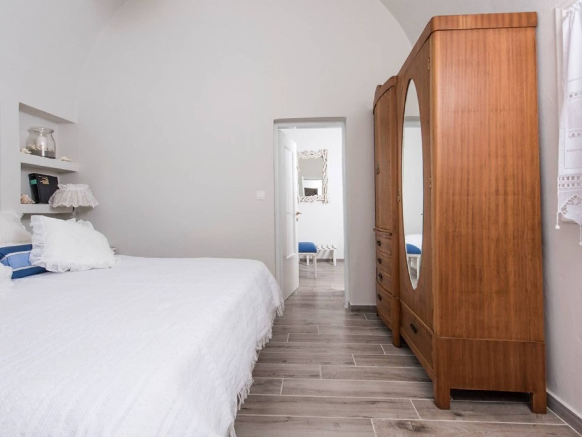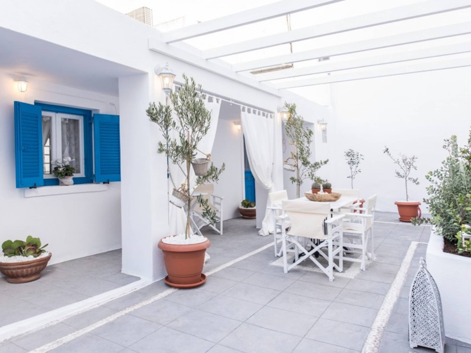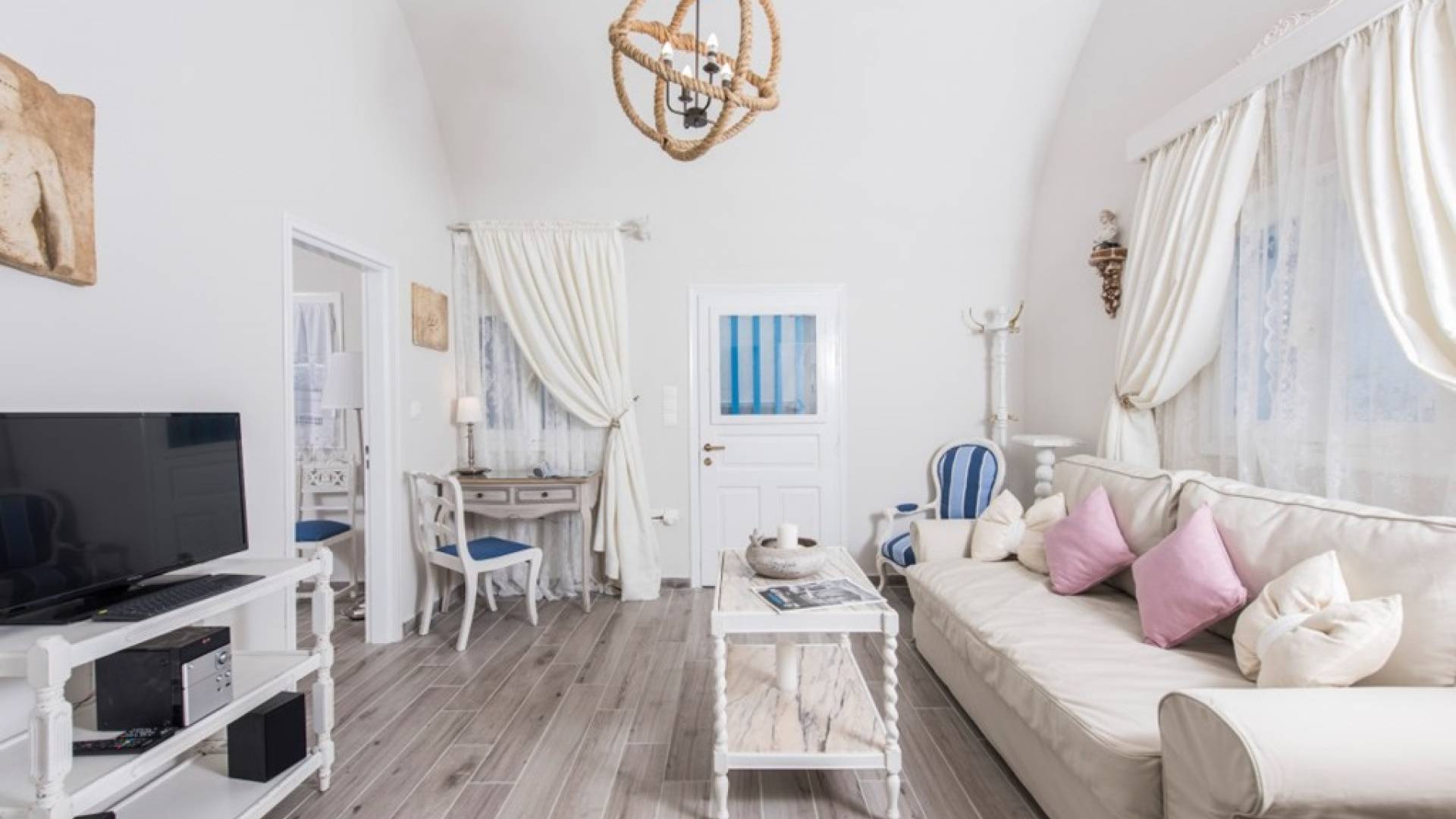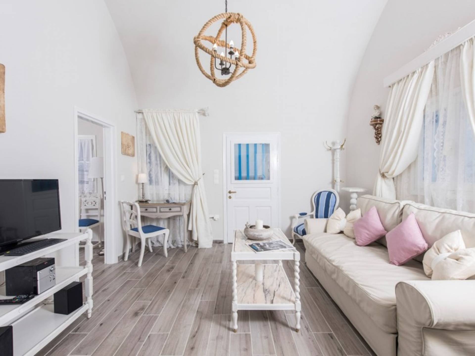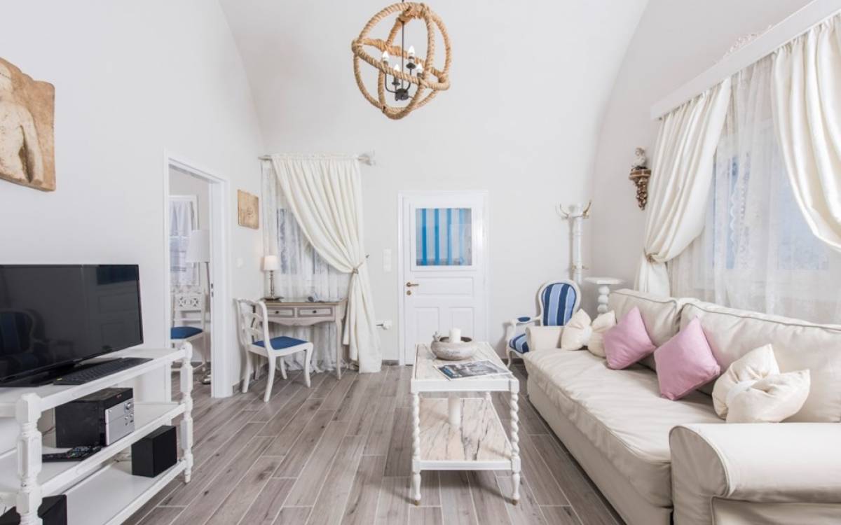 La villa Iokasti en el centro de Fira Santorini es una casa de 62 m2 completamente renovada. A primera vista parece romántico, elegante y tradicional, con muebles y artículos seleccionados de alta calidad. La casa ofrece una cómoda sala de estar con una pantalla LCD inteligente y un teclado, libros y guías, una mesa de trabajo, una cocina totalmente equipada para cocinar o disfrutar de una buena comida, un baño con ducha y artículos de tocador. La casa ofrece dos habitaciones comunicadas con camas dobles y colchones ortopédicos, que ofrecen más comodidad durante la relajación y el sueño. El segundo dormitorio tiene un baño en la habitación con ducha fácil y una segunda puerta que conduce al patio delantero.