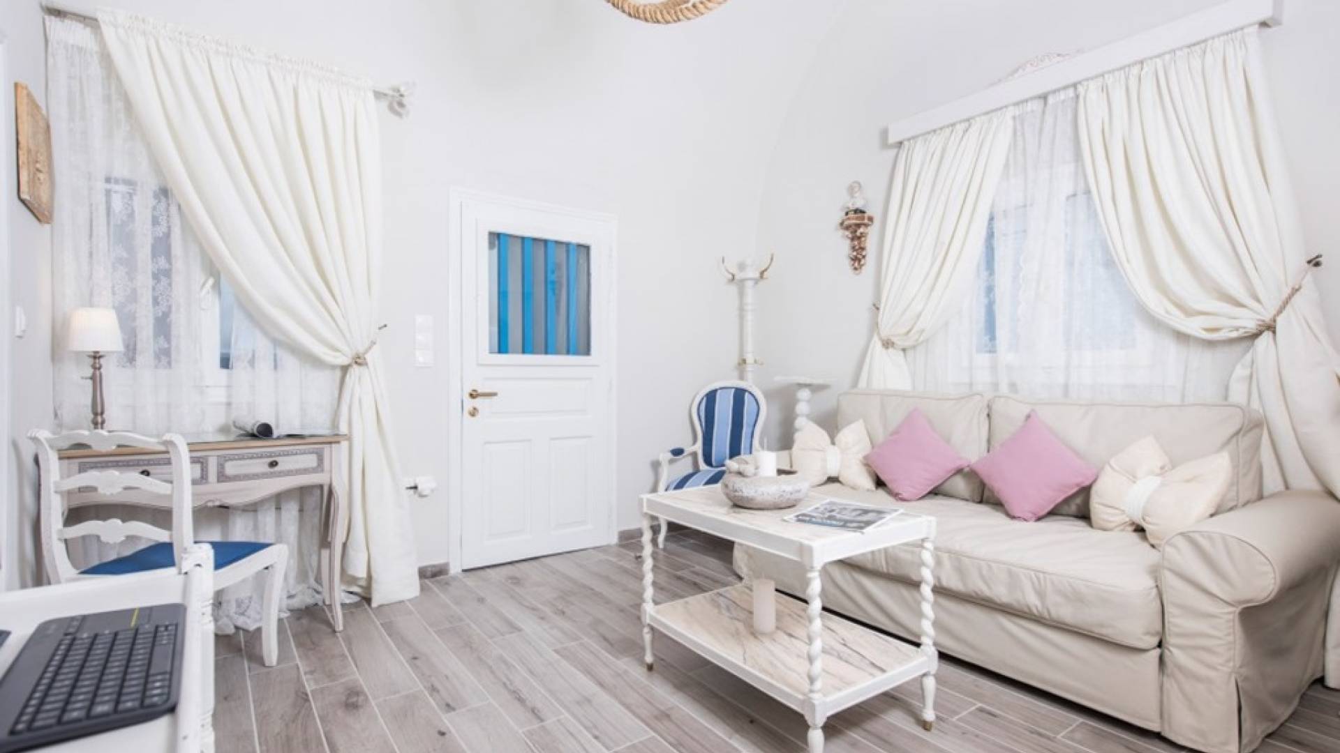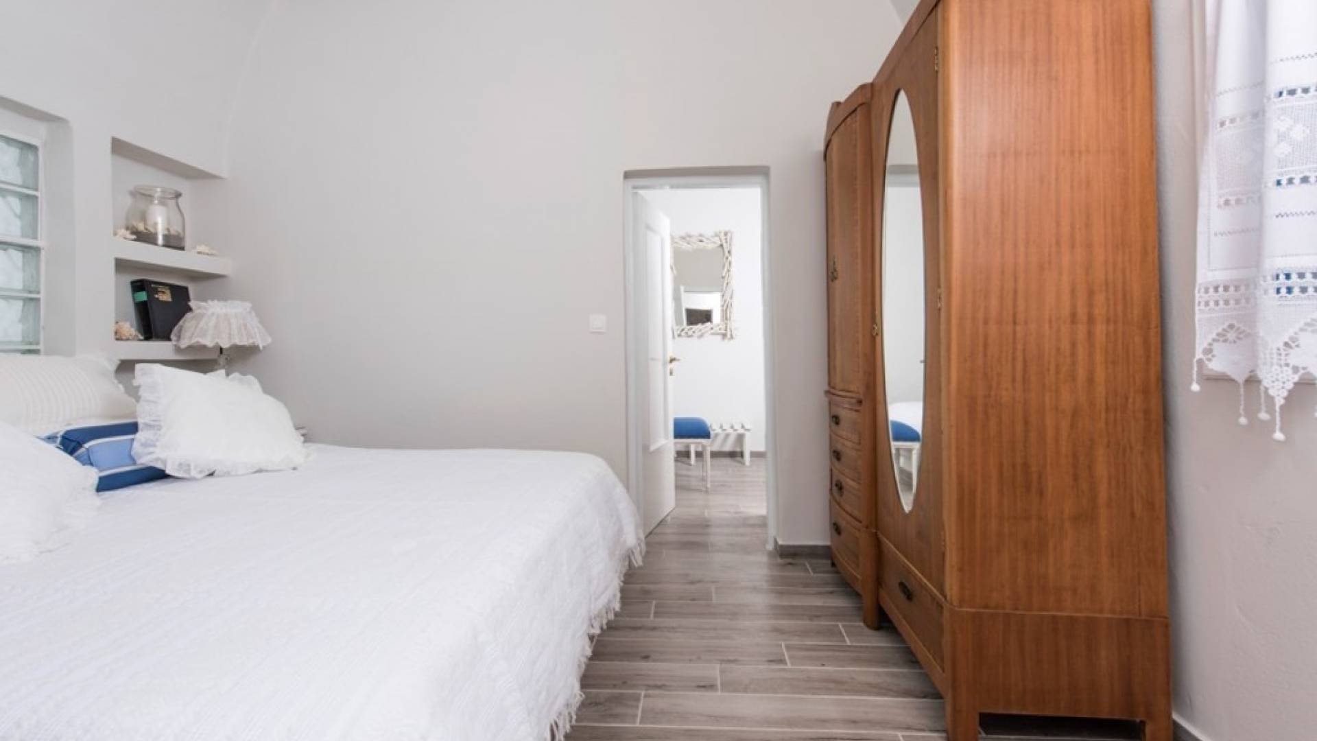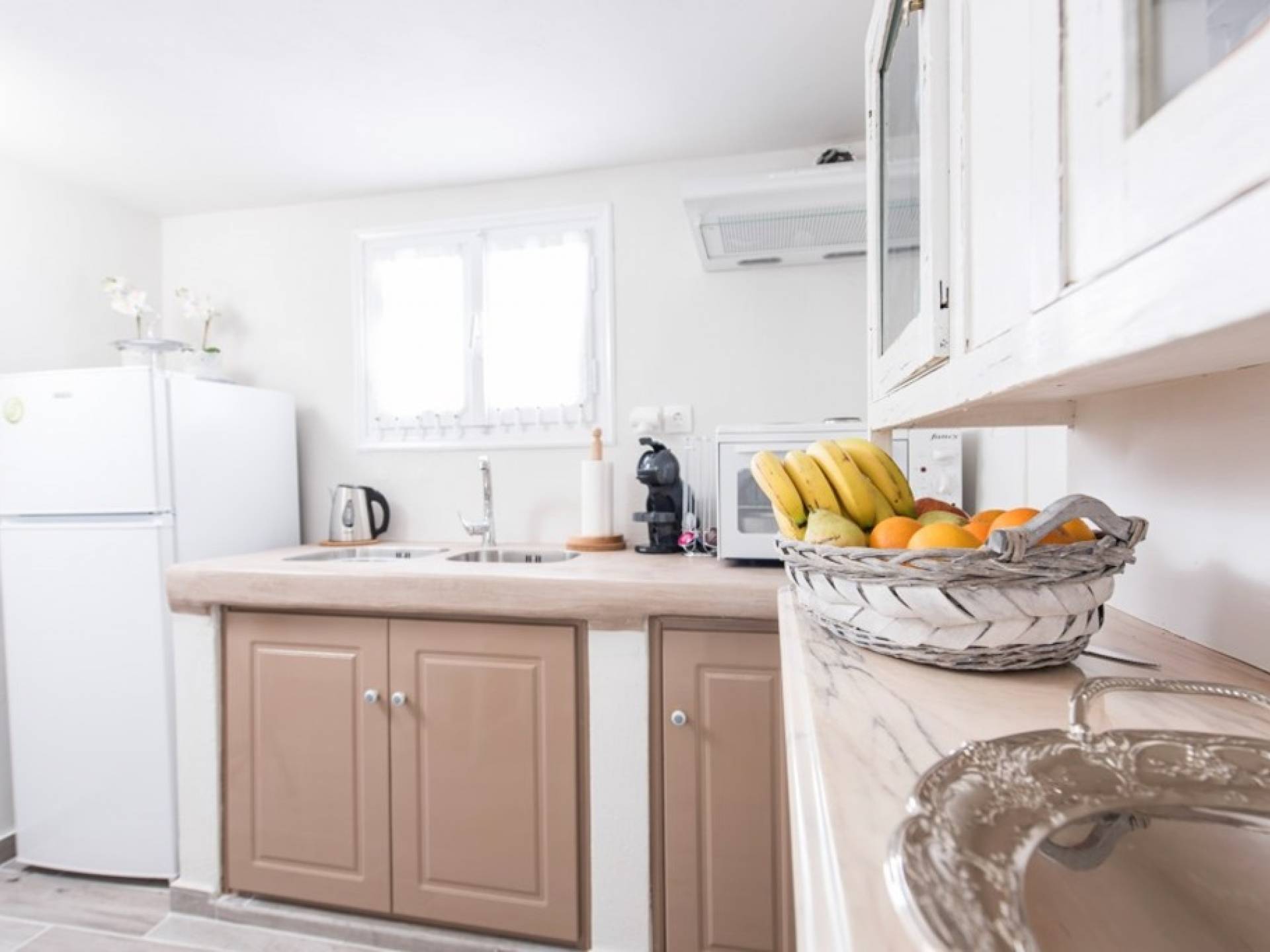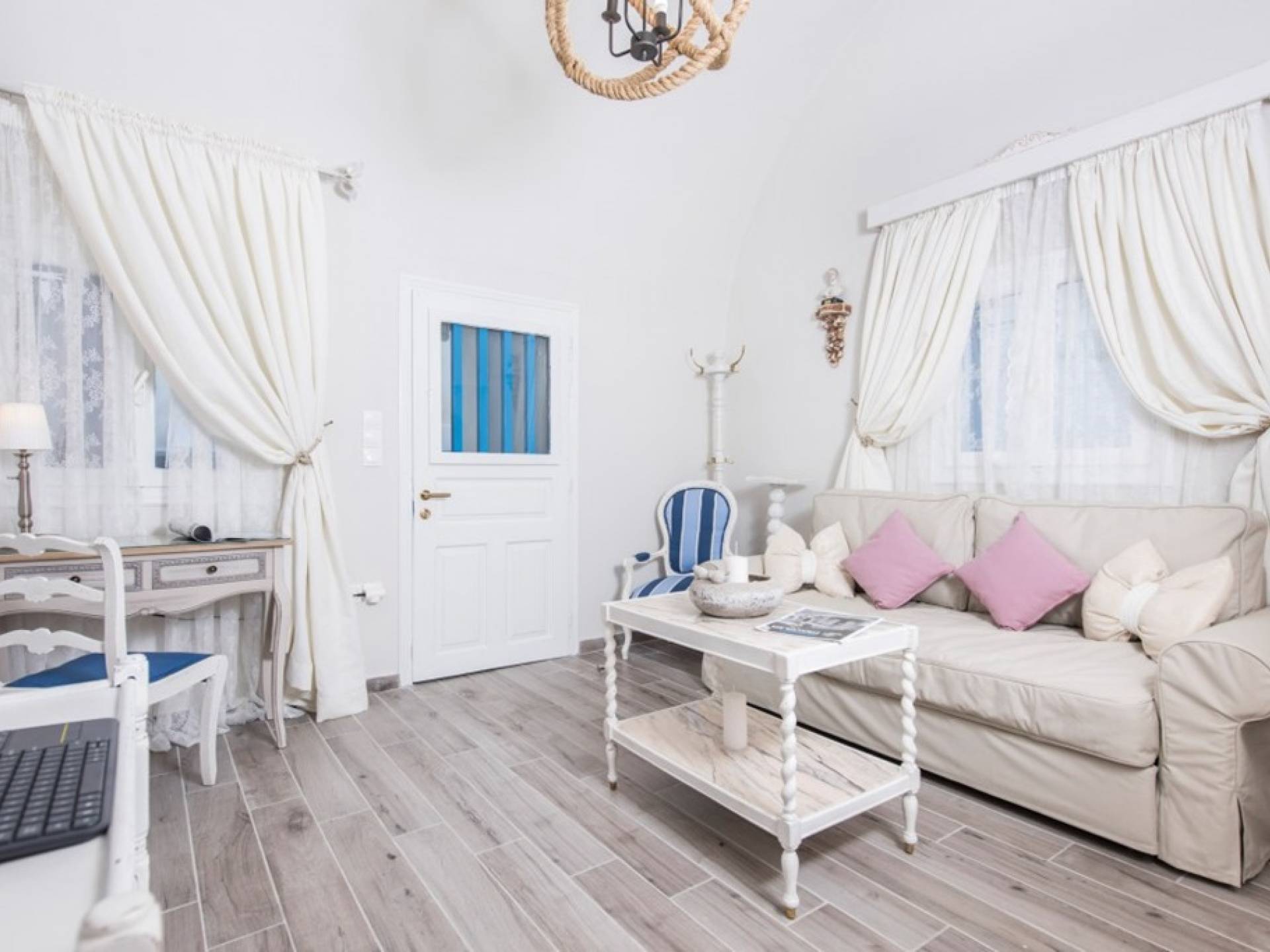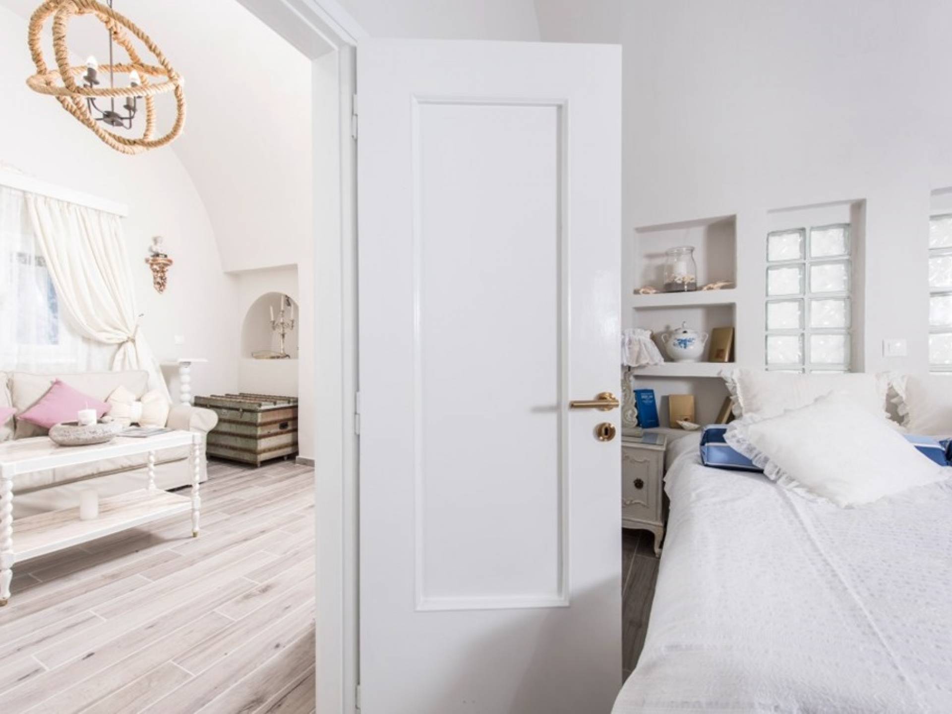 La villa Iokasti en el centro de Fira Santorini es una casa de 62 m2 completamente renovada. A primera vista parece romántico, elegante y tradicional, con muebles y artículos seleccionados de alta calidad. La casa ofrece una cómoda sala de estar con una pantalla LCD inteligente y un teclado, libros y guías, una mesa de trabajo, una cocina totalmente equipada para cocinar o disfrutar de una buena comida, un baño con ducha y artículos de tocador. La casa ofrece dos habitaciones comunicadas con camas dobles y colchones ortopédicos, que ofrecen más comodidad durante la relajación y el sueño. El segundo dormitorio tiene un baño en la habitación con ducha fácil y una segunda puerta que conduce al patio delantero.