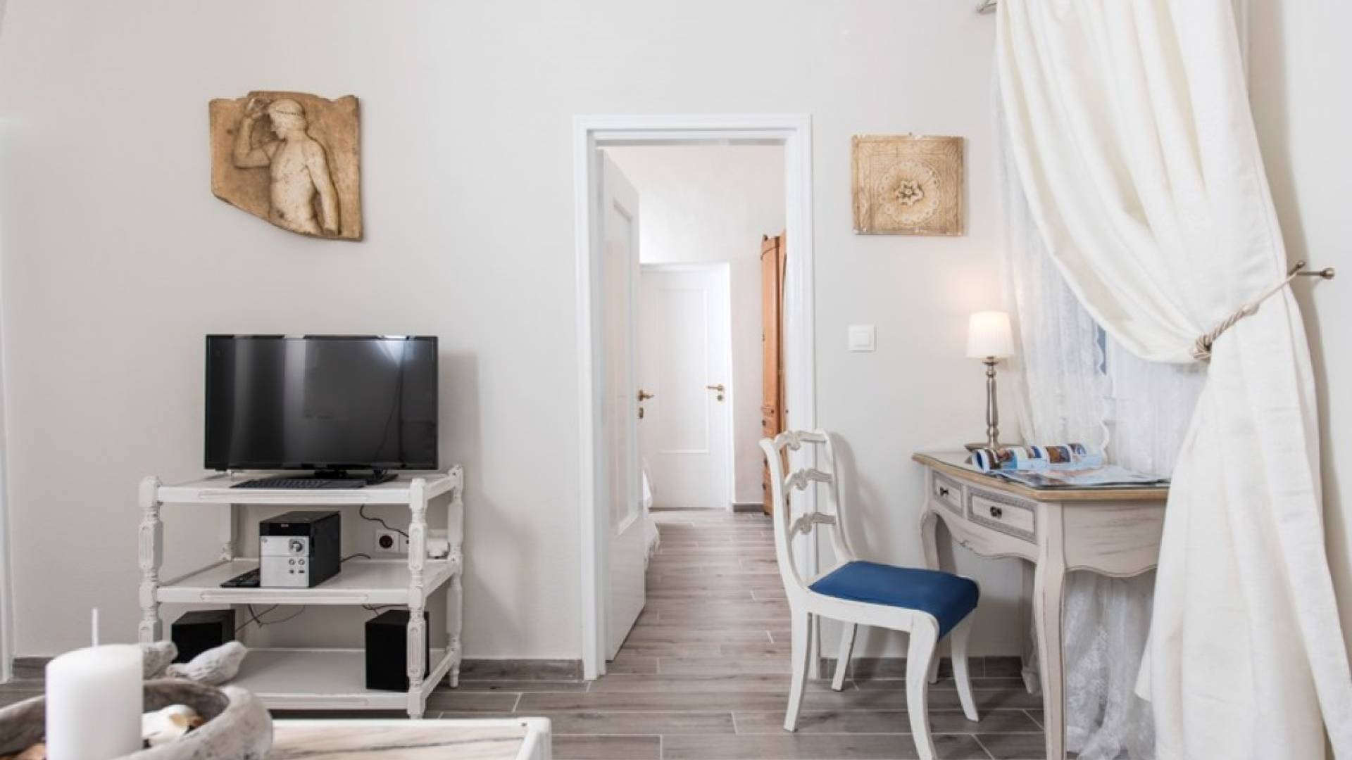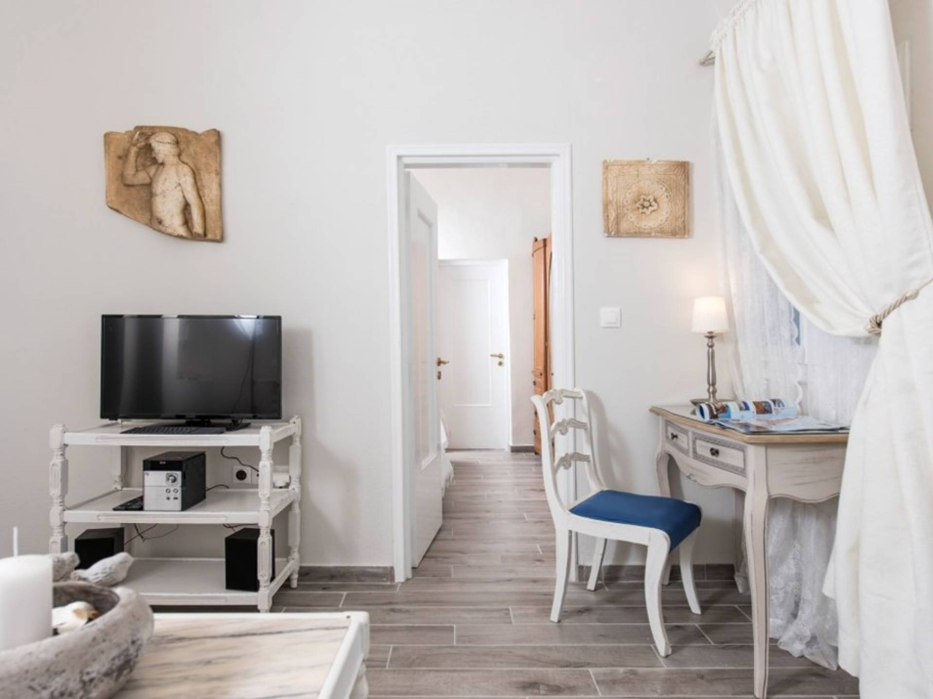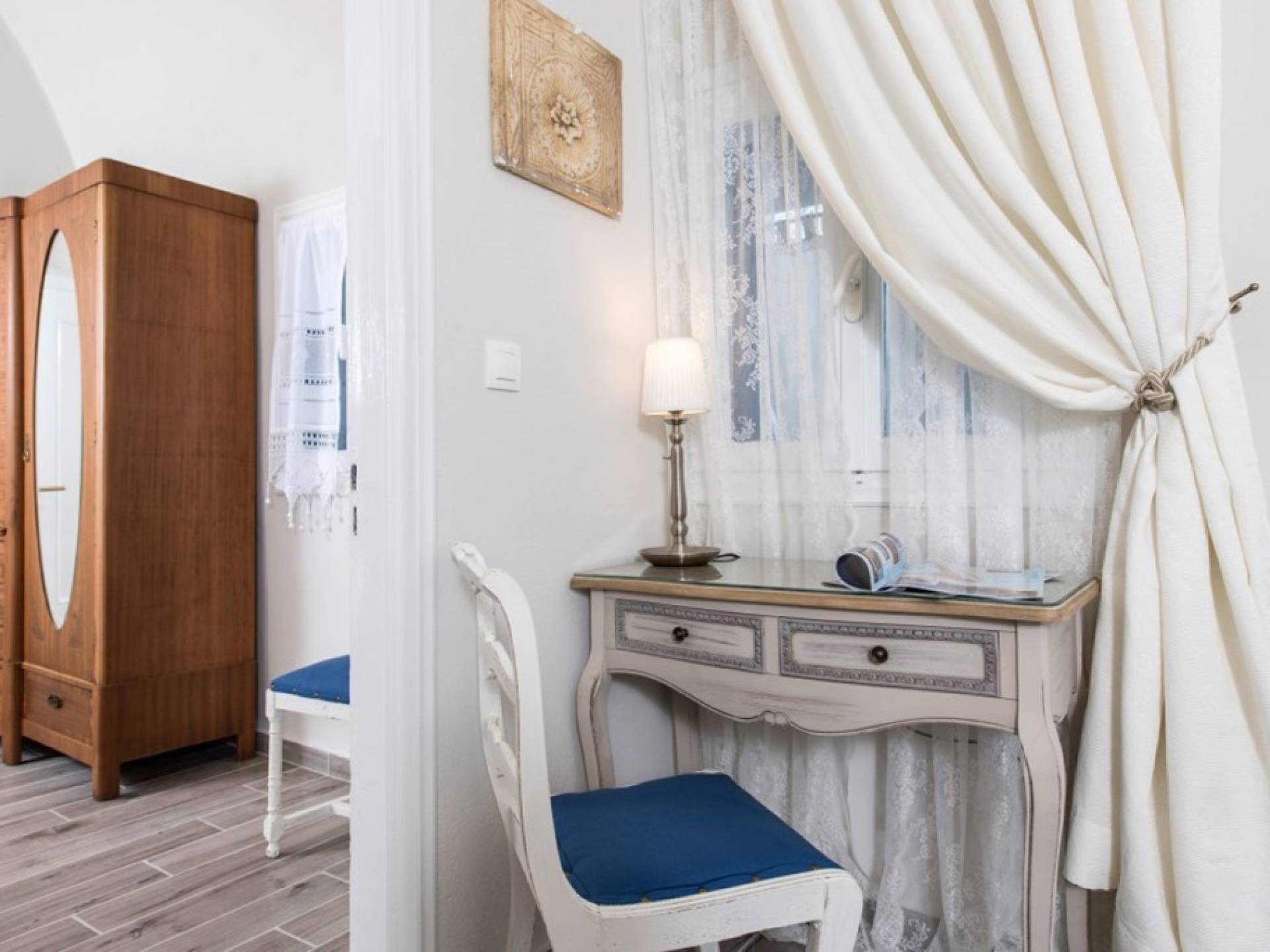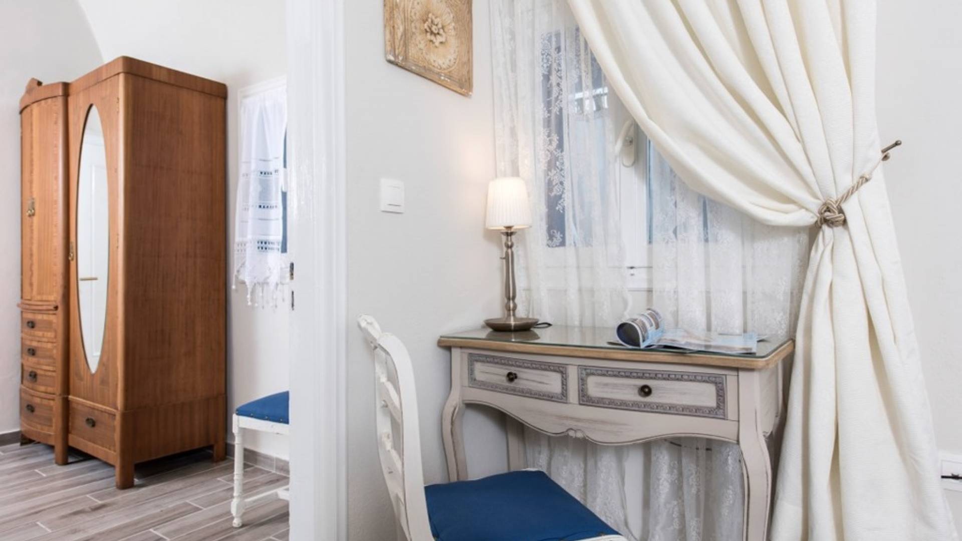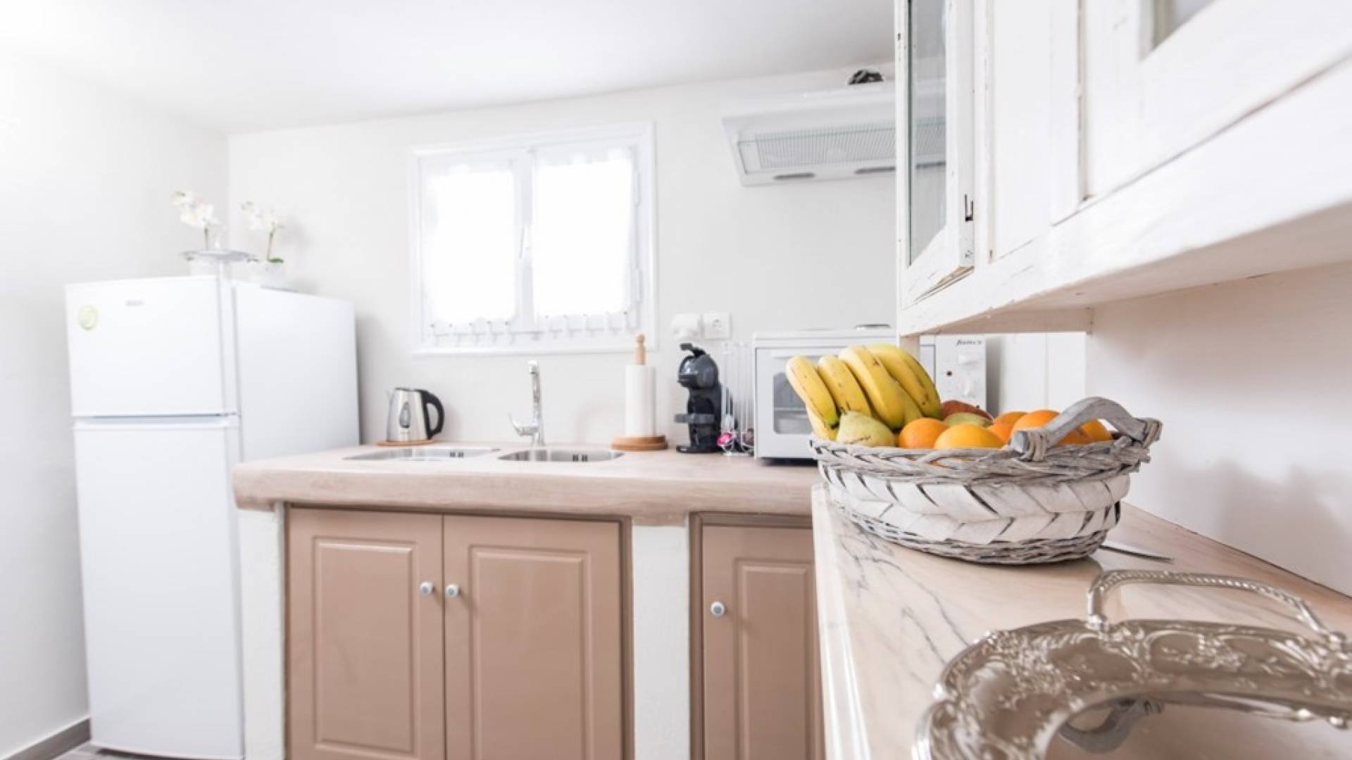 La villa Iokasti en el centro de Fira Santorini es una casa de 62 m2 completamente renovada. A primera vista parece romántico, elegante y tradicional, con muebles y artículos seleccionados de alta calidad. La casa ofrece una cómoda sala de estar con una pantalla LCD inteligente y un teclado, libros y guías, una mesa de trabajo, una cocina totalmente equipada para cocinar o disfrutar de una buena comida, un baño con ducha y artículos de tocador. La casa ofrece dos habitaciones comunicadas con camas dobles y colchones ortopédicos, que ofrecen más comodidad durante la relajación y el sueño. El segundo dormitorio tiene un baño en la habitación con ducha fácil y una segunda puerta que conduce al patio delantero.