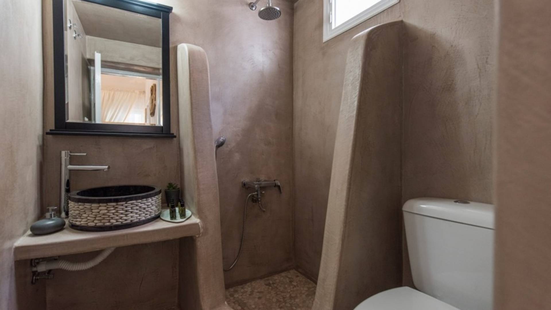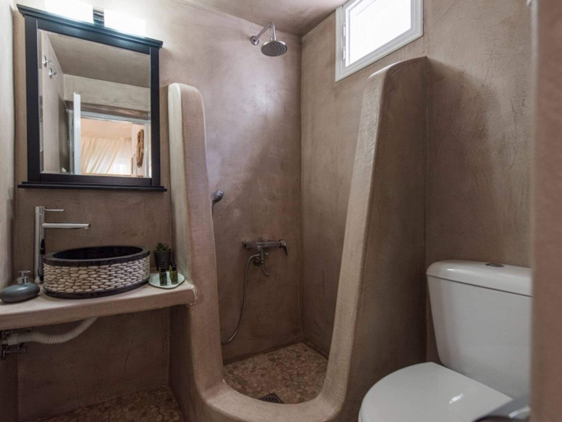 La casa sigue un carácter ecológico, es sensible al medio ambiente, utiliza equipos eléctricos clase A+, sistema de caldera solar, y cuenta con un contenedor de reciclaje y un contenedor adicional para desechos. La villa Iokasti ofrece también un patio bellamente decorado con mesas de comedor, tumbonas y una ducha al aire libre, un jacuzzi ideal para tomar el sol y relajarse durante el día, y para disfrutar de una cena romántica a la luz de las velas antes de salir por la noche.