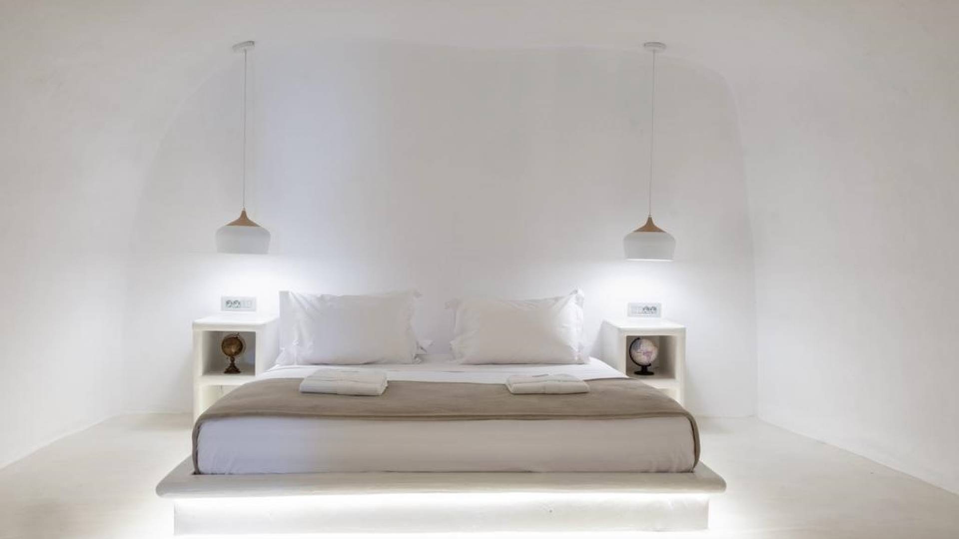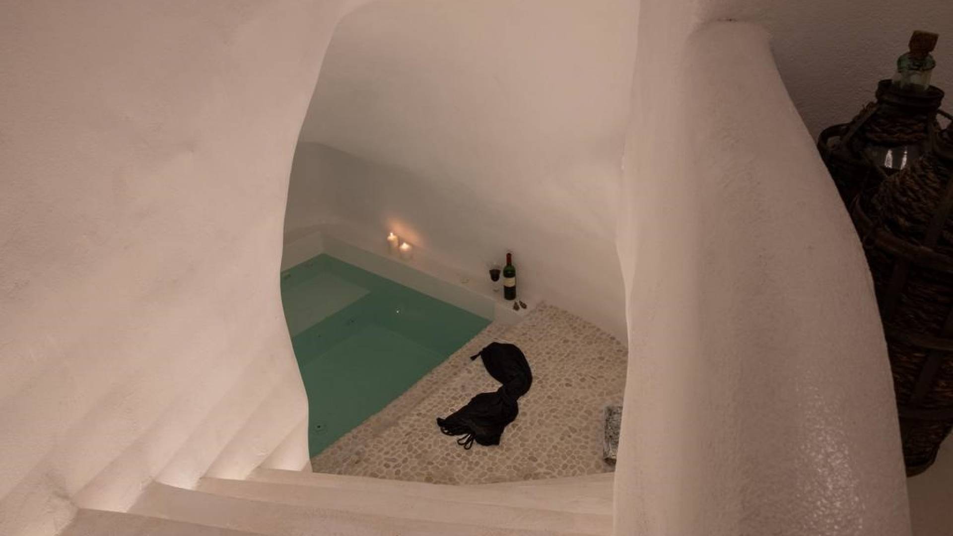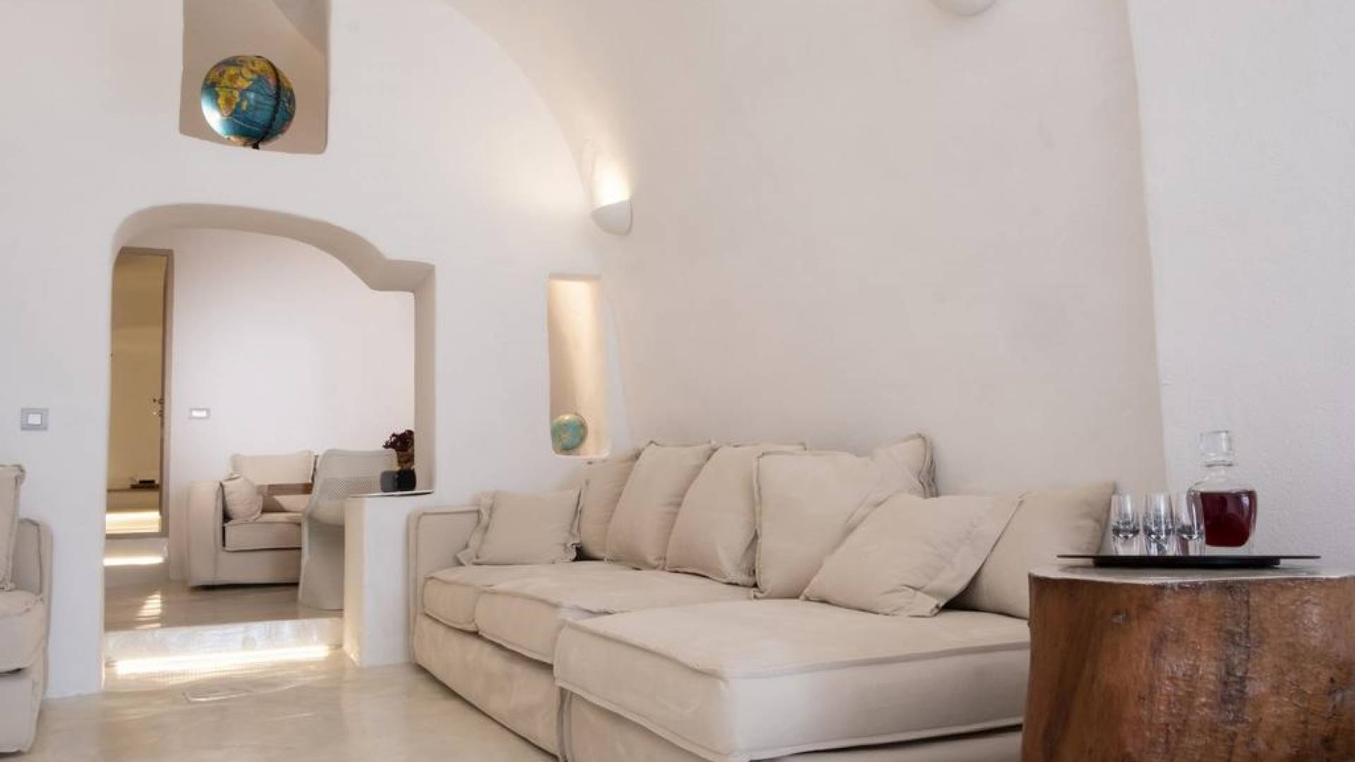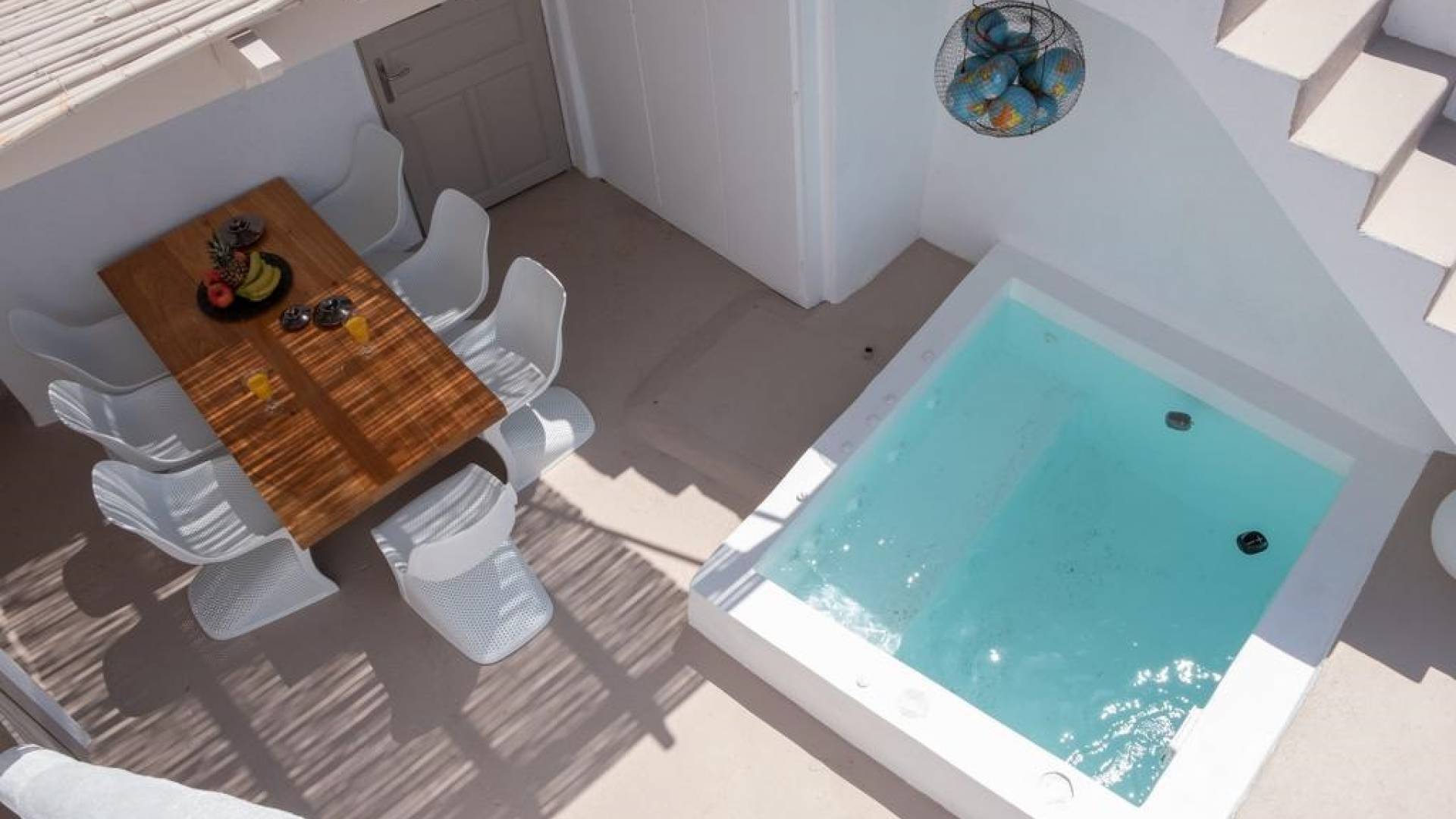 The Globe Suites Villa Santorini es una villa de lujo en alquiler con 2 dormitorios, un jacuzzi al aire libre y una piscina de inmersión climatizada. El Globe Suites Villa Santorini puede acomodar de 2 a 6 personas en un espacio llano con dos dormitorios dobles conectados a dos baños privados con ducha, una amplia zona de estar (que incluye un sofá cama doble o dos camas individuales), un desayuno interior - comedor - Sala de TV, una cocina completamente equipada con acceso directo a la hermosa terraza y una increíble piscina de inmersión cubierta climatizada en forma de cueva.