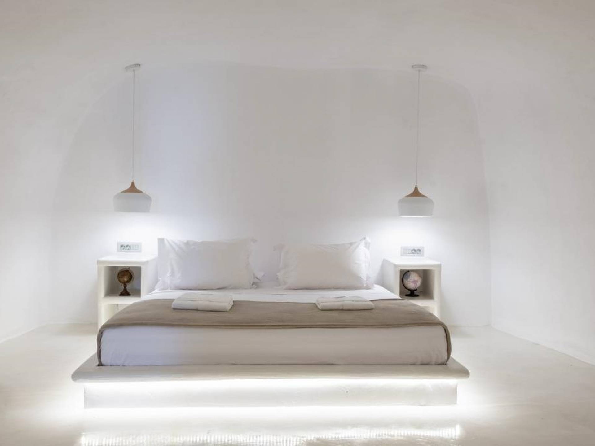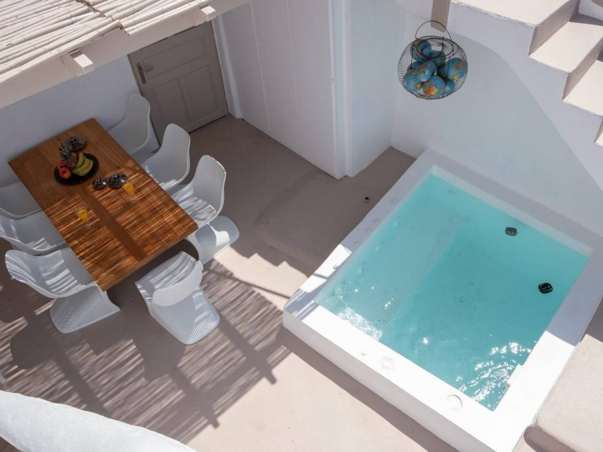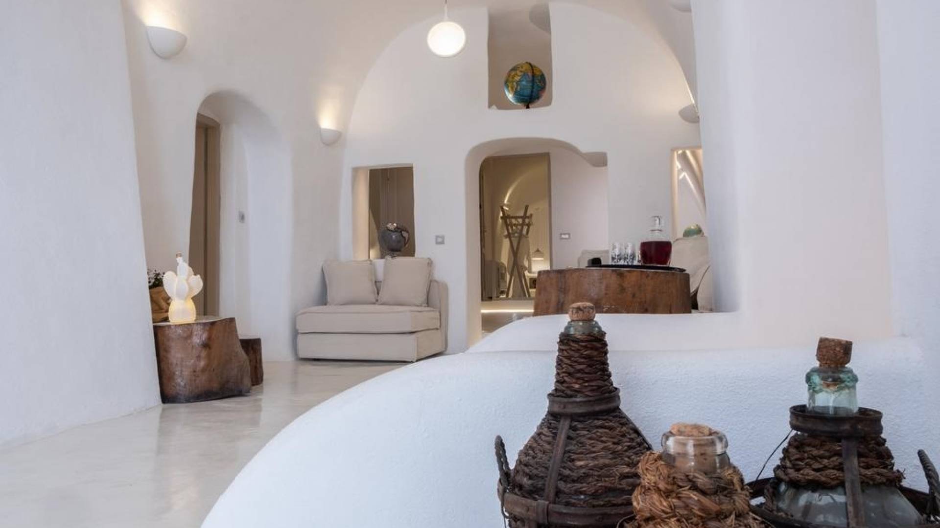 The Globe Suites Villa Santorini es una villa de lujo en alquiler con 2 dormitorios, un jacuzzi al aire libre y una piscina de inmersión climatizada. El Globe Suites Villa Santorini puede acomodar de 2 a 6 personas en un espacio llano con dos dormitorios dobles conectados a dos baños privados con ducha, una amplia zona de estar (que incluye un sofá cama doble o dos camas individuales), un desayuno interior - comedor - Sala de TV, una cocina completamente equipada con acceso directo a la hermosa terraza y una increíble piscina de inmersión cubierta climatizada en forma de cueva.