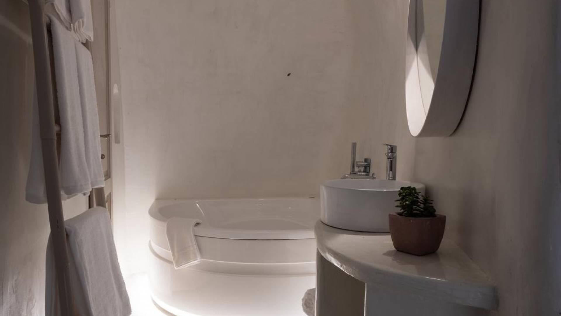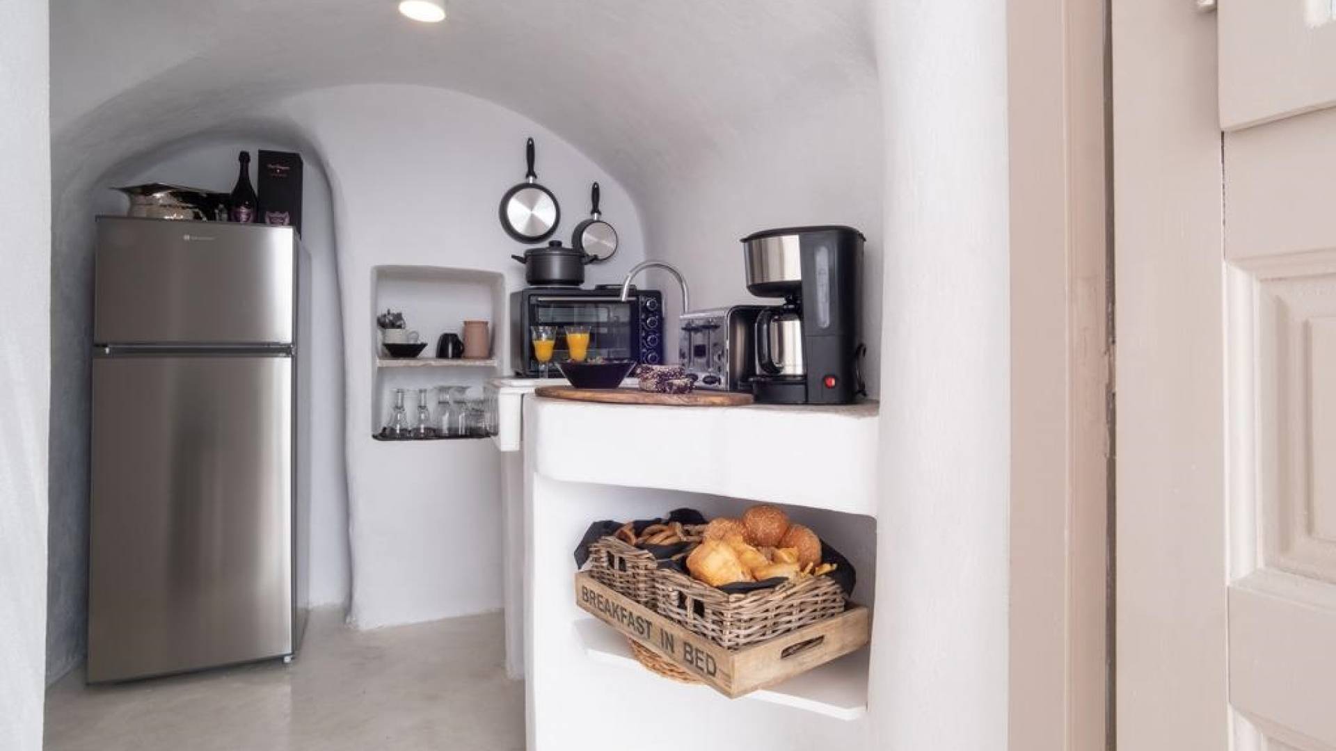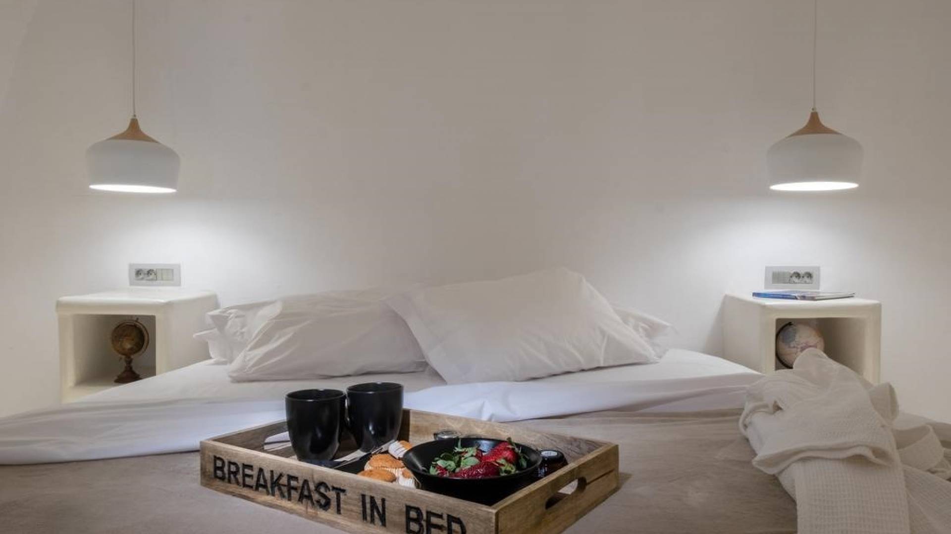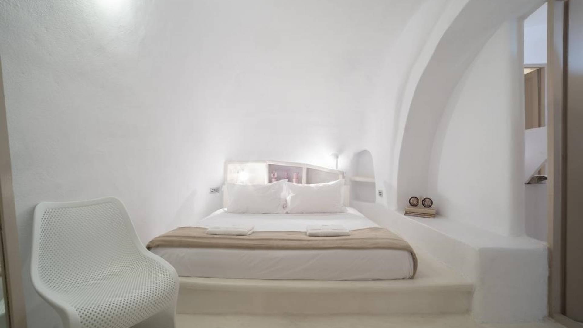 The Globe Suites Villa Santorini es una villa de lujo en alquiler con 2 dormitorios, un jacuzzi al aire libre y una piscina de inmersión climatizada. El Globe Suites Villa Santorini puede acomodar de 2 a 6 personas en un espacio llano con dos dormitorios dobles conectados a dos baños privados con ducha, una amplia zona de estar (que incluye un sofá cama doble o dos camas individuales), un desayuno interior - comedor - Sala de TV, una cocina completamente equipada con acceso directo a la hermosa terraza y una increíble piscina de inmersión cubierta climatizada en forma de cueva.