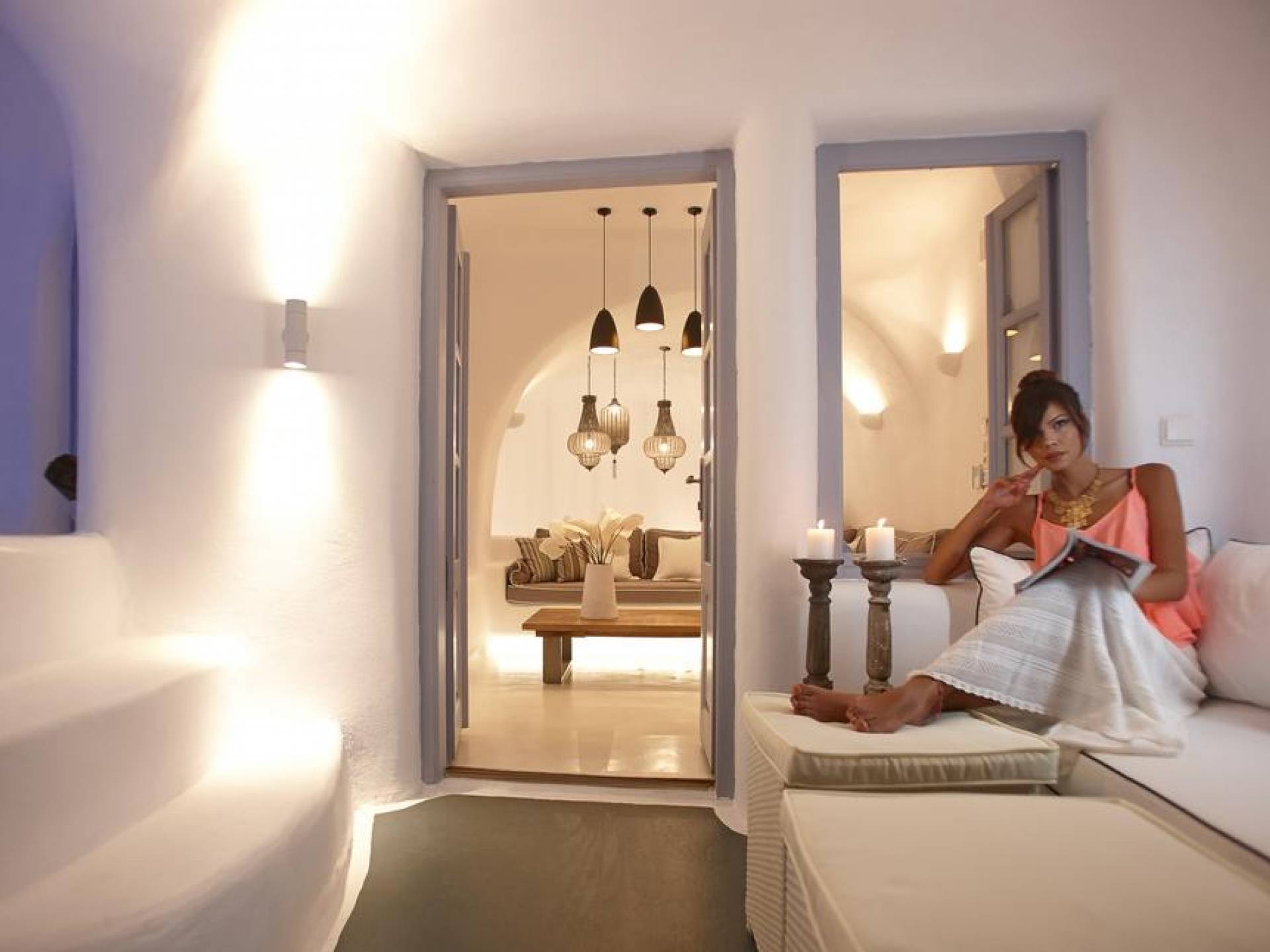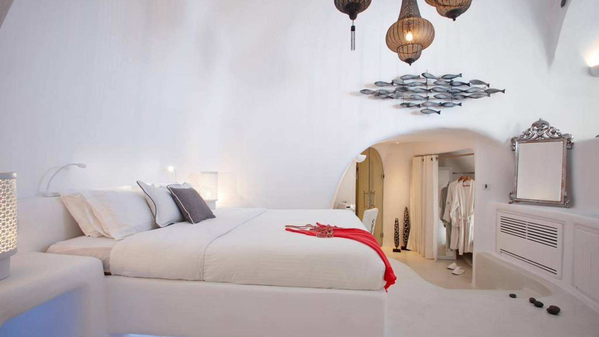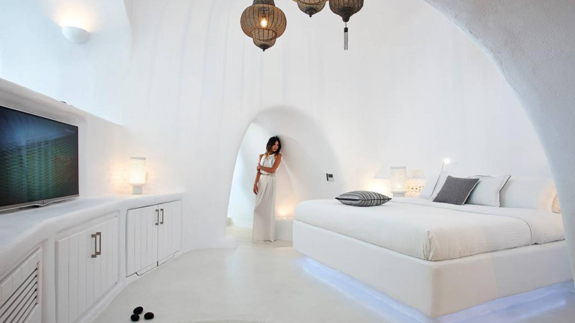 Dana Villas & Suites está ubicado completamente en el acantilado de Santorini, a solo cinco minutos a pie de la plaza principal de la capital. Sin embargo, la ubicación ofrece privacidad única y una magnífica vista panorámica de la bahía de la caldera de Santorini, el volcán y la impresionante puesta de sol lejos del ruido y las multitudes. Las elegantes suites están decoradas en el estilo tradicional de las Cícladas combinando lujo y comodidad. Un refugio de lujo espacioso ideal con una piscina privada que ofrece un ambiente acogedor y una vista espectacular, ideal para familias o amigos.