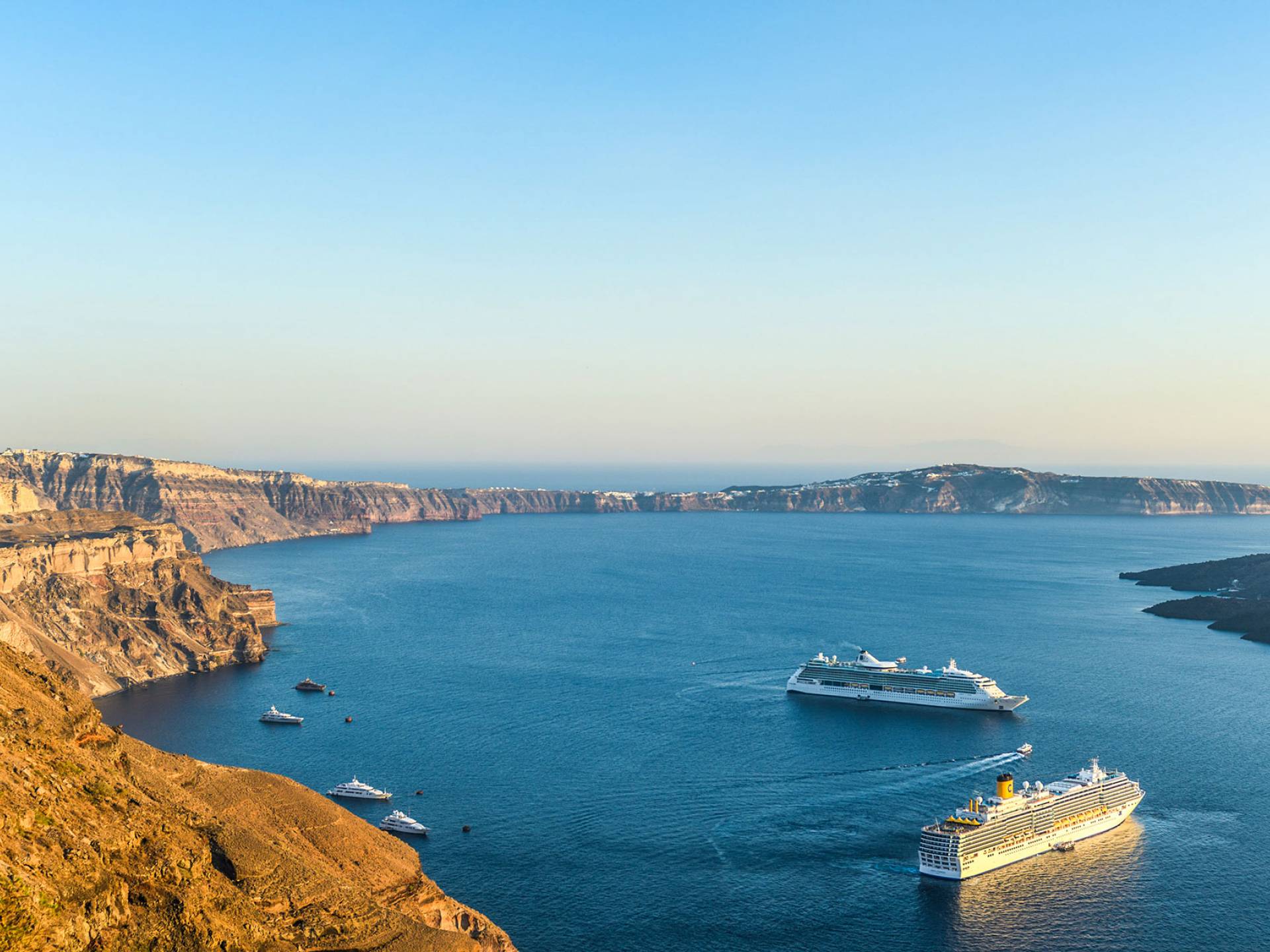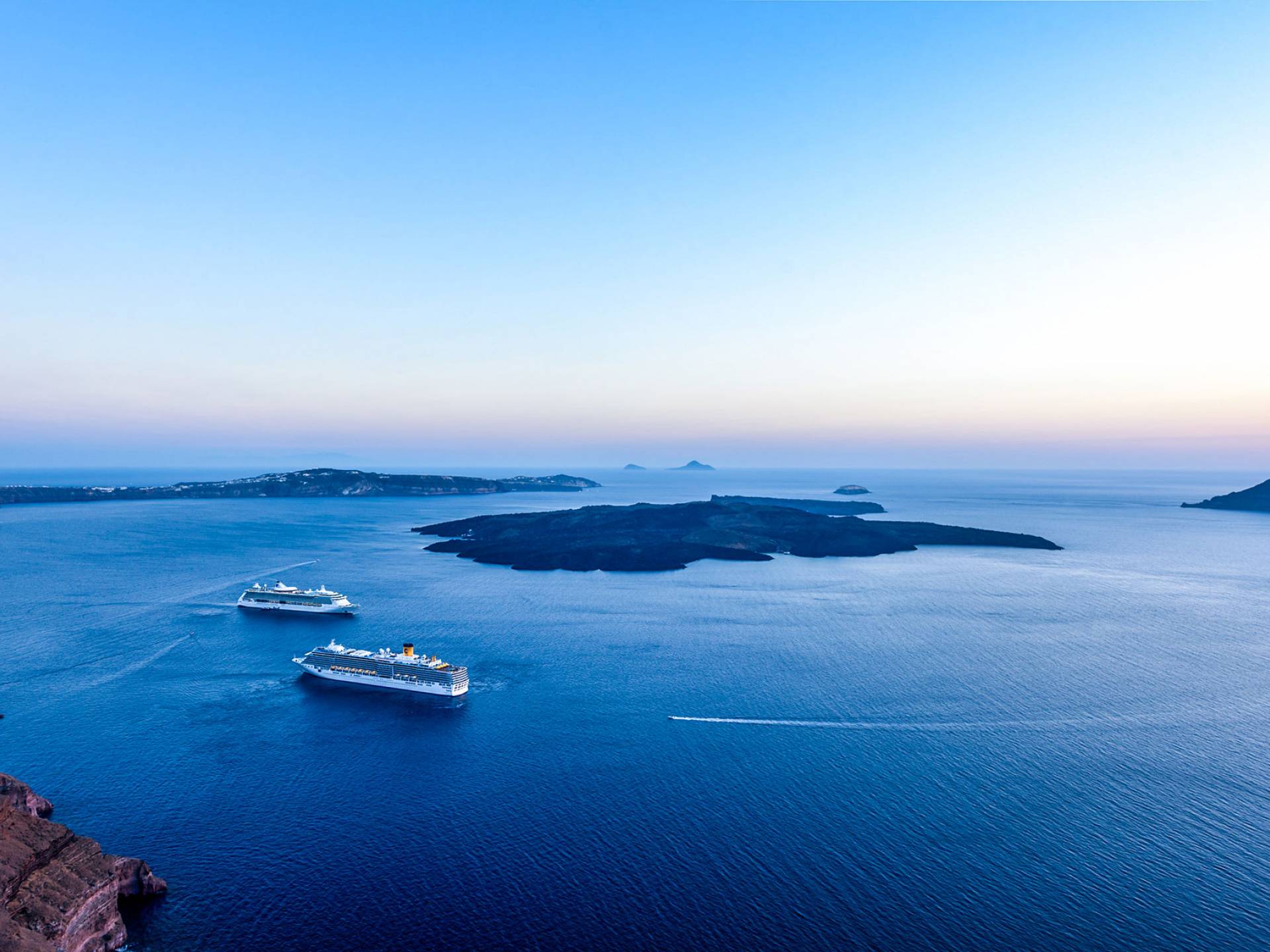 La belleza eterna de la isla de Santorini atrae a miles de visitantes cada año y se encuentra entre los principales destinos turísticos del mundo. Su paisaje volcánico salvaje, los acantilados escarpados, la naturaleza salvaje y las hermosas playas combinadas con su rica historia y tradiciones hacen de Santorini la joya de la corona de Grecia. La forma inicial de Santorini durante la antigüedad fue redonda. Obtuvo su forma actual en aproximadamente 1.650 aC debido a una severa erupción volcánica que desapareció en la mitad de la isla. Hoy, la mitad de la caldera de Santorini está sumergida, lo que la convierte en la única caldera hundida en el mundo.