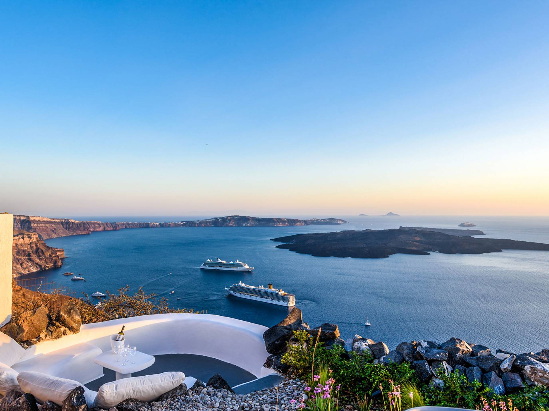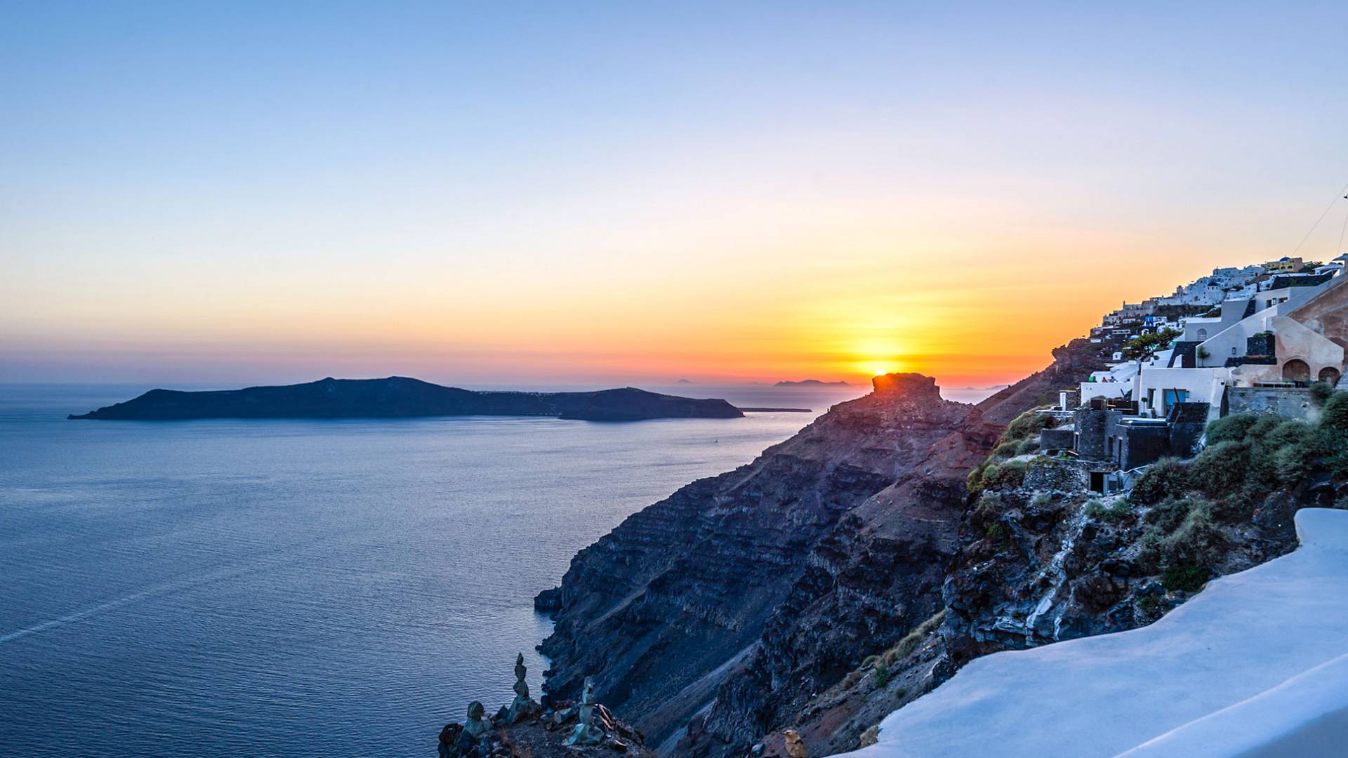 Imerovigli Santorini es un pintoresco pueblo al norte de Santorini, a 2 km de la capital de Fira. El nombre de Imerovigli proviene de la palabra vigla que significa punto de vista. La posición del pueblo ofrece una vista clara de la caldera y la hace muy atractiva para los turistas. Aquí encontrará muchas tabernas y cafés con impresionantes vistas a la caldera. Frente a Imerovigli, hay una enorme roca llamada Scaros. Encima se encuentra un castillo del siglo XIII que en el pasado albergó todas las oficinas administrativas de la isla. Esta parte de la isla se derrumbó después de un fuerte terremoto, y solo quedó la colina de Scaros. Imerovigli tiene numerosas capillas e iglesias para exhibir construidas sobre las rocas y con vistas al mar. El pueblo es famoso por ser el destino romántico por excelencia.