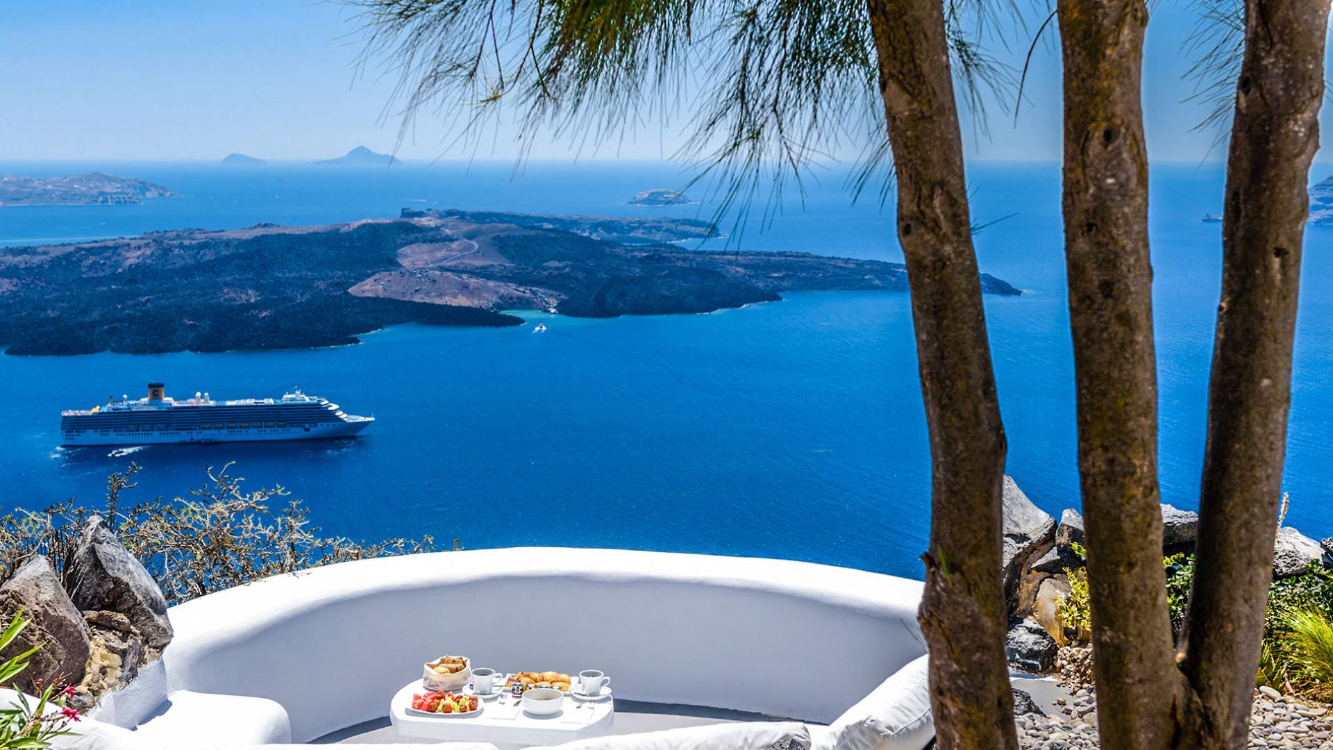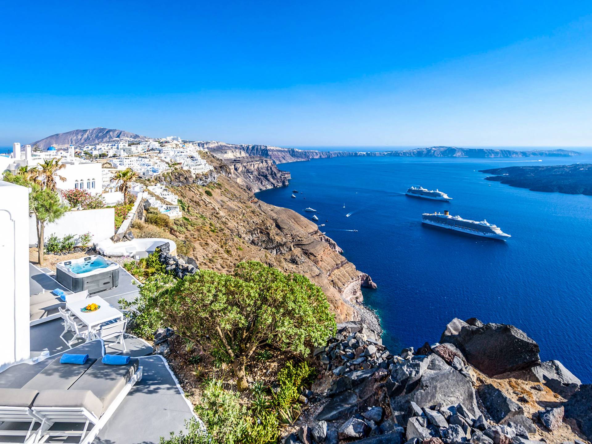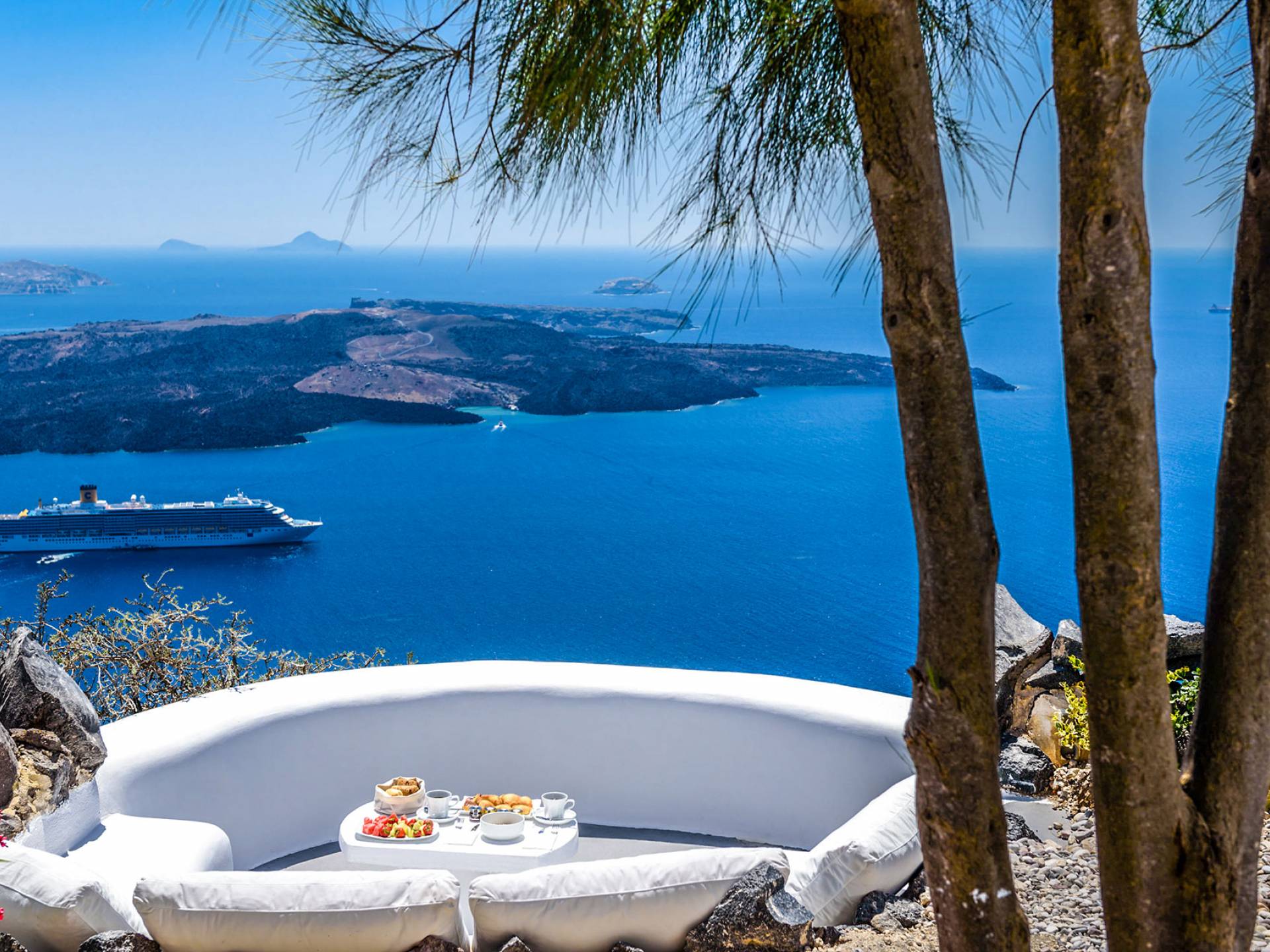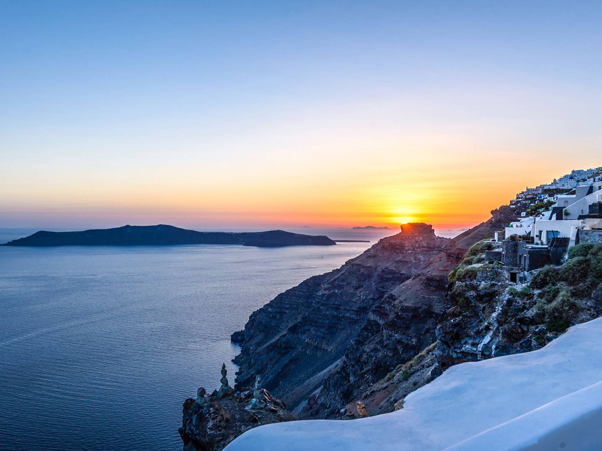 ver másImerovigli Santorini es un pintoresco pueblo al norte de Santorini, a 2 km de la capital de Fira. El nombre de Imerovigli proviene de la palabra vigla que significa punto de vista. La posición del pueblo ofrece una vista clara de la caldera y la hace muy atractiva para los turistas. Aquí encontrará muchas tabernas y cafés con impresionantes vistas a la caldera. Frente a Imerovigli, hay una enorme roca llamada Scaros. Encima se encuentra un castillo del siglo XIII que en el pasado albergó todas las oficinas administrativas de la isla. Esta parte de la isla se derrumbó después de un fuerte terremoto, y solo quedó la colina de Scaros. Imerovigli tiene numerosas capillas e iglesias para exhibir construidas sobre las rocas y con vistas al mar. El pueblo es famoso por ser el destino romántico por excelencia.