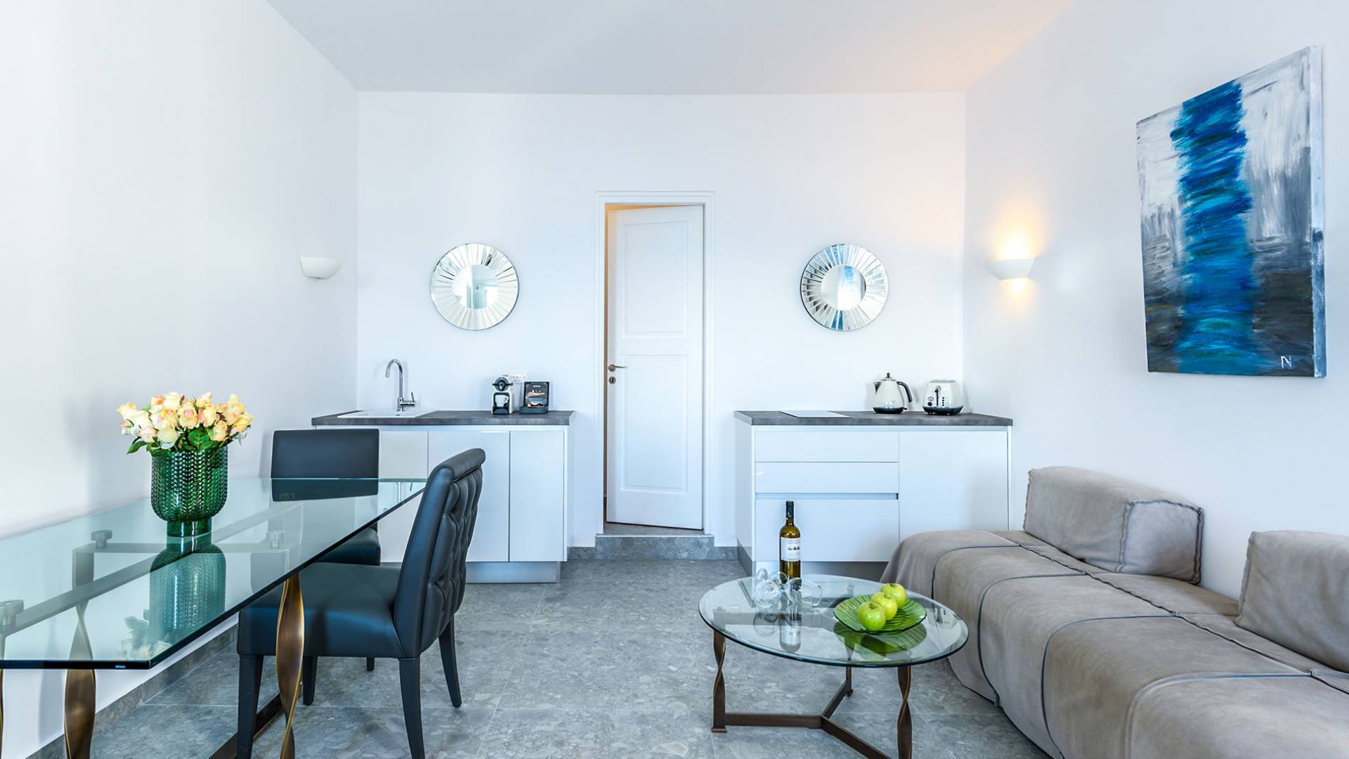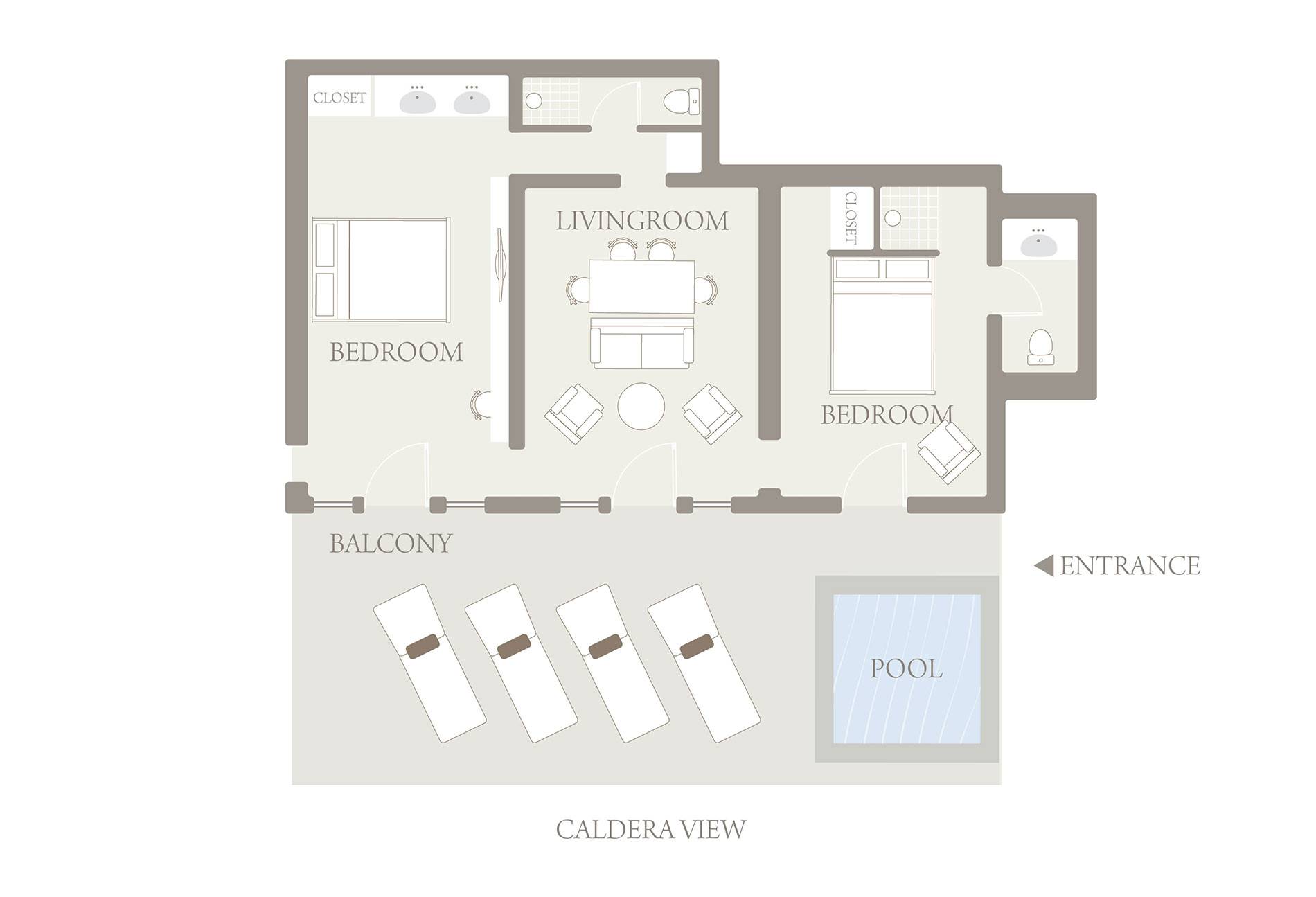 La Villa de dos dormitorios con piscina al aire libre será el lugar perfecto para relajarse en un entorno tranquilo y privado; ofrece espectaculares vistas despejadas al volcán, Skaros Rock y la puesta de sol y un jacuzzi en el balcón. La villa es ideal para familias, ya sea para grupos grandes o pequeños que necesitan un entorno perfecto para reconectarse y disfrutar de una villa a la que puedan llamar hogar, mientras que también es perfecta para una reunión de amigos que deseen reunirse en un escondite de lujo de Imerovigli. Incluye una zona de estar con TV de pantalla plana con canales vía satélite, una cocina con zona de comedor y dos baños privados. También hay microondas, nevera y cafetera.