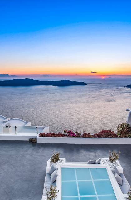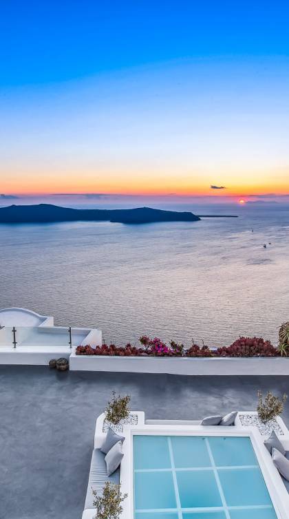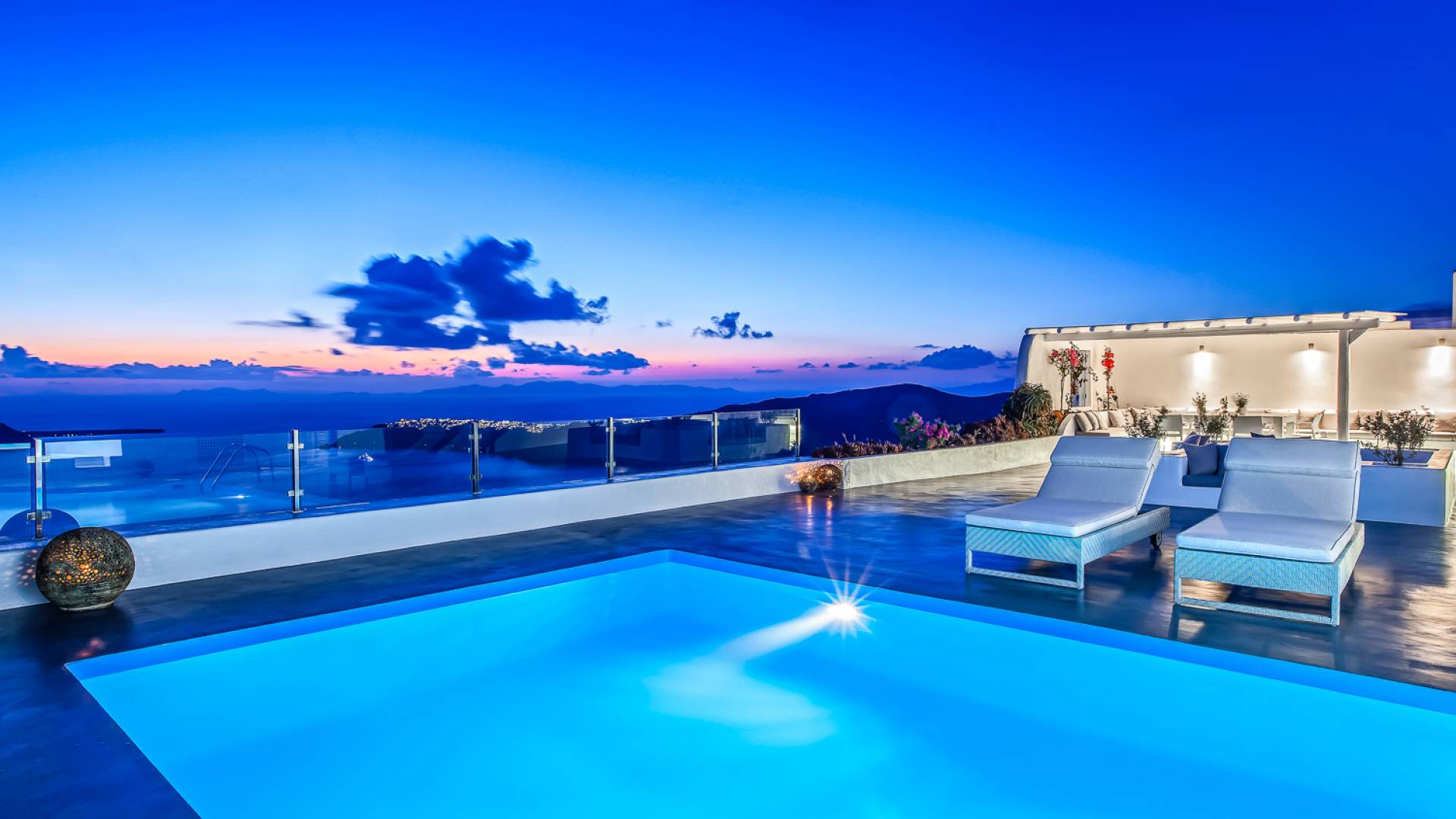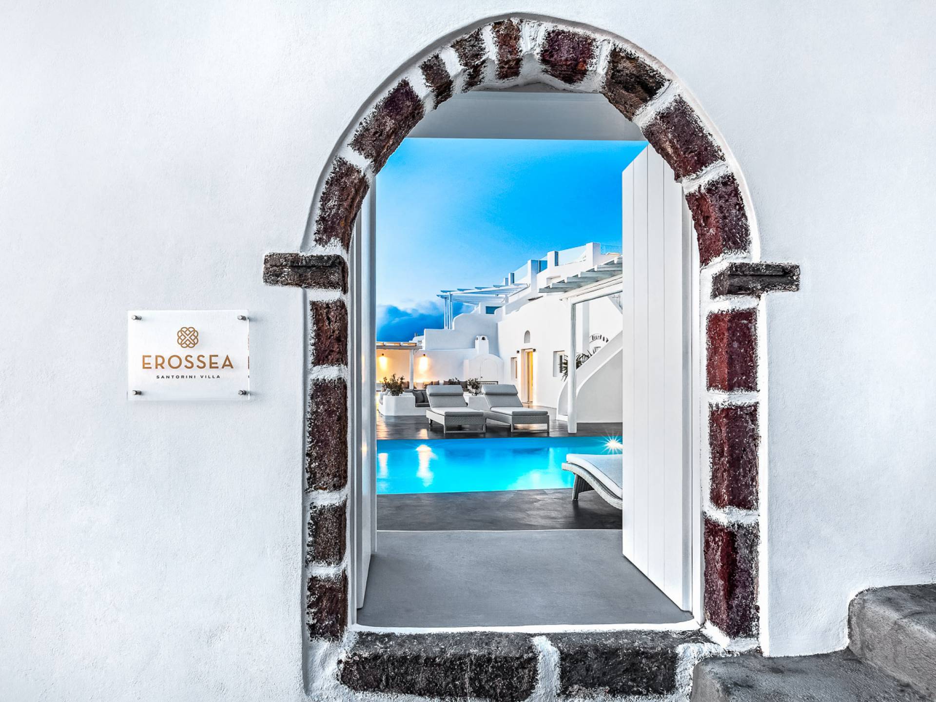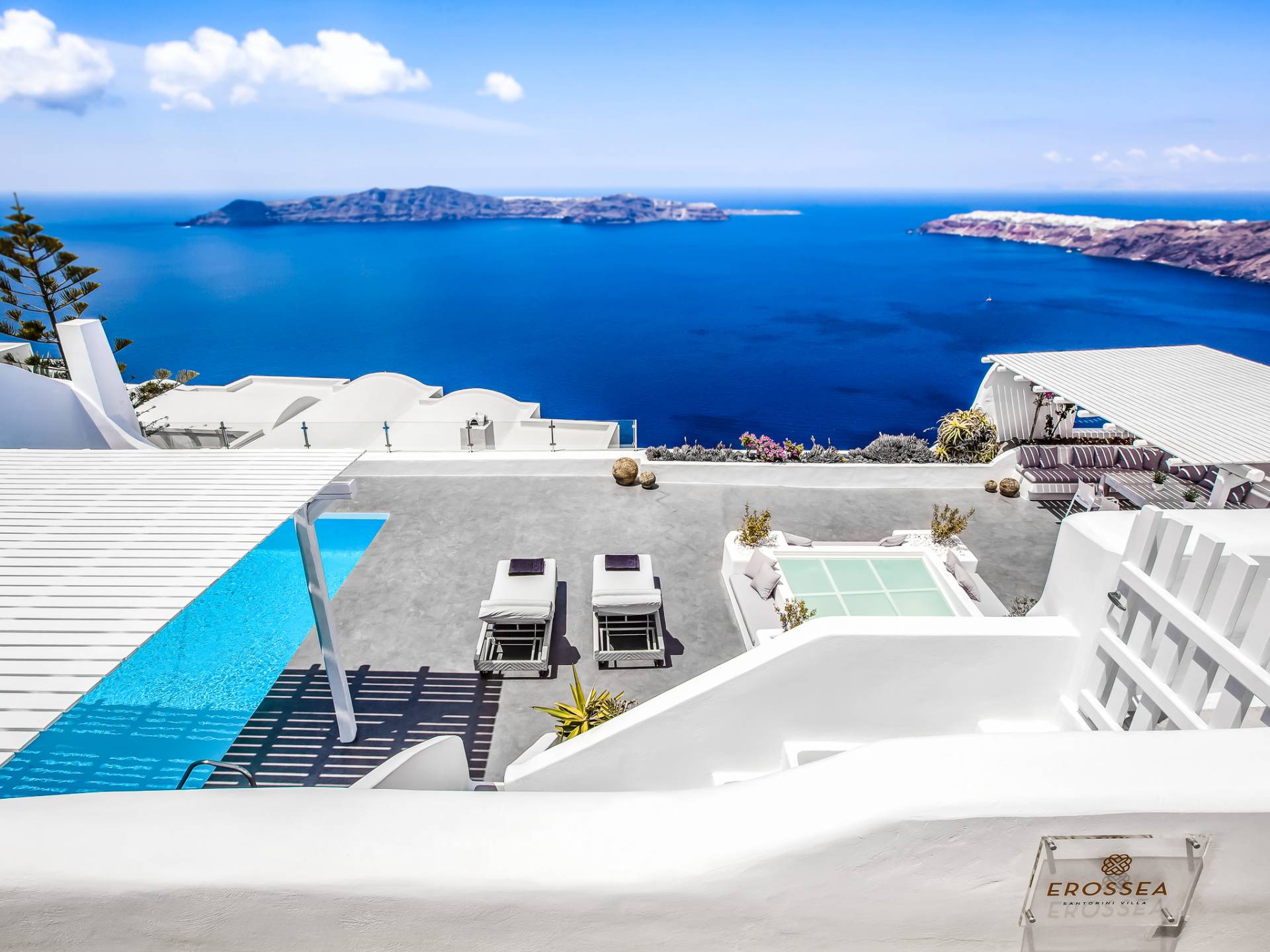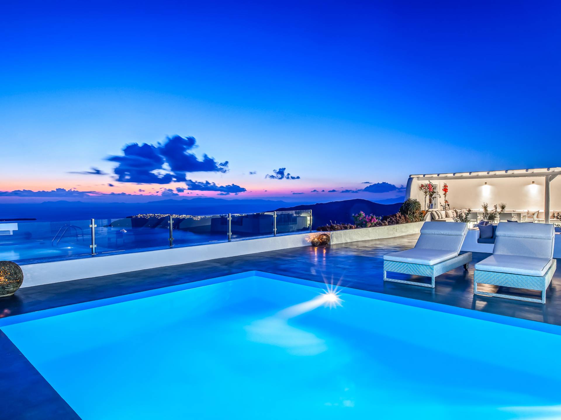 Erossea Villa Level Santorini con piscina privada es una lujosa villa "cueva" recientemente renovada. Propiedad romántica exclusiva con 2 dormitorios y 2 baños en suite. La Villa tiene una ubicación ideal en el punto más alto de la Caldera, rodeada de mar y cielo, y ofrece vistas panorámicas absolutamente impresionantes del mar Egeo y la magnífica experiencia del atardecer en Santorini.