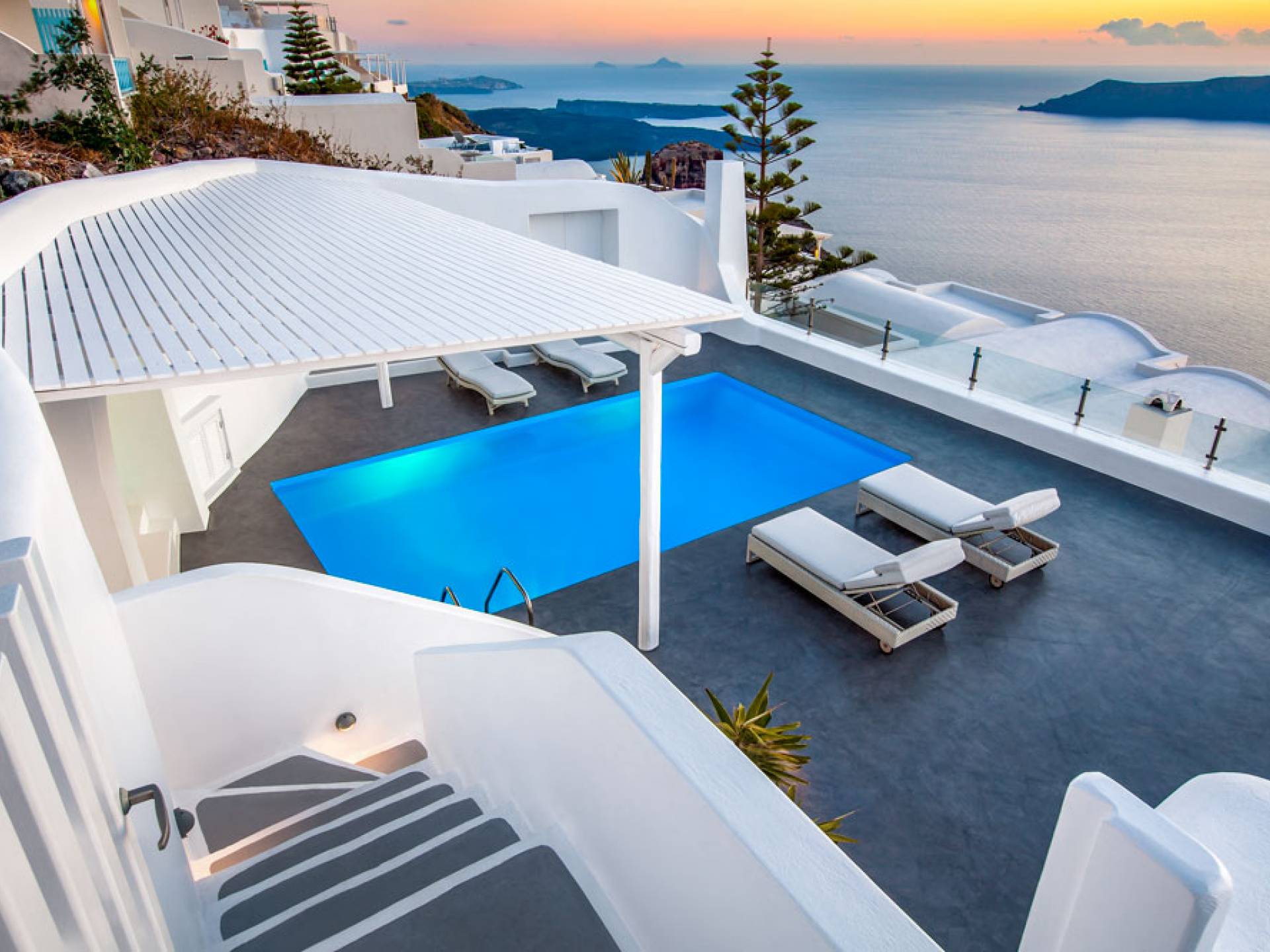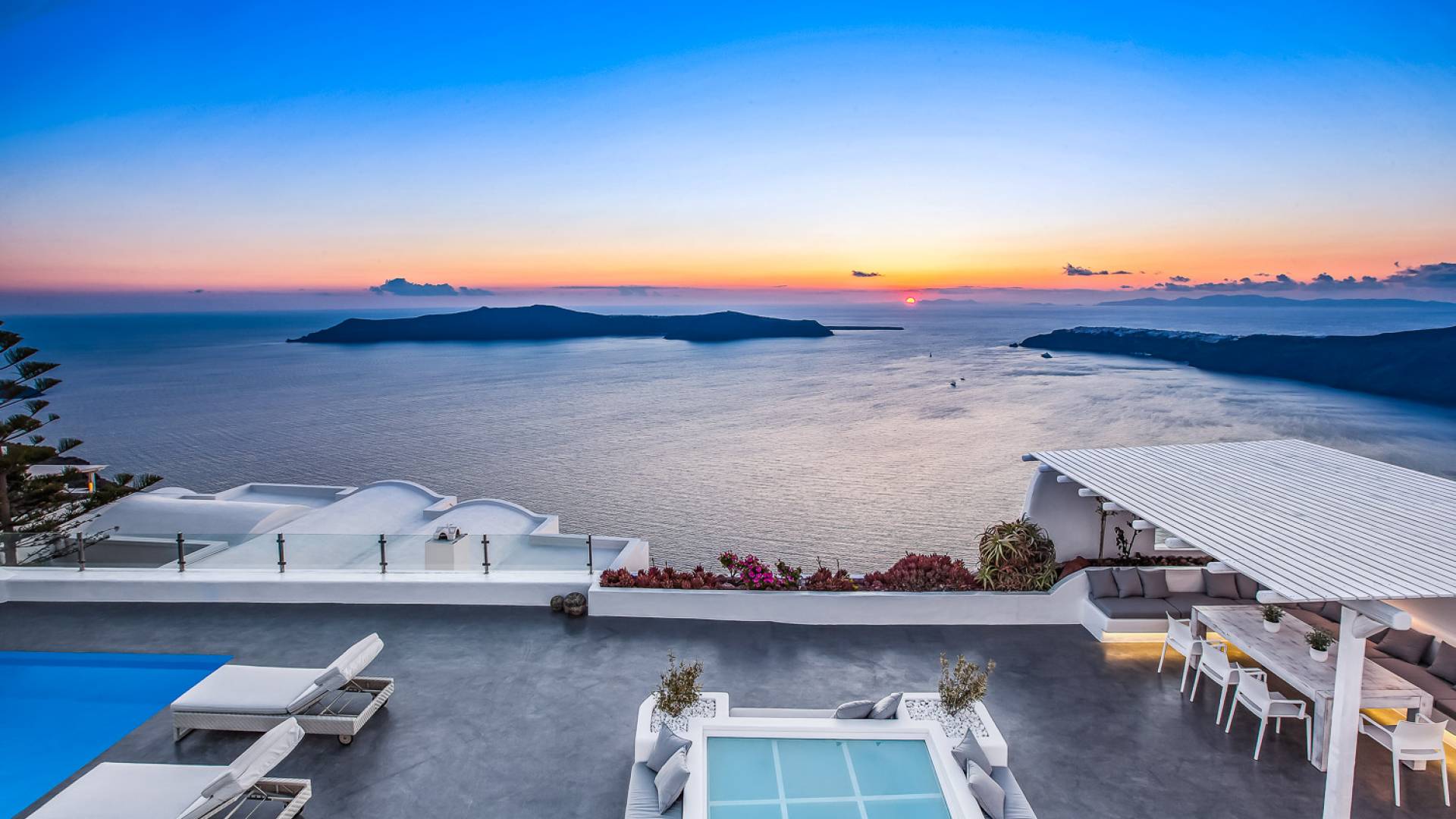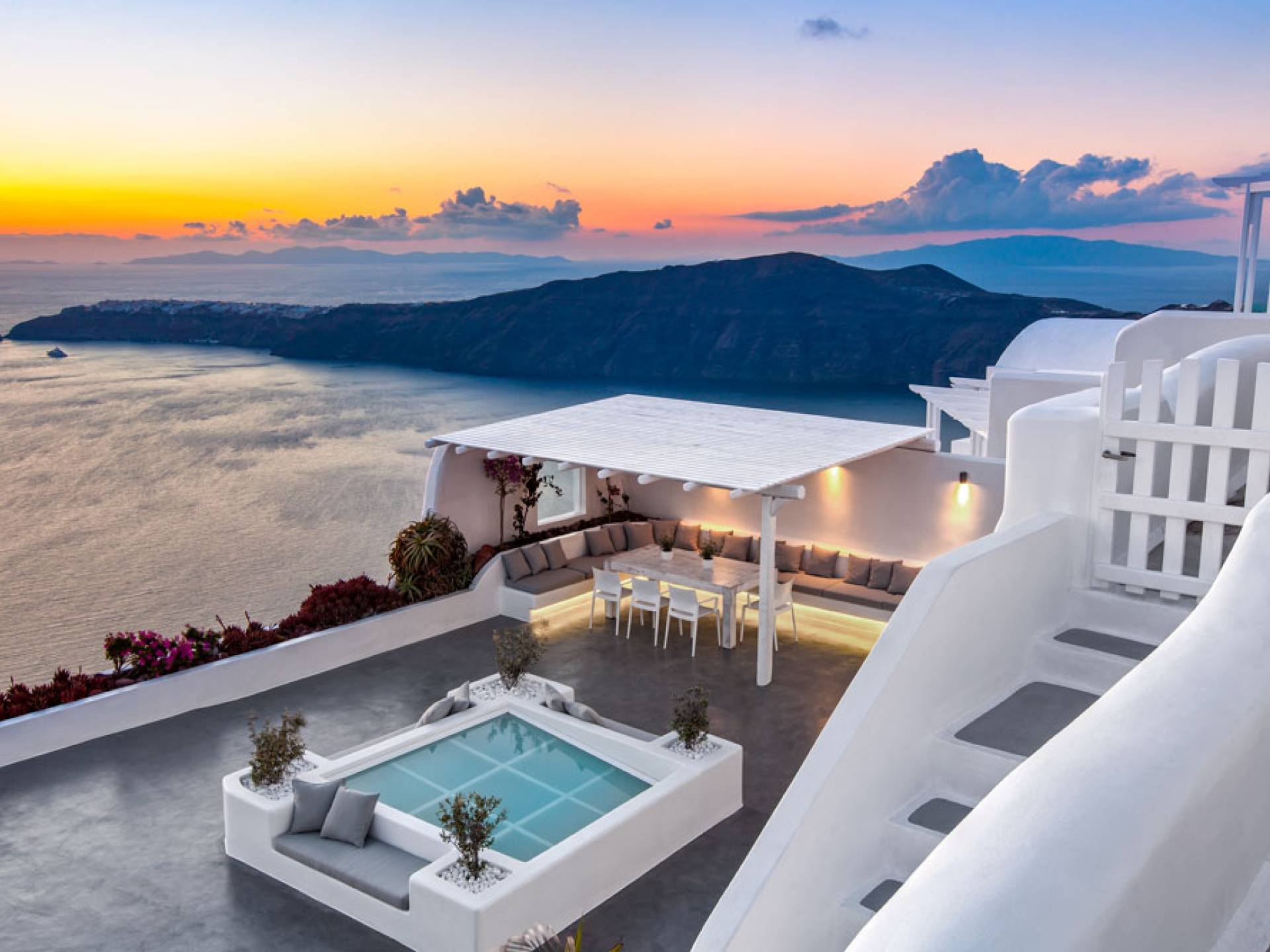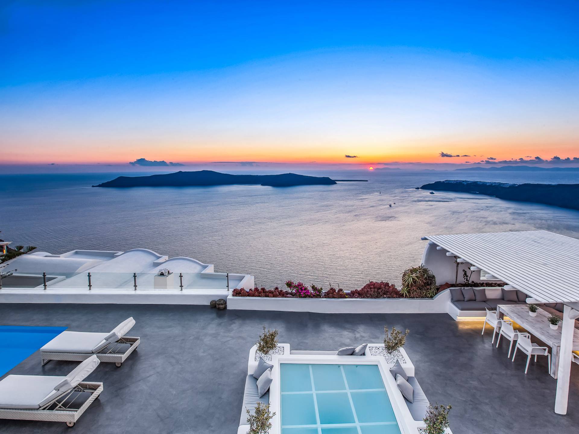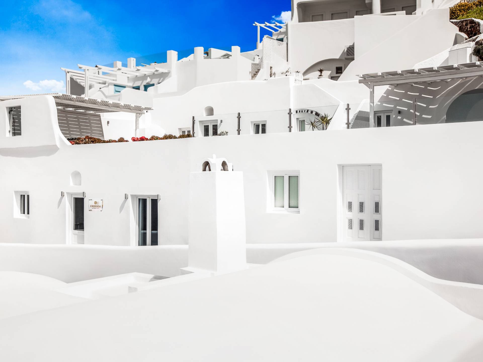 Erossea Villa Level Santorini con piscina privada es una lujosa villa "cueva" recientemente renovada. Propiedad romántica exclusiva con 2 dormitorios y 2 baños en suite. La Villa tiene una ubicación ideal en el punto más alto de la Caldera, rodeada de mar y cielo, y ofrece vistas panorámicas absolutamente impresionantes del mar Egeo y la magnífica experiencia del atardecer en Santorini.