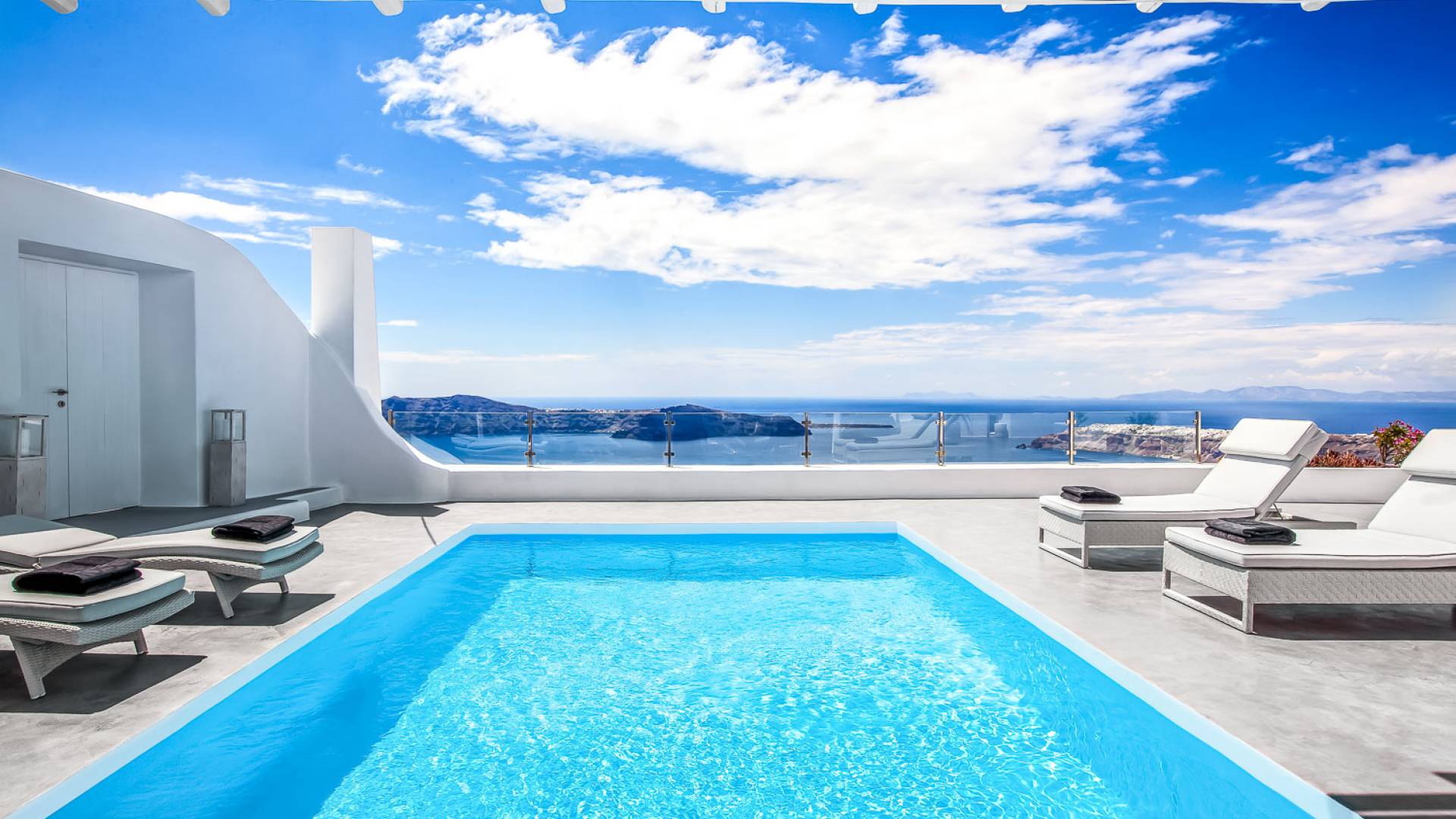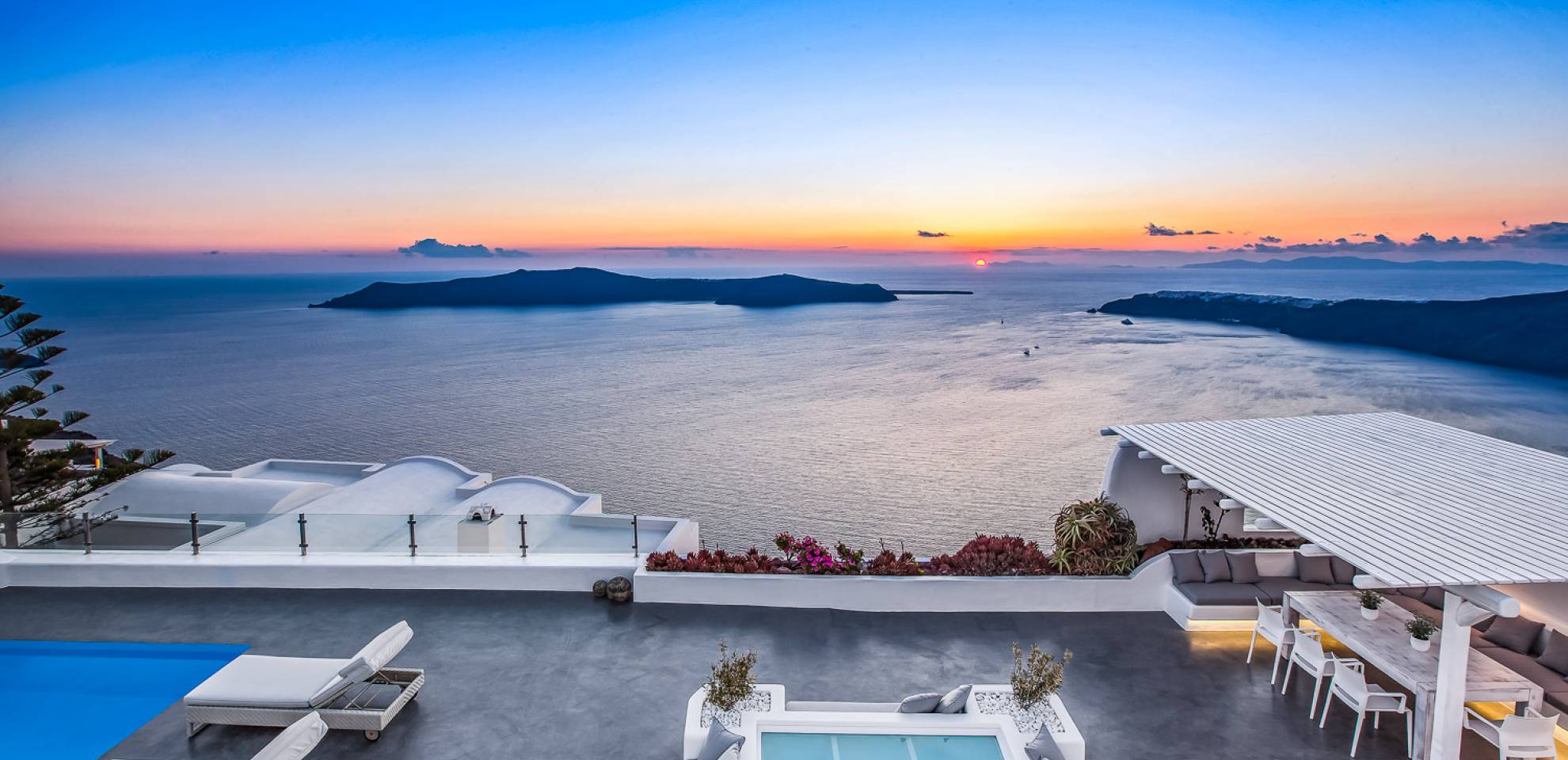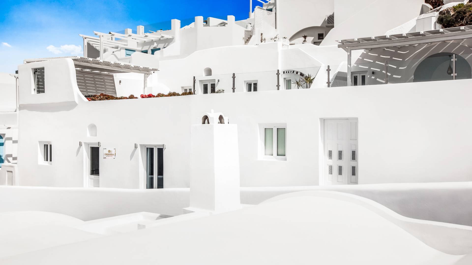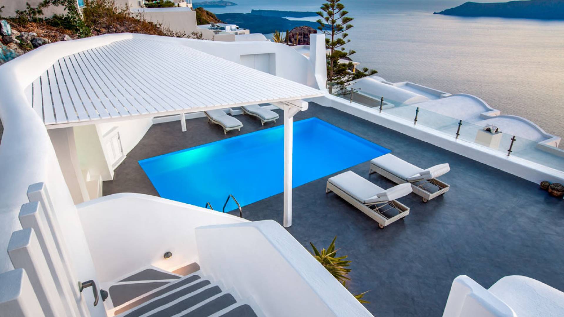 Erossea Villa Level Santorini con piscina privada es una lujosa villa "cueva" recientemente renovada. Propiedad romántica exclusiva con 2 dormitorios y 2 baños en suite. La Villa tiene una ubicación ideal en el punto más alto de la Caldera, rodeada de mar y cielo, y ofrece vistas panorámicas absolutamente impresionantes del mar Egeo y la magnífica experiencia del atardecer en Santorini.