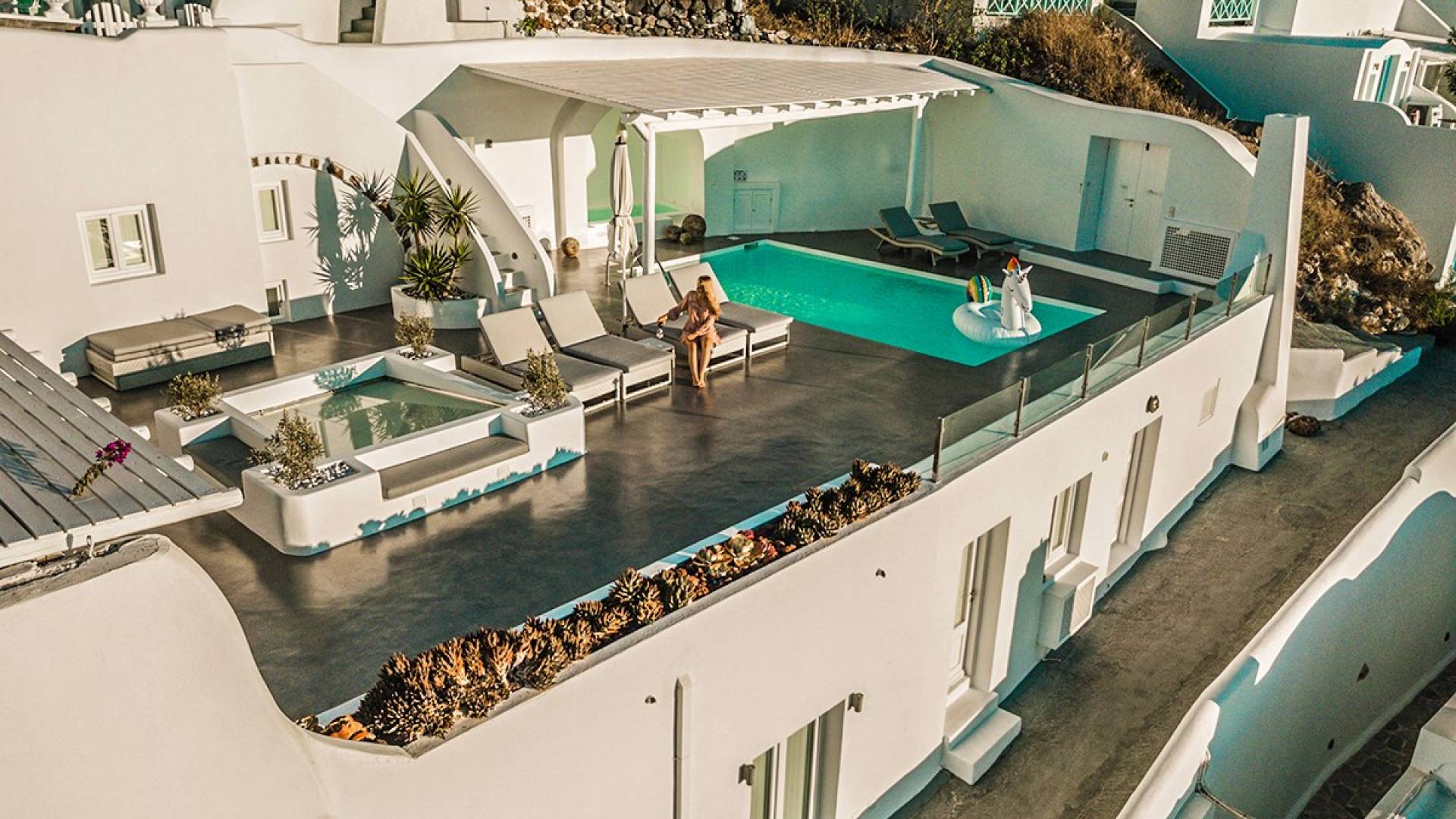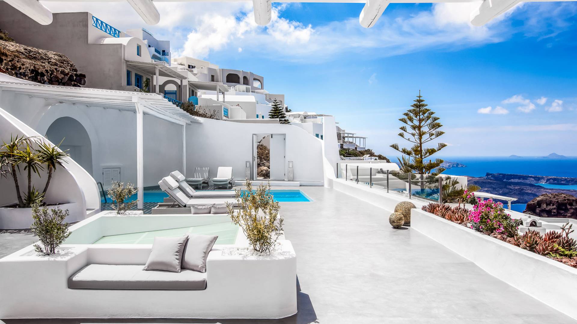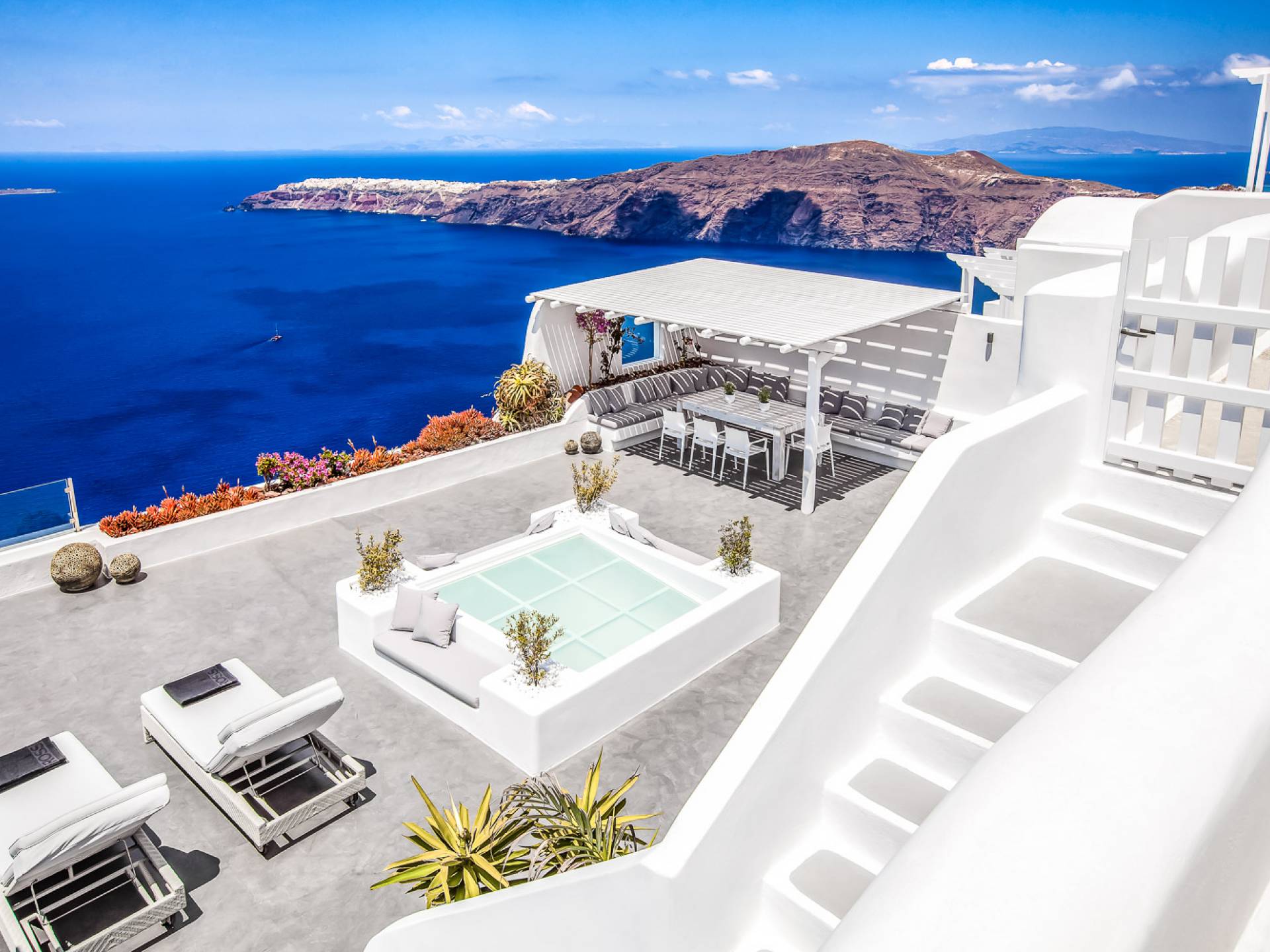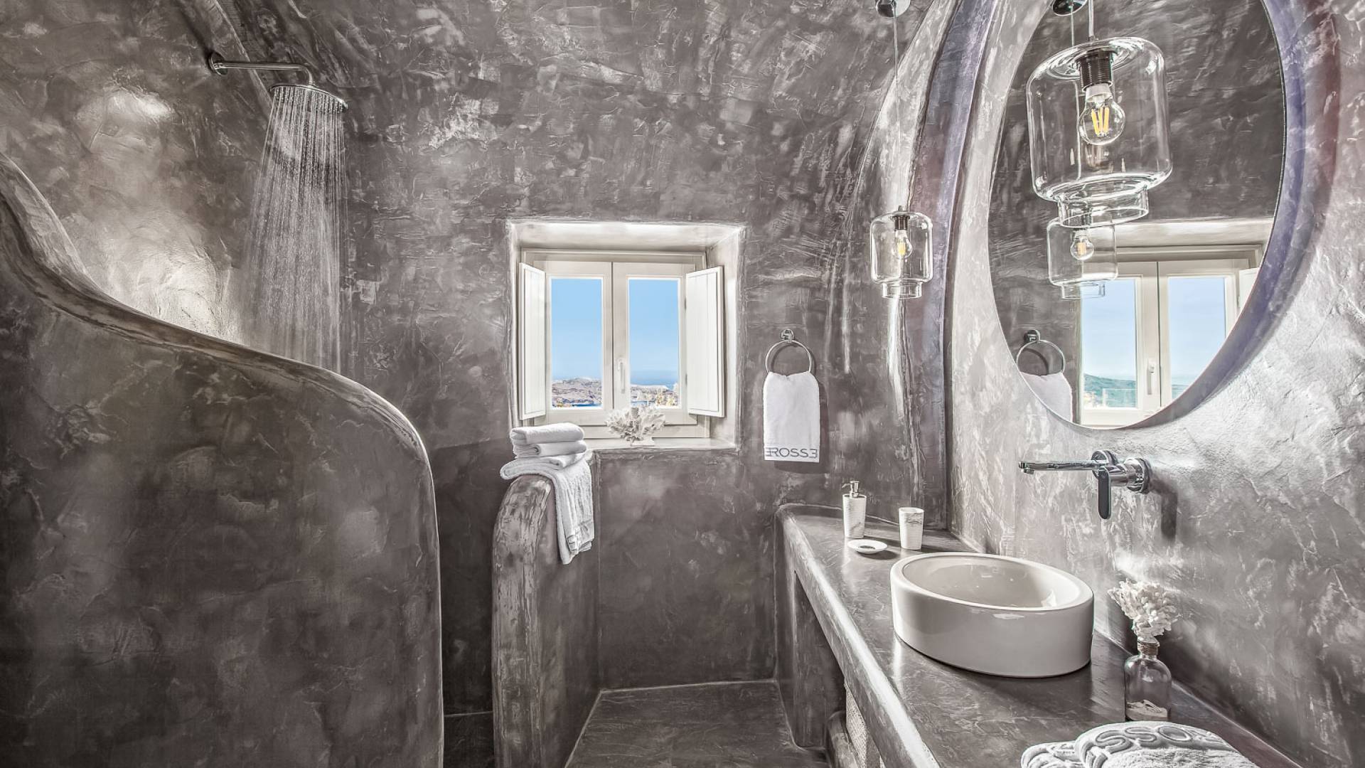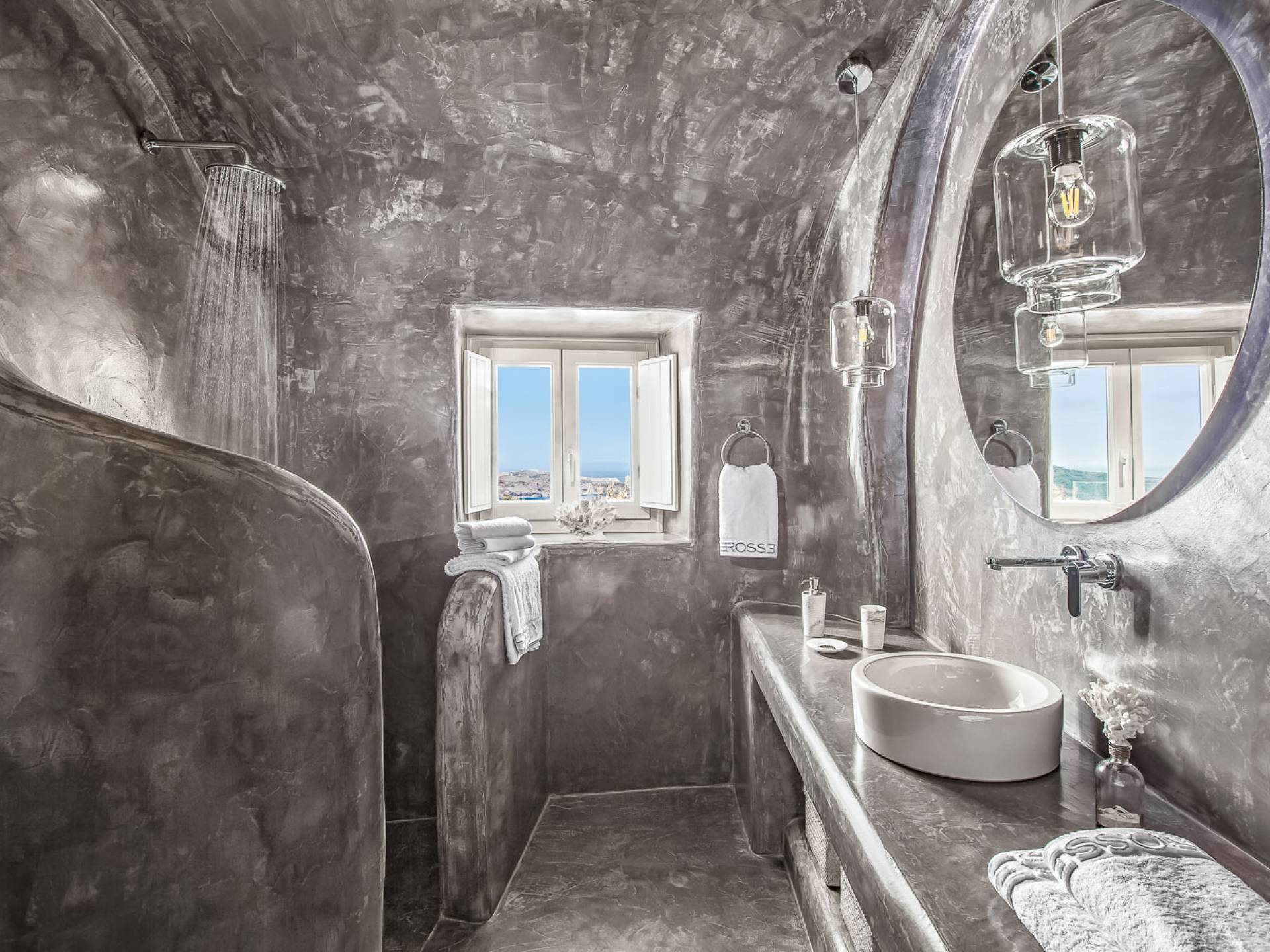 Erossea Villa Level Santorini con piscina privada es una lujosa villa "cueva" recientemente renovada. Propiedad romántica exclusiva con 2 dormitorios y 2 baños en suite. La Villa tiene una ubicación ideal en el punto más alto de la Caldera, rodeada de mar y cielo, y ofrece vistas panorámicas absolutamente impresionantes del mar Egeo y la magnífica experiencia del atardecer en Santorini.