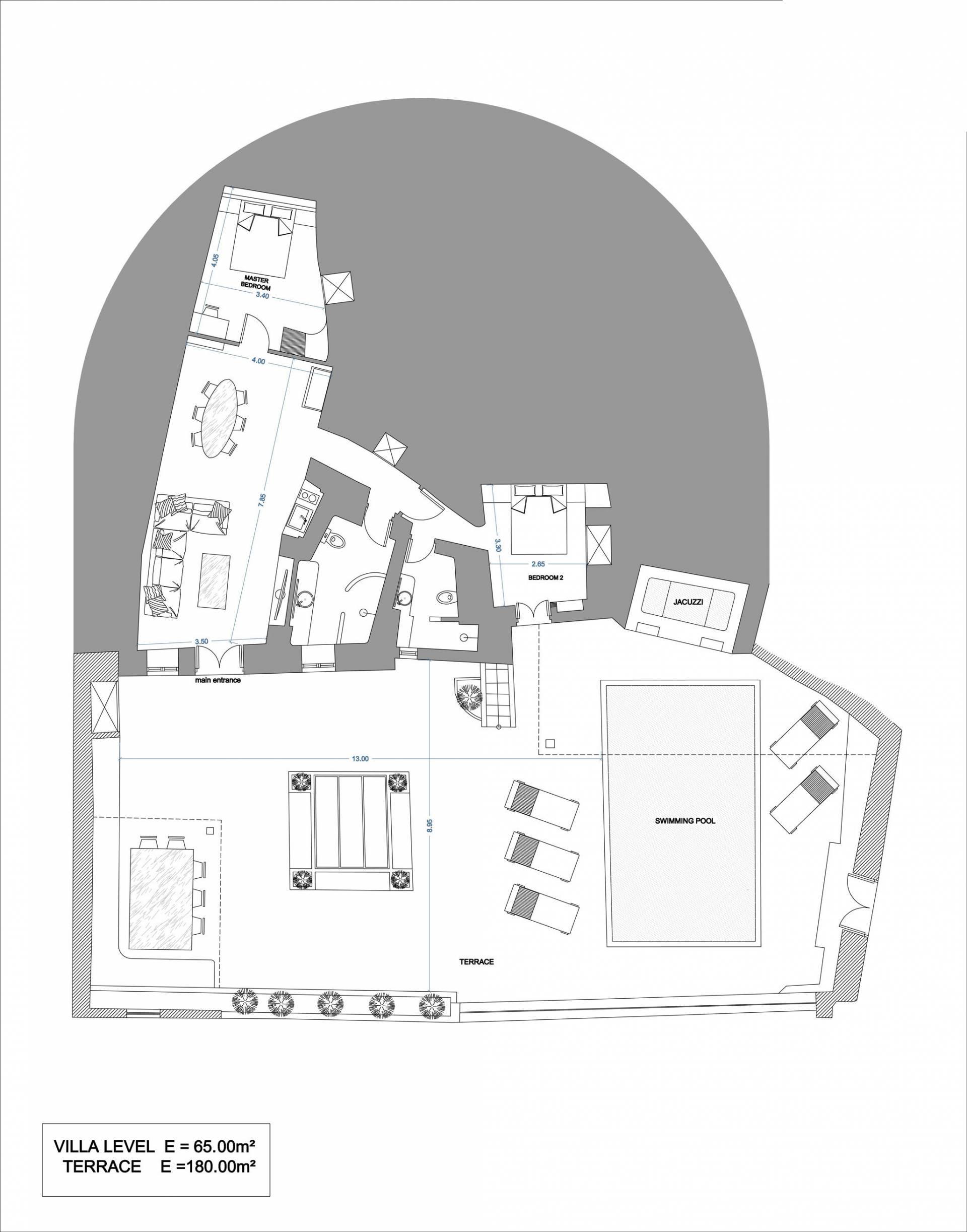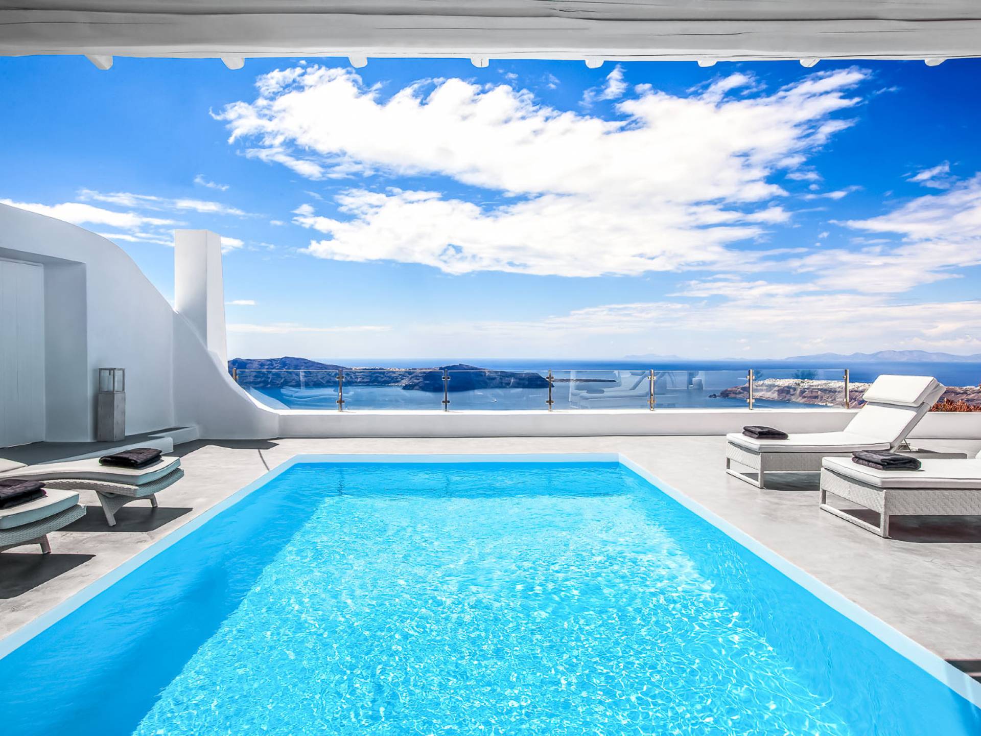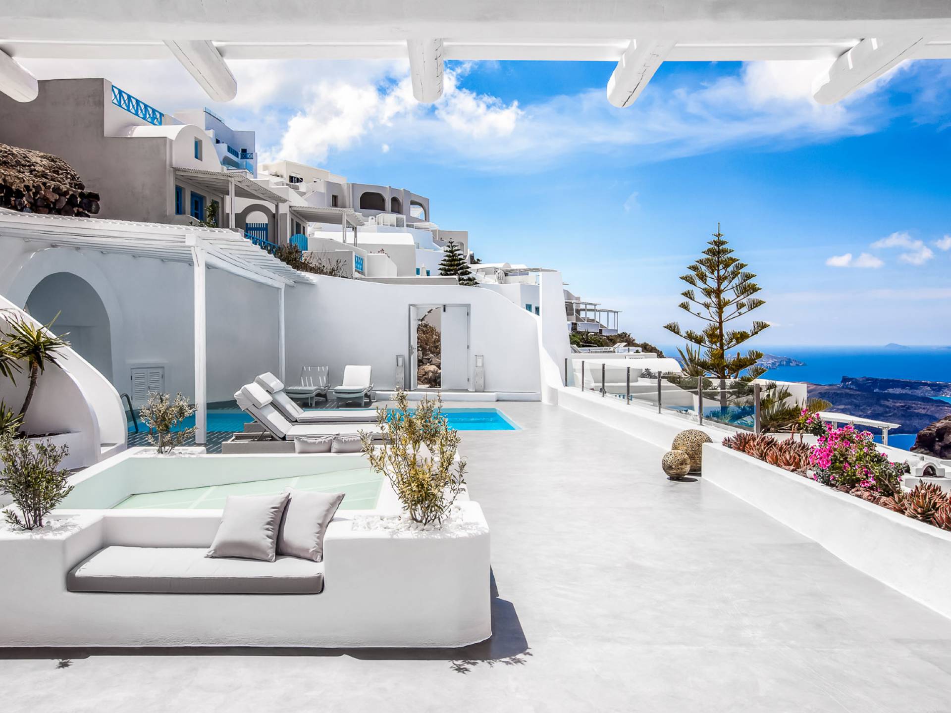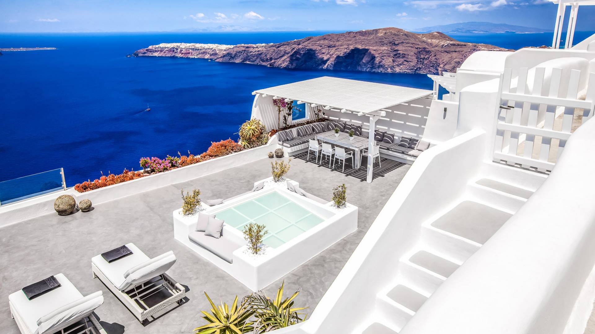 Erossea Villa Level Santorini con piscina privada es una lujosa villa "cueva" recientemente renovada. Propiedad romántica exclusiva con 2 dormitorios y 2 baños en suite. La Villa tiene una ubicación ideal en el punto más alto de la Caldera, rodeada de mar y cielo, y ofrece vistas panorámicas absolutamente impresionantes del mar Egeo y la magnífica experiencia del atardecer en Santorini.