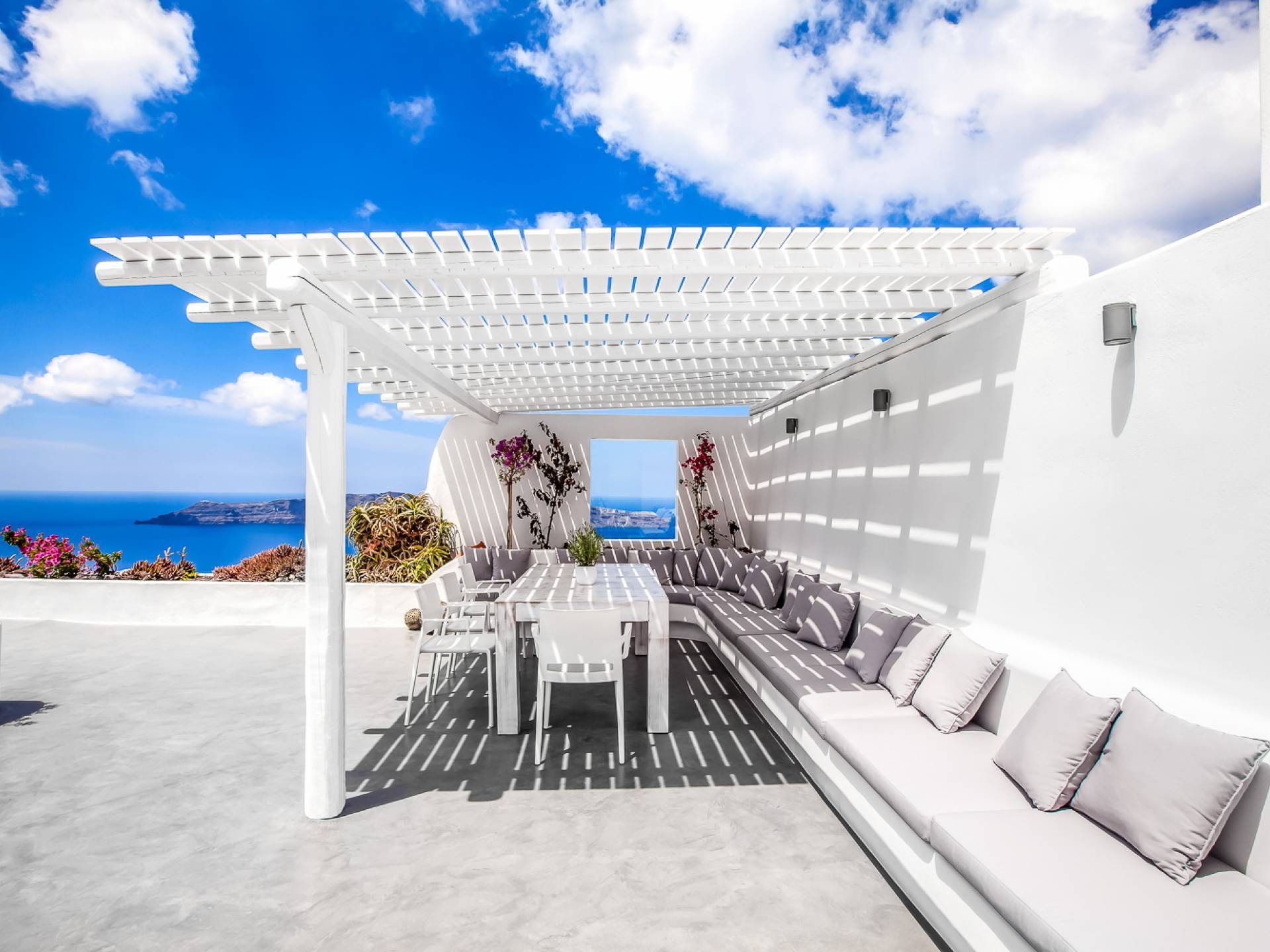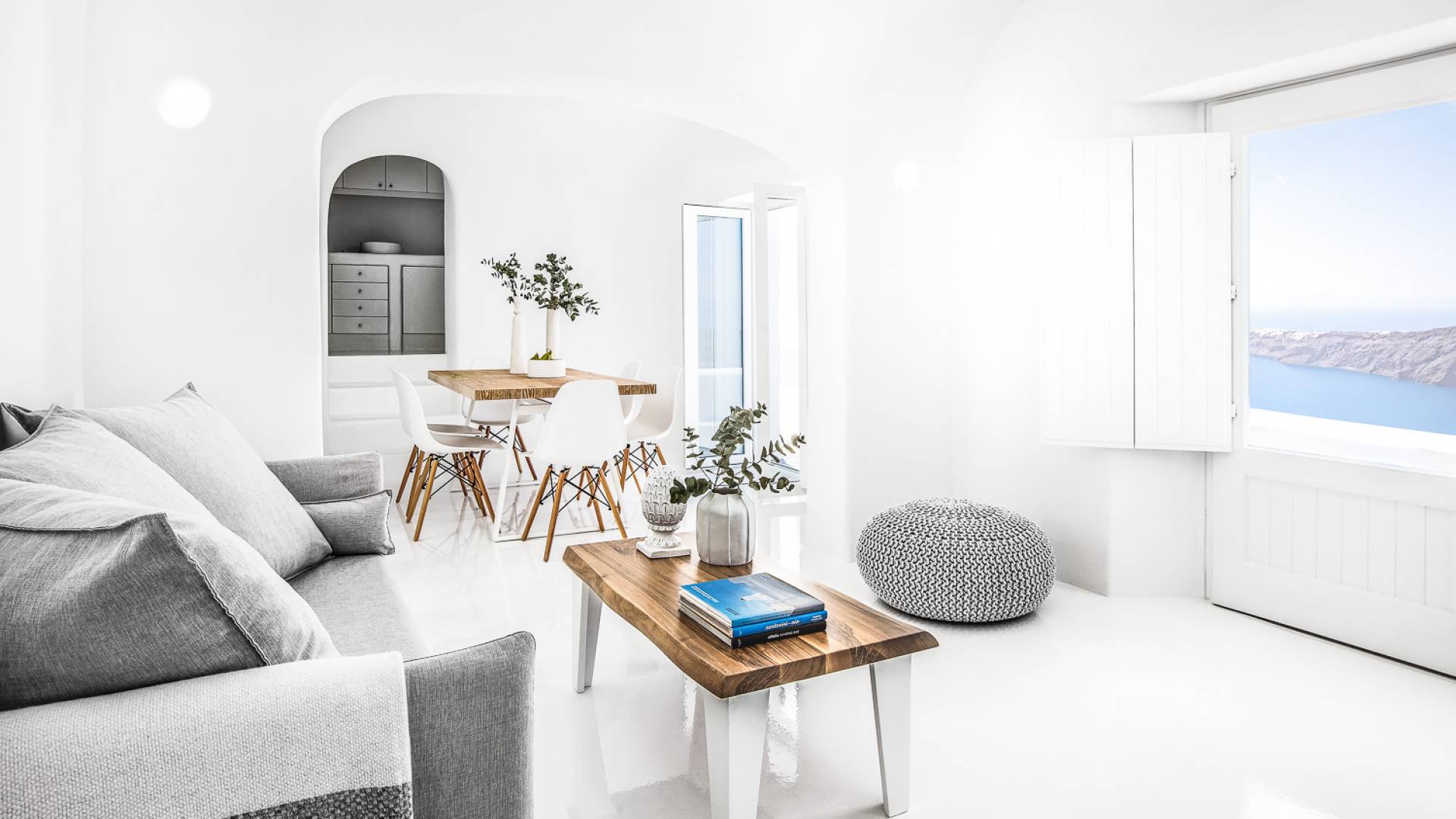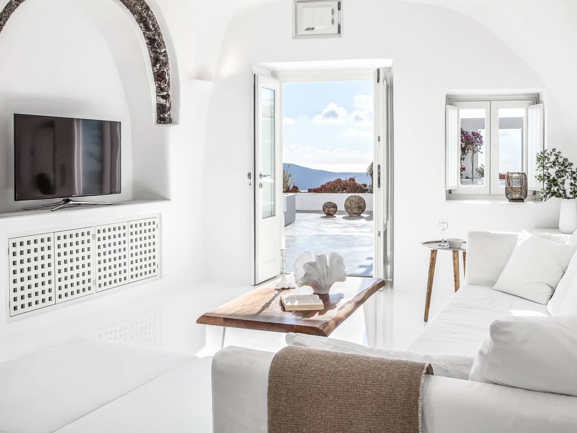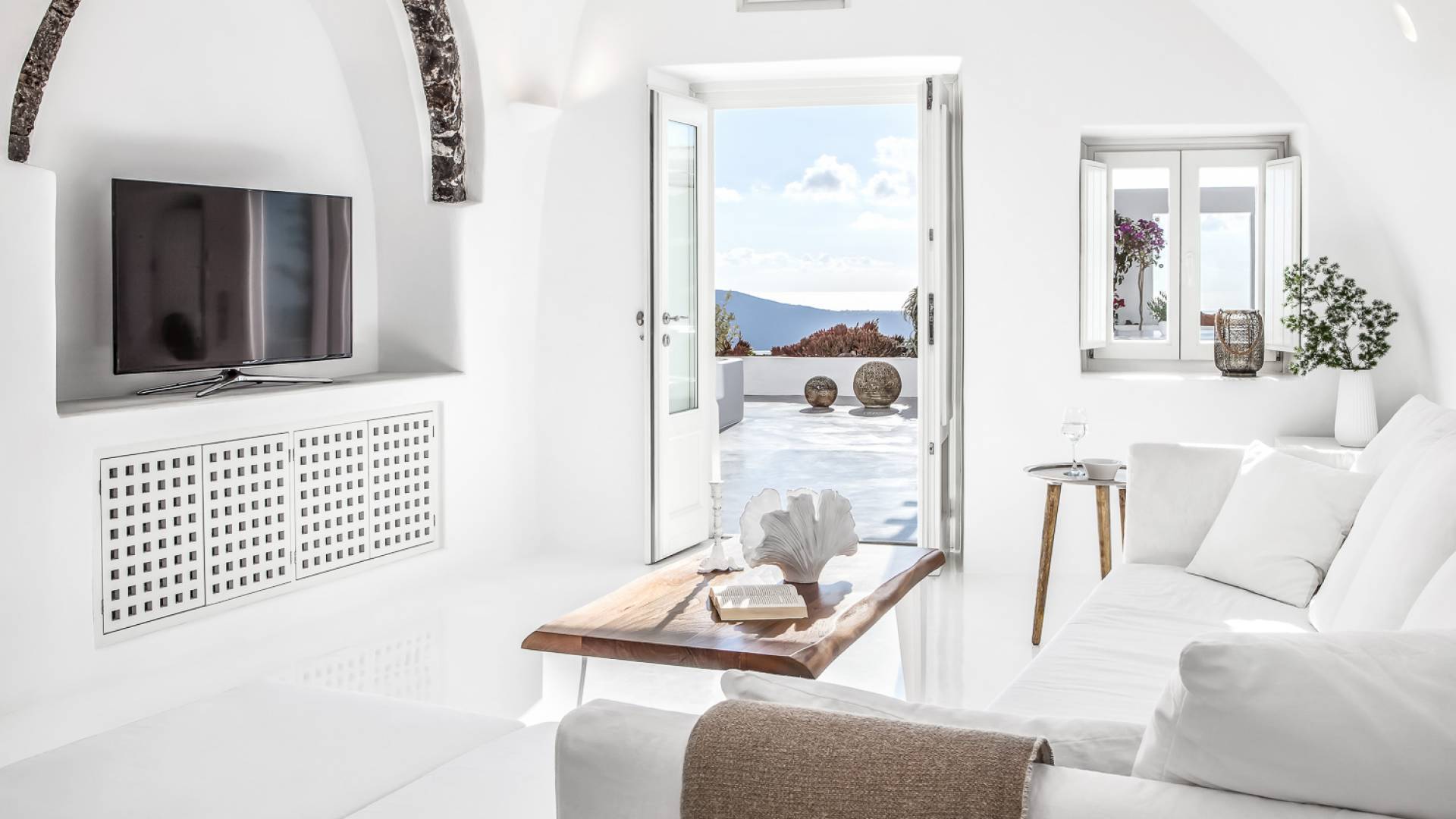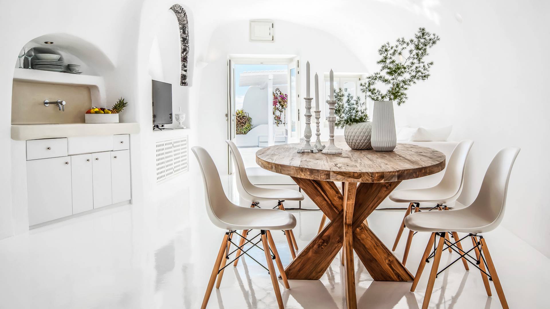 Vive tu mito en el punto más alto de la caldera rodeado de mar y cielo con vistas panorámicas absolutamente impresionantes del mar Egeo y la magnífica experiencia de la puesta de sol de Santorini. Cuenta con una amplia sala de estar con comedor para hasta 6 personas, una cocina pequeña de planta abierta y dos dormitorios principales con baños en suite con ducha de lluvia. El paisaje tranquilo de la Villa es relajante y pacífico, cautivándolo con la energía empoderadora de la isla que lo vigorizará y recargará y al mismo tiempo ofrecerá un ambiente acogedor y "como en casa" durante su estadía.