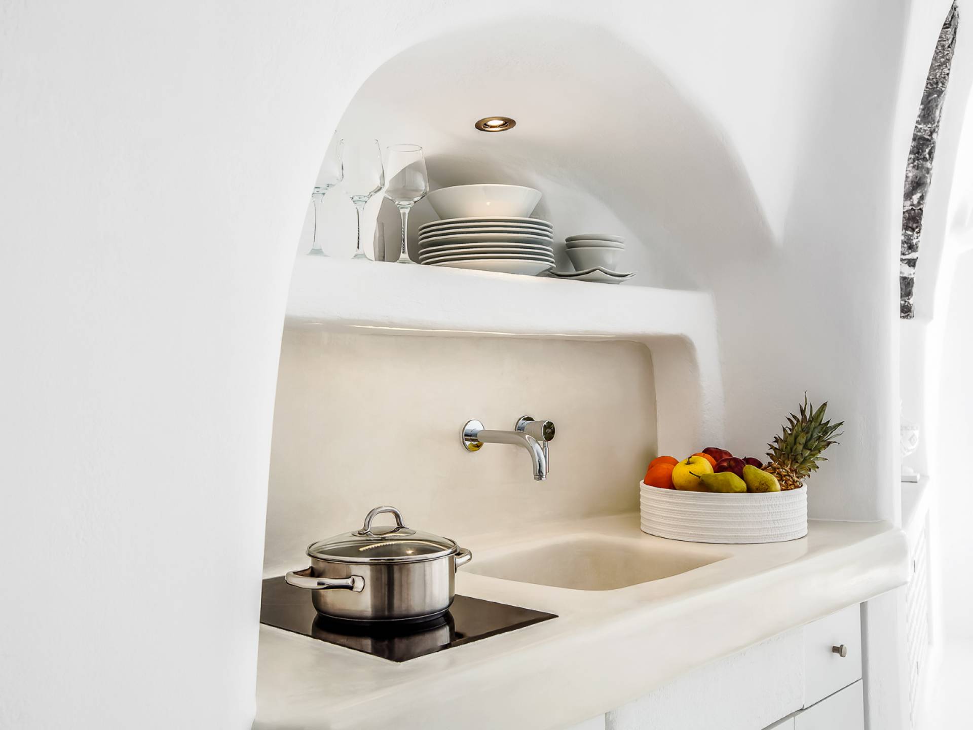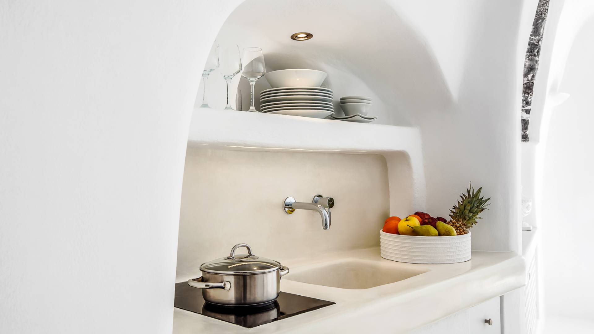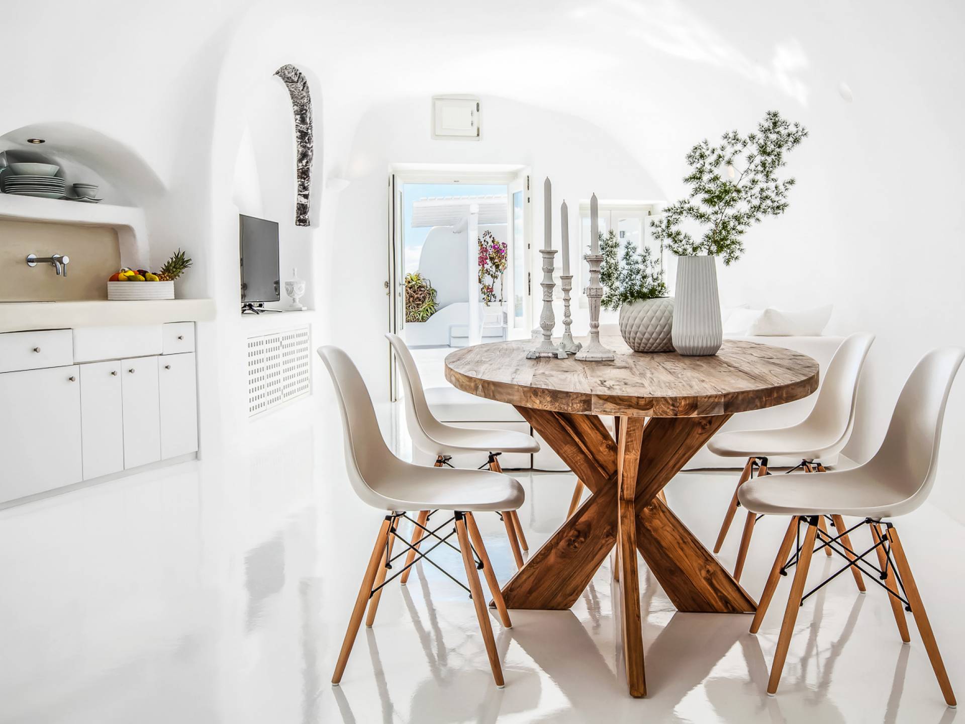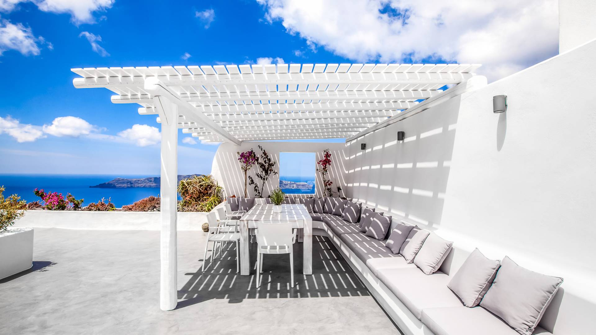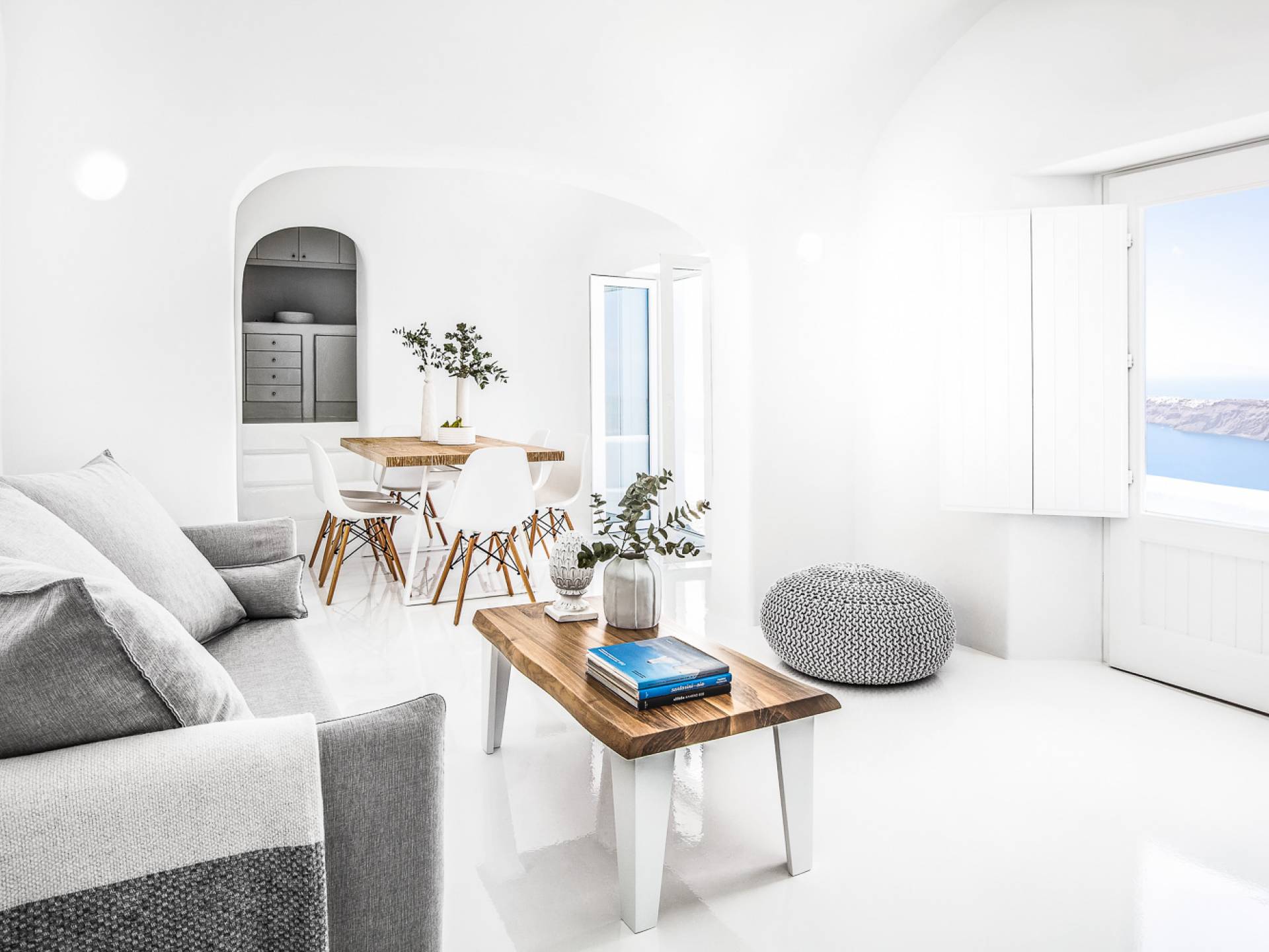 Vive tu mito en el punto más alto de la caldera rodeado de mar y cielo con vistas panorámicas absolutamente impresionantes del mar Egeo y la magnífica experiencia de la puesta de sol de Santorini. Cuenta con una amplia sala de estar con comedor para hasta 6 personas, una cocina pequeña de planta abierta y dos dormitorios principales con baños en suite con ducha de lluvia. El paisaje tranquilo de la Villa es relajante y pacífico, cautivándolo con la energía empoderadora de la isla que lo vigorizará y recargará y al mismo tiempo ofrecerá un ambiente acogedor y "como en casa" durante su estadía.