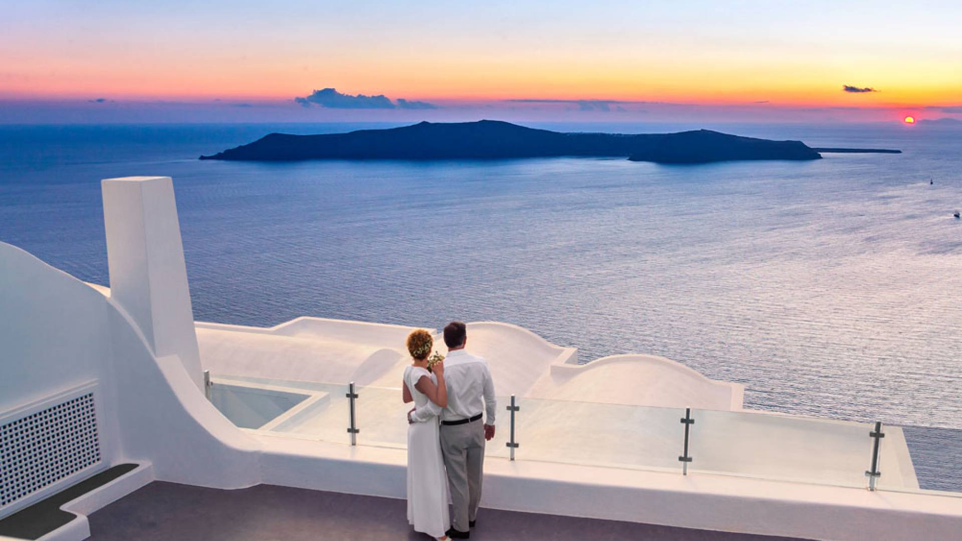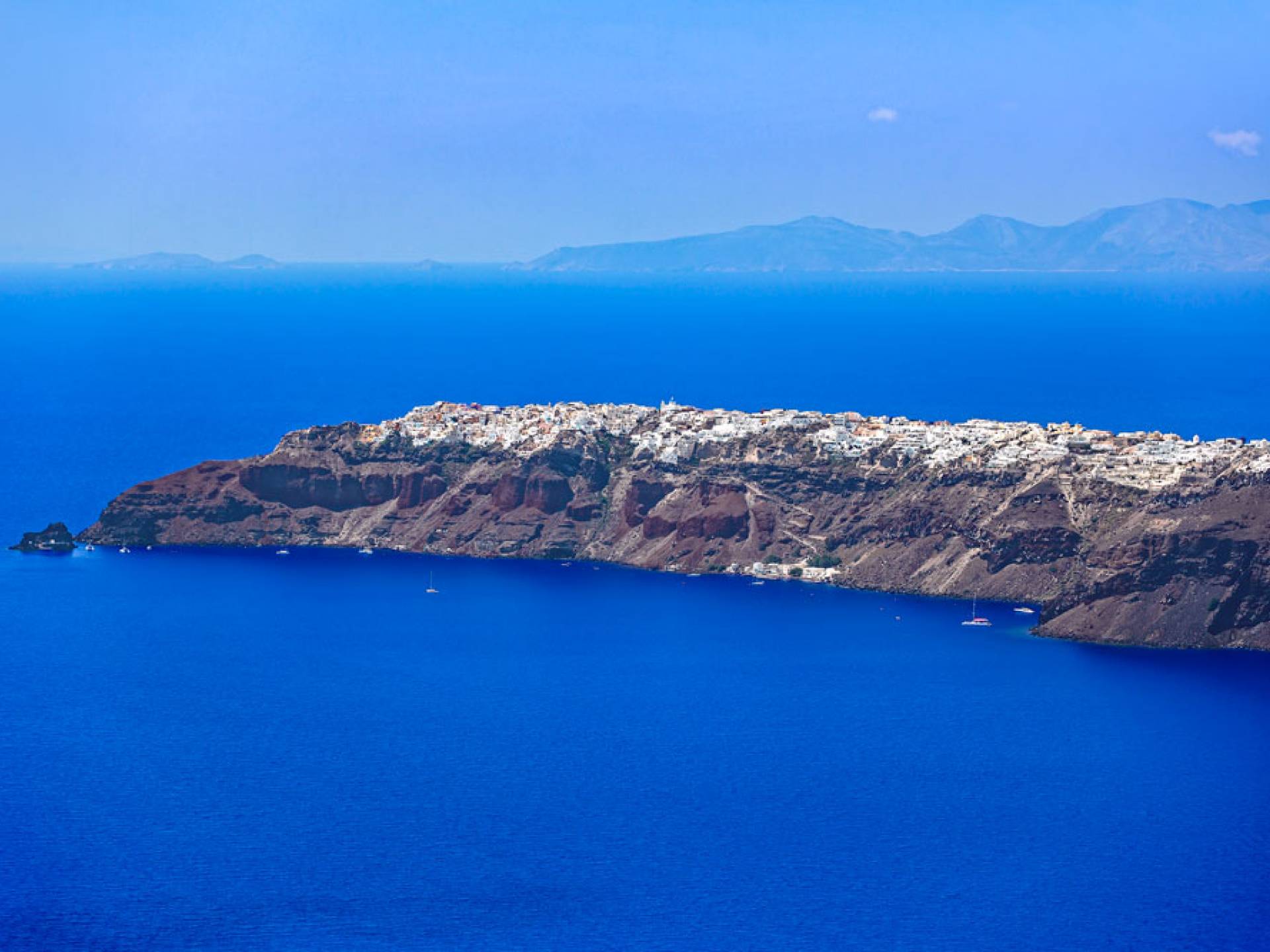 Imerovigli Santorini es un pintoresco pueblo al norte de Santorini, a 2 km de la capital de Fira. El nombre de Imerovigli proviene de la palabra vigla que significa punto de vista. La posición del pueblo ofrece una vista clara de la caldera y la hace muy atractiva para los turistas. Aquí encontrará muchas tabernas y cafés con impresionantes vistas a la caldera. Frente a Imerovigli, hay una enorme roca llamada Scaros. Encima se encuentra un castillo del siglo XIII que en el pasado albergó todas las oficinas administrativas de la isla. Esta parte de la isla se derrumbó después de un fuerte terremoto, y solo quedó la colina de Scaros. Imerovigli tiene numerosas capillas e iglesias para exhibir construidas sobre las rocas y con vistas al mar. El pueblo es famoso por ser el destino romántico por excelencia.