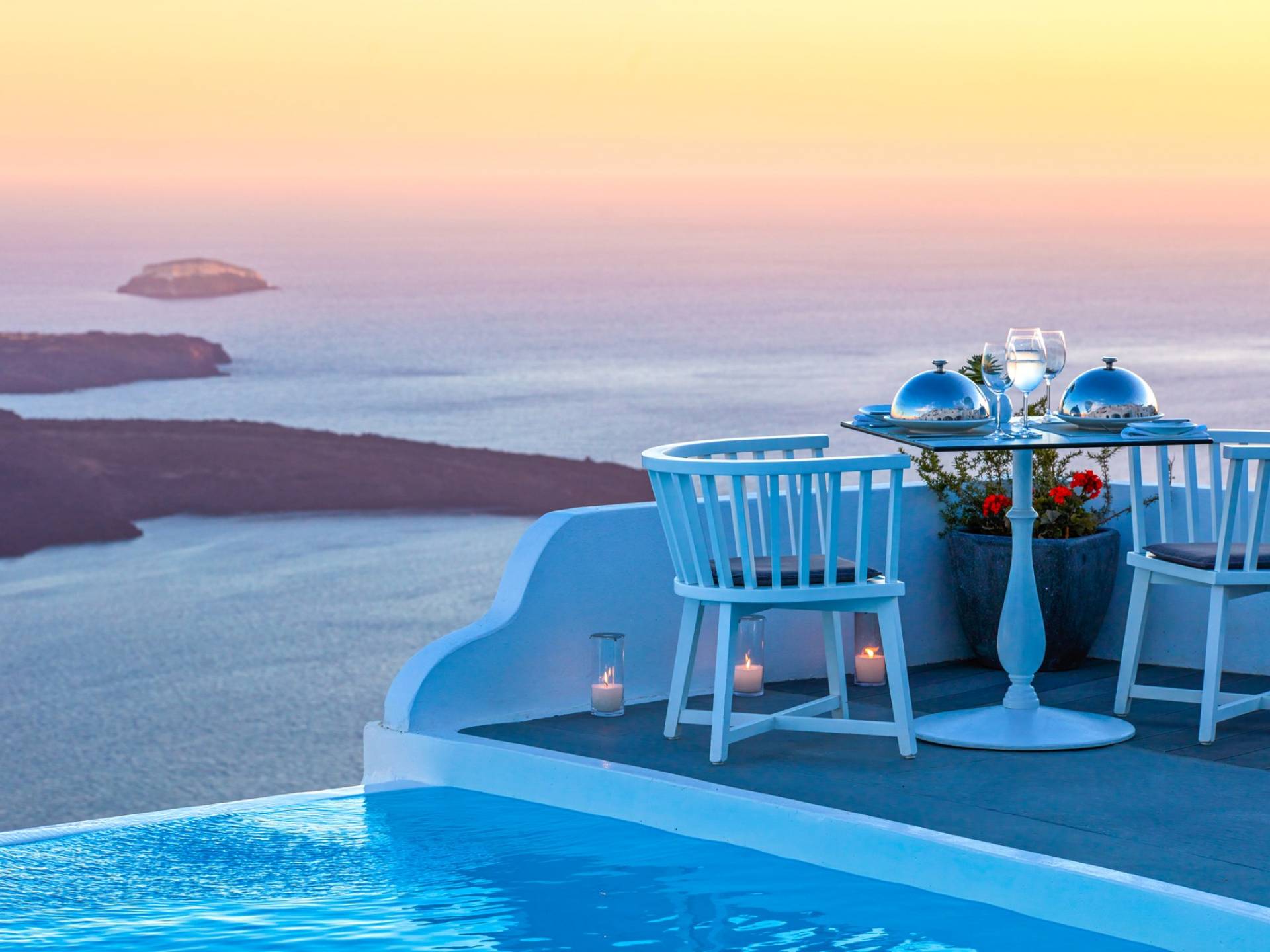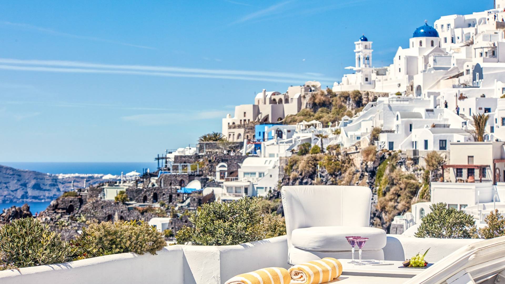 Ubicada en el borde de la Caldera, la imagen de postal más emblemática tanto en las Cícladas como en toda Grecia, Chromata, Santorini combina sin esfuerzo una sensación de glamour, herencia, lujo, comodidades modernas y servicios altamente personalizados, y por lo tanto, es uno de los hoteles de 5 estrellas más famosos de Santorini.