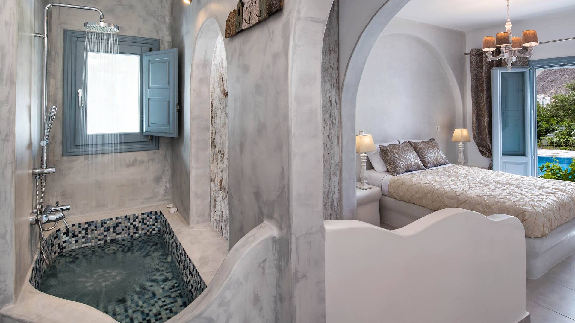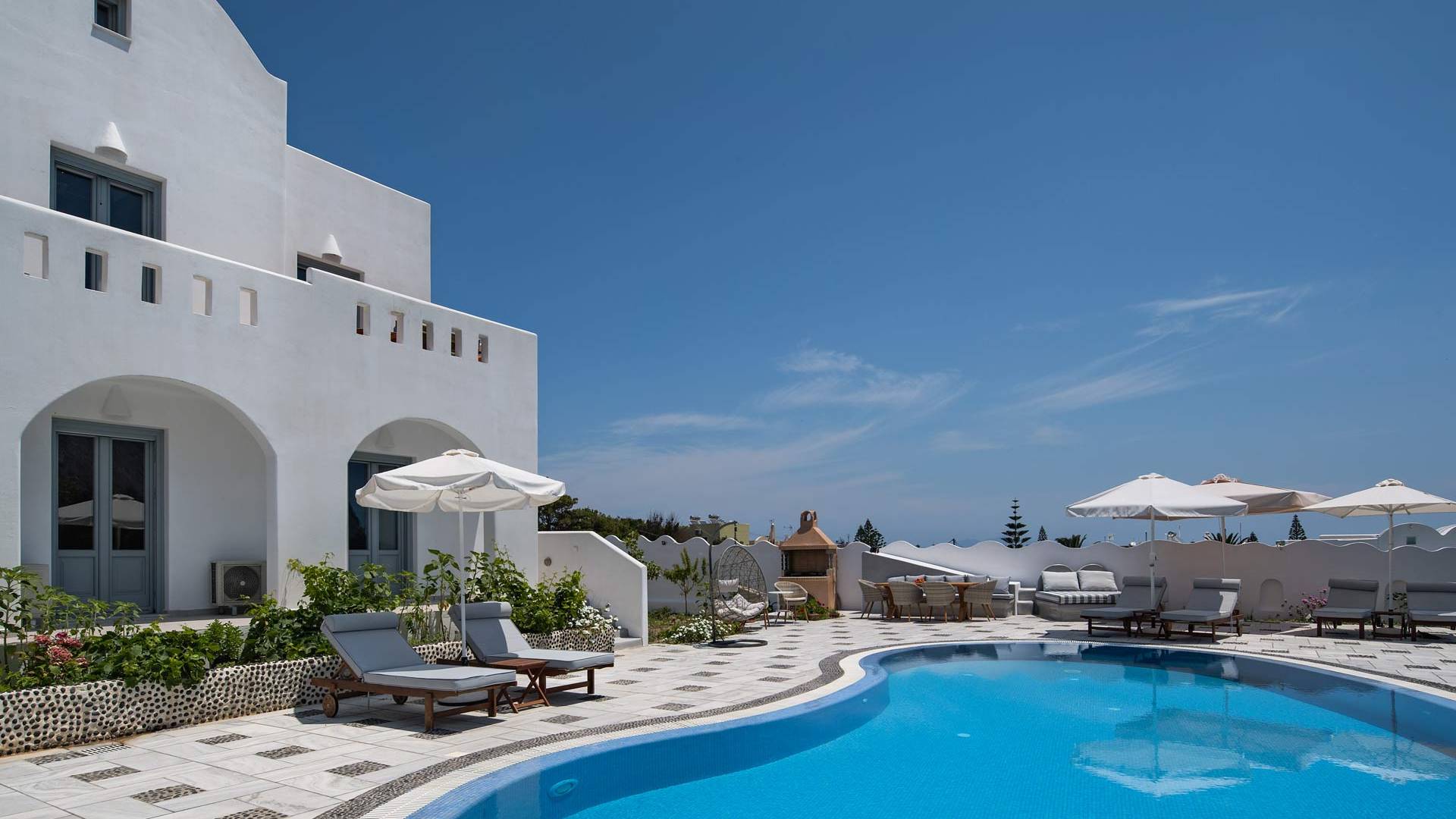 Felicity Villas Santorini es elegante, luminosa y tradicional y ocupa 102 metros cuadrados. rodeado por un jardín fructífero y bendecido con vistas al mar y la montaña en el atractivo pueblo costero de Santorini, Kamari. Felicity Villas Santorini ofrece a nuestros huéspedes privilegios exclusivos, tratamientos de lujo y servicios personalizados inigualables para garantizar que disfruten de los mayores beneficios tanto para el alojamiento como para la mágica isla de Santorini.