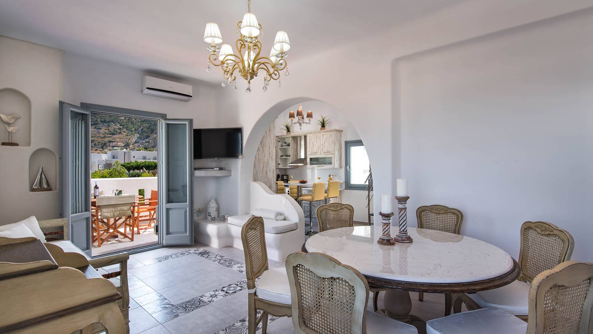 Sala de estar: El comedor / sala de estar es de planta abierta a la cocina, gran mesa de comedor, sillas, sofás, Smart TV con satélite, DVD, cd / radio y mesa de café. La terraza tiene un salón para relajarse y cenar. Cocina: Cocina totalmente equipada con accesorios de lujo, estufa, horno, extractor, campana extractora, fregadero, lavavajillas, nevera / congelador, microondas, hervidor, tostadora y cafetera. Gama completa de utensilios de cocina, vajilla y cubertería.