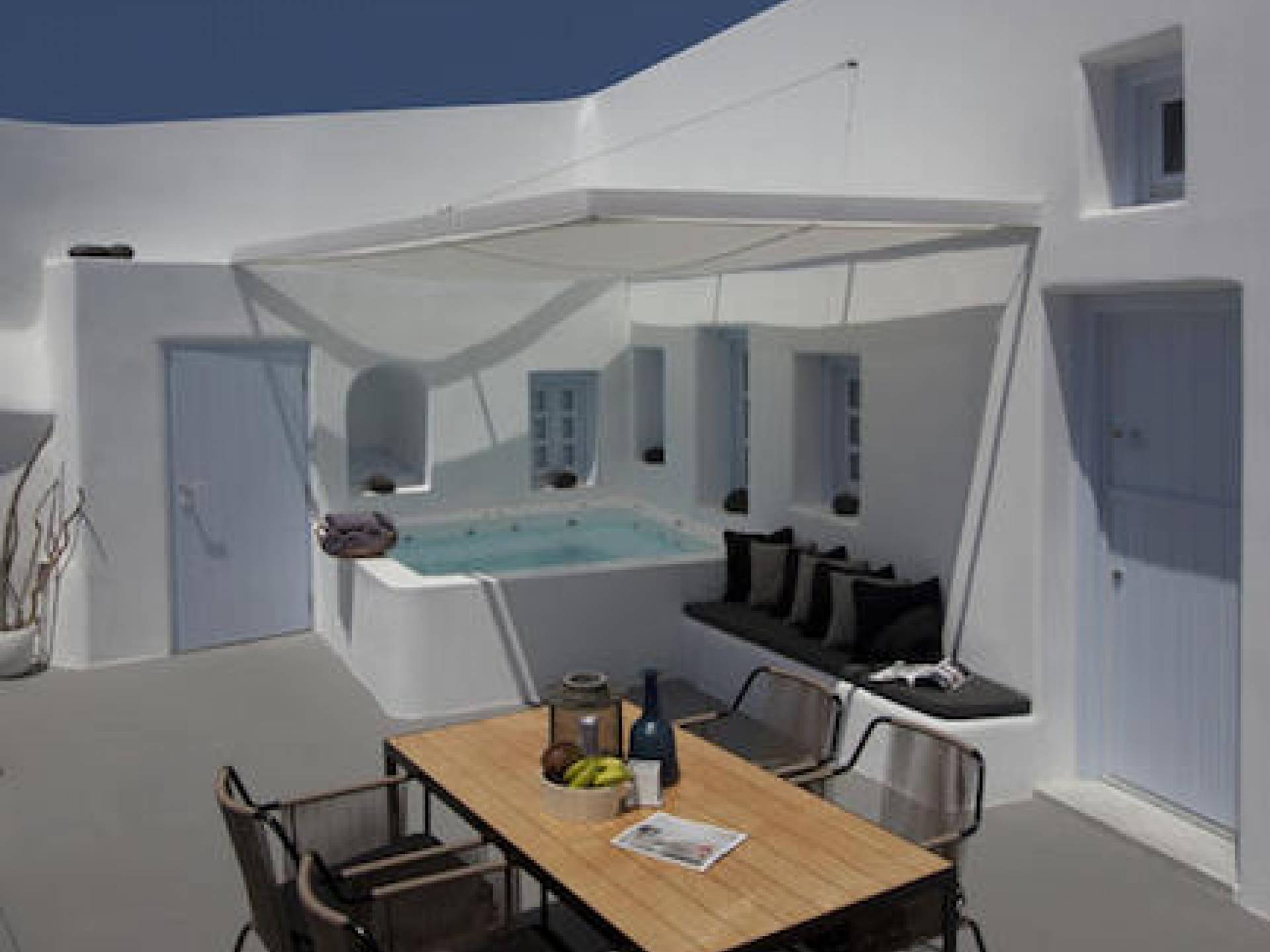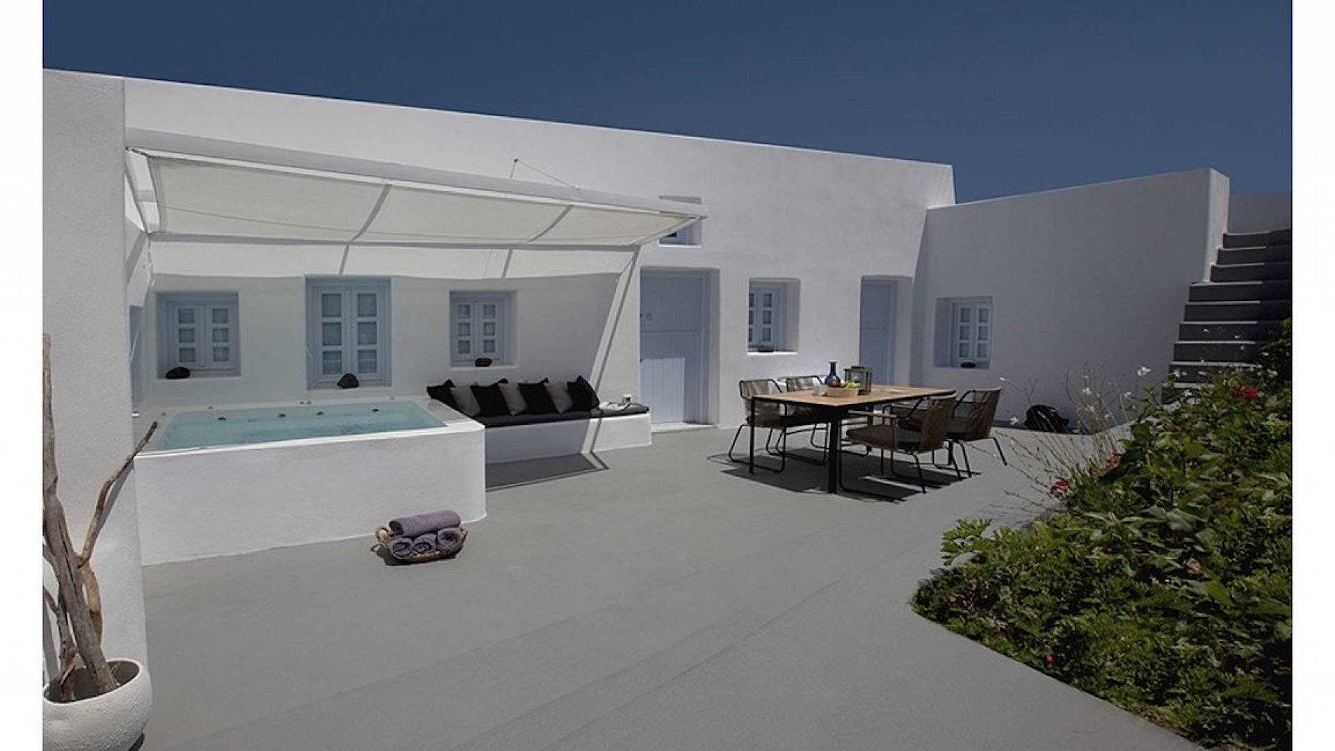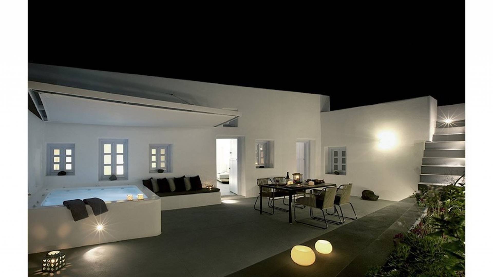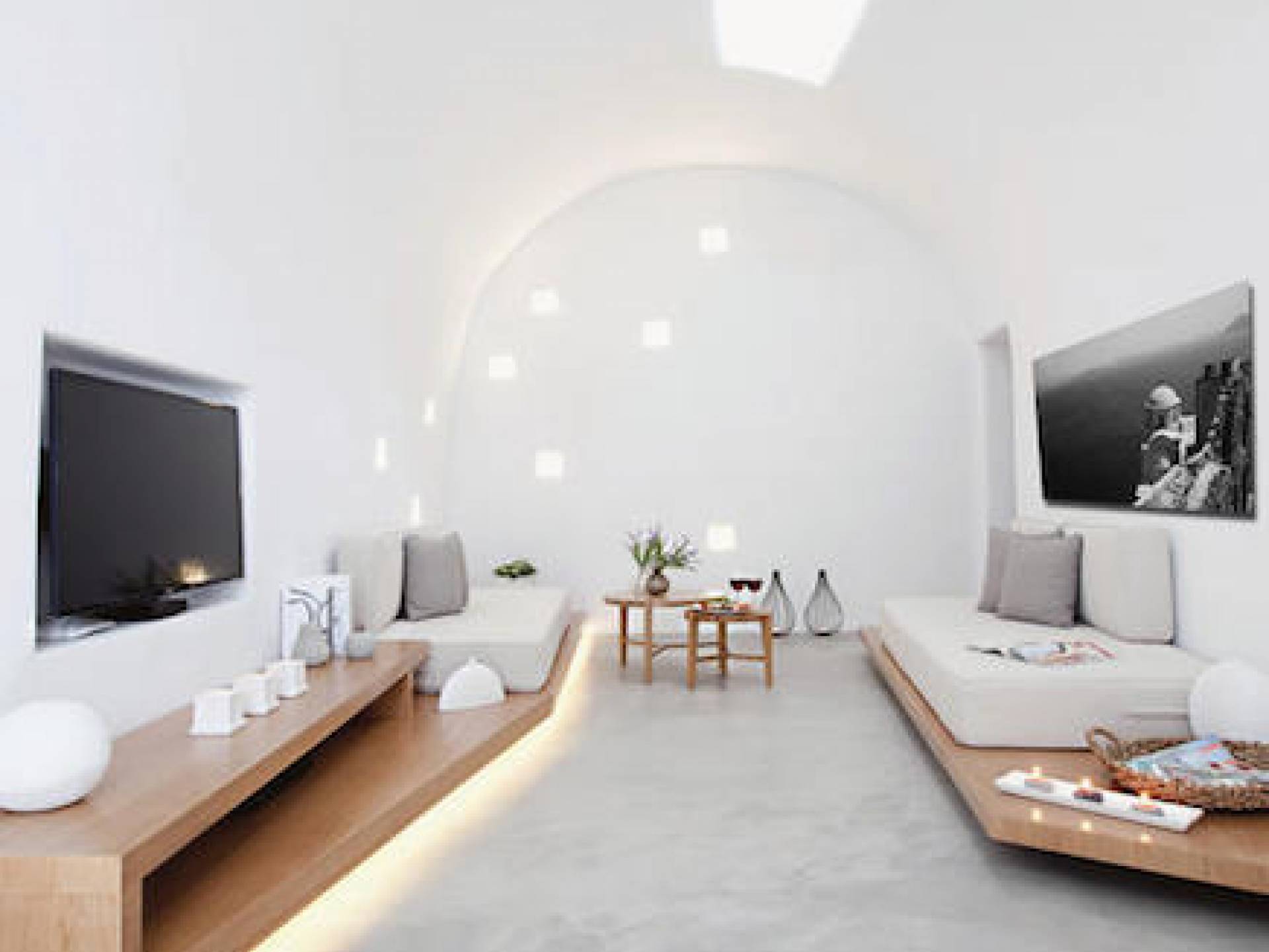 Anemolia Villa Santorini es un edificio tradicional del siglo XX, que fue renovado en 2013 por los arquitectos MPLUSM y el ingeniero civil Tziotis Georgios que combina la arquitectura tradicional de Thira con un toque minimalista de lujo y elegancia.