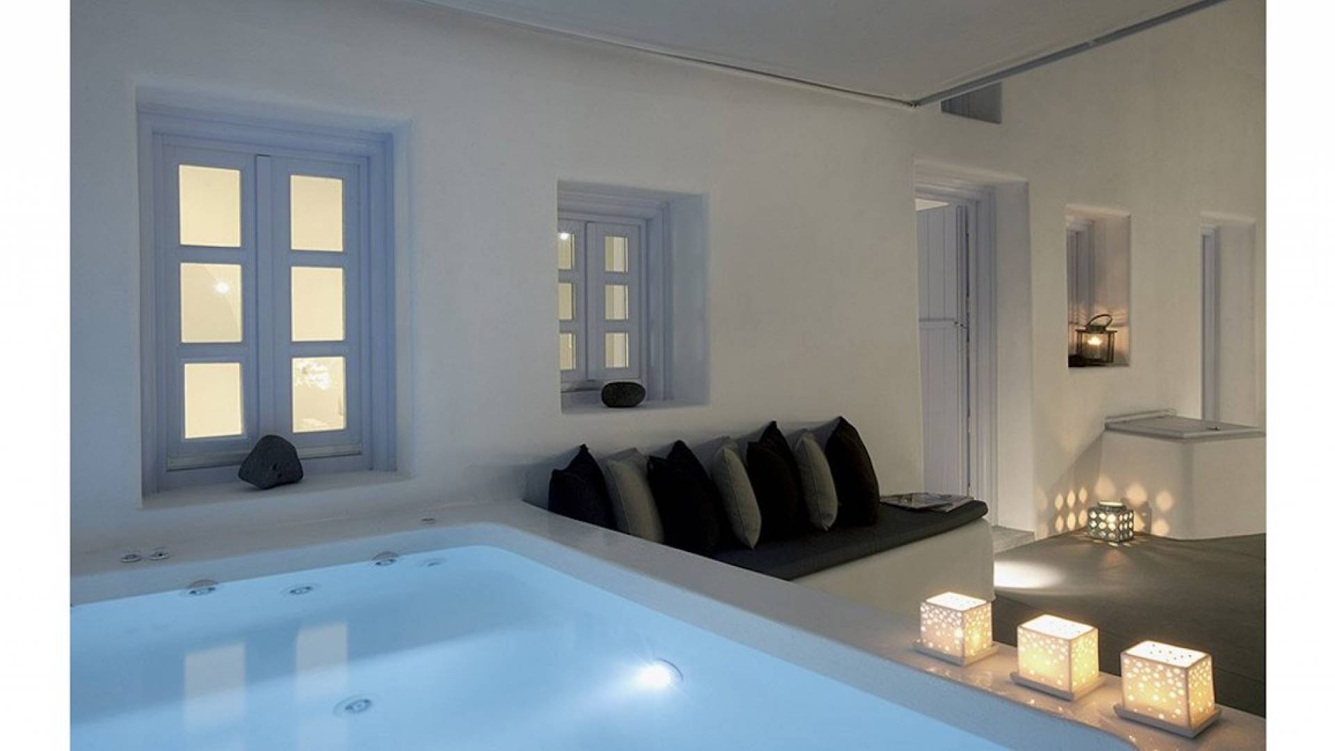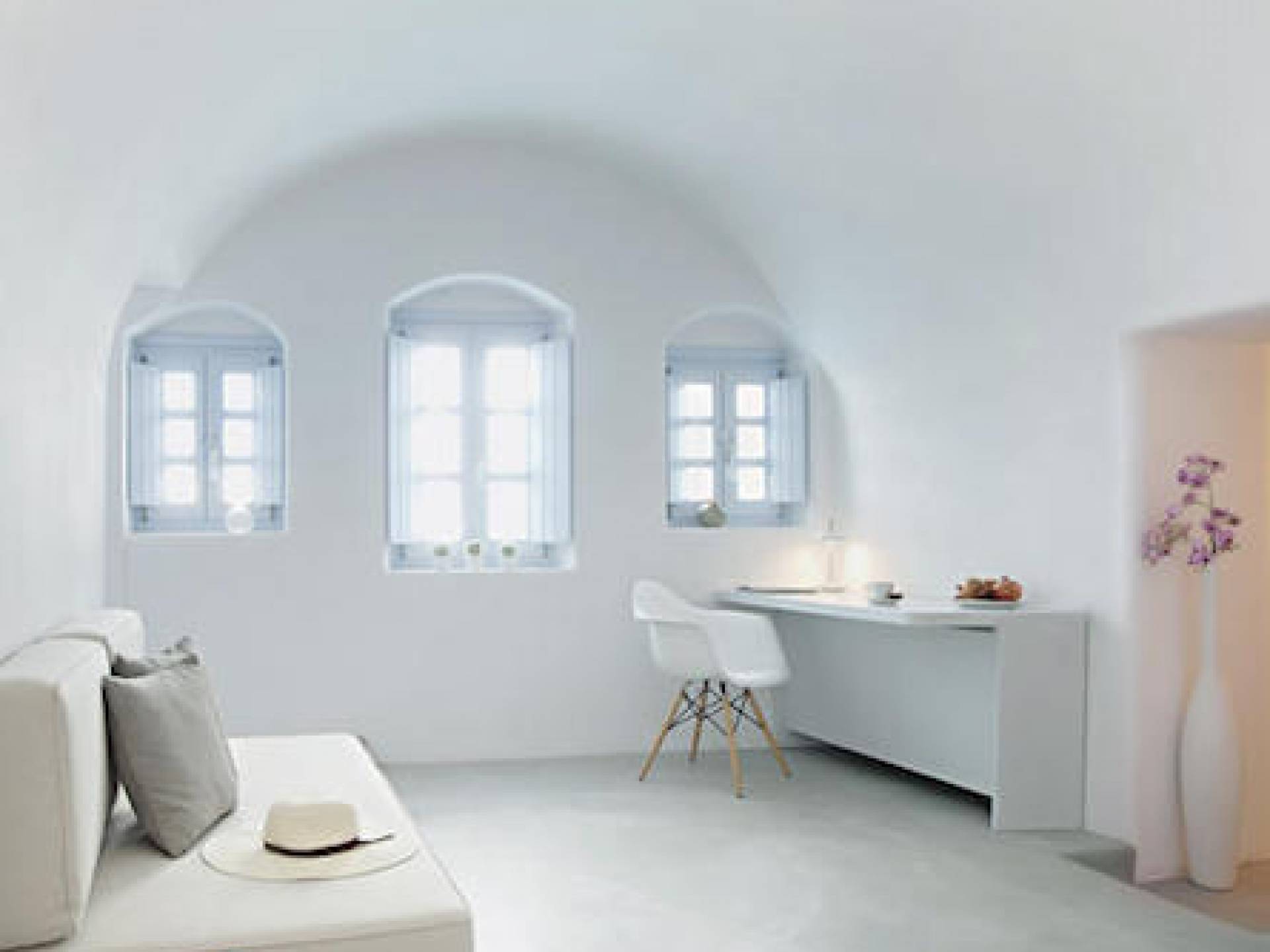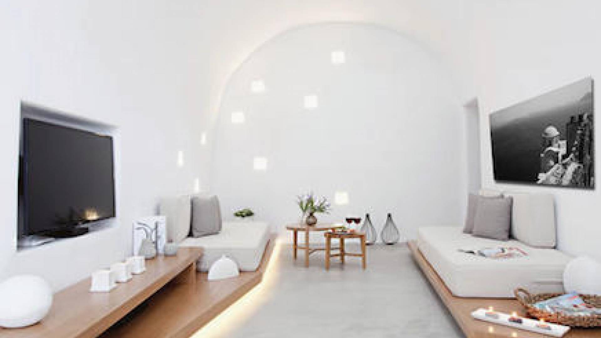 Anemolia Villa Santorini es un edificio tradicional del siglo XX, que fue renovado en 2013 por los arquitectos MPLUSM y el ingeniero civil Tziotis Georgios que combina la arquitectura tradicional de Thira con un toque minimalista de lujo y elegancia.