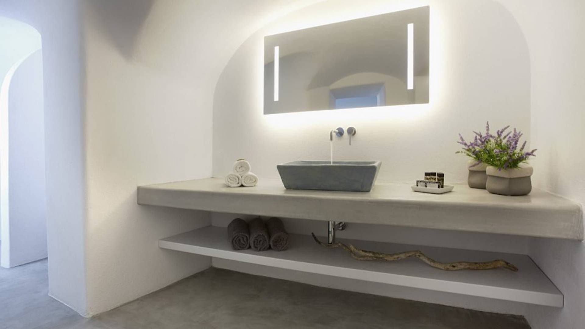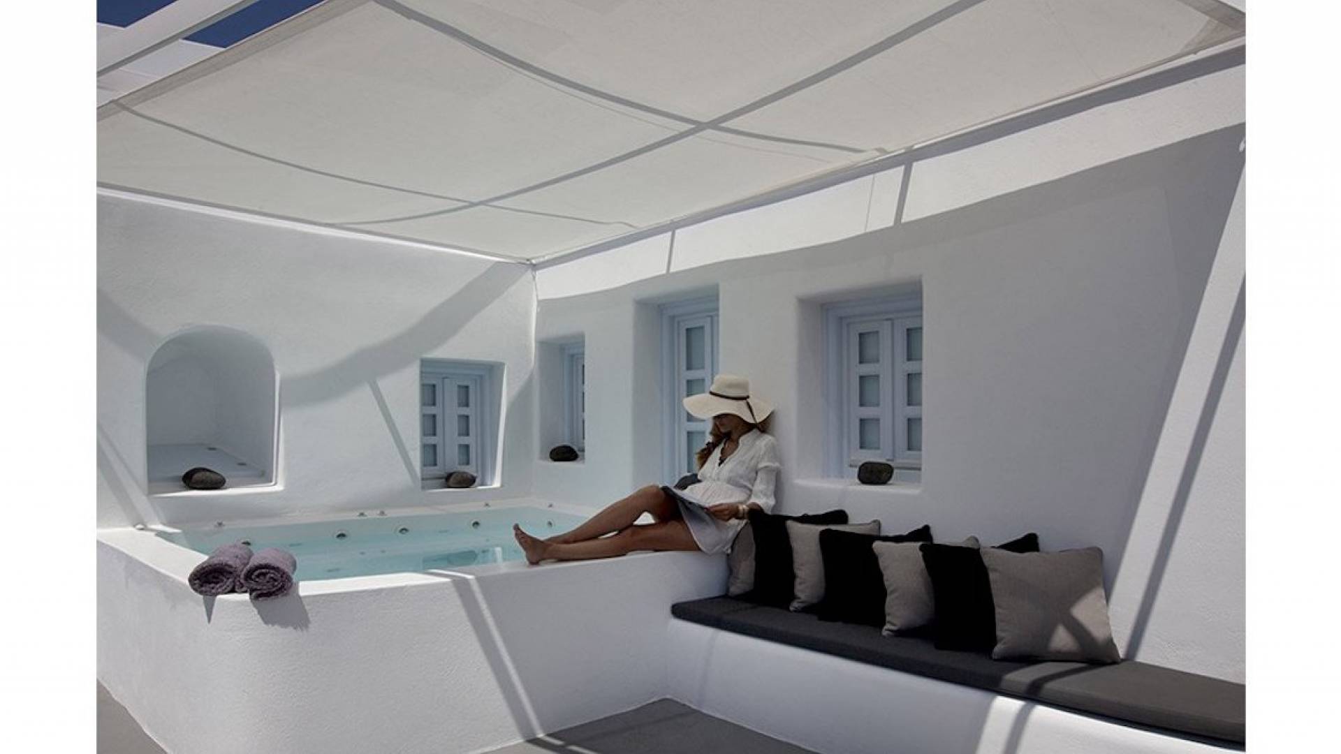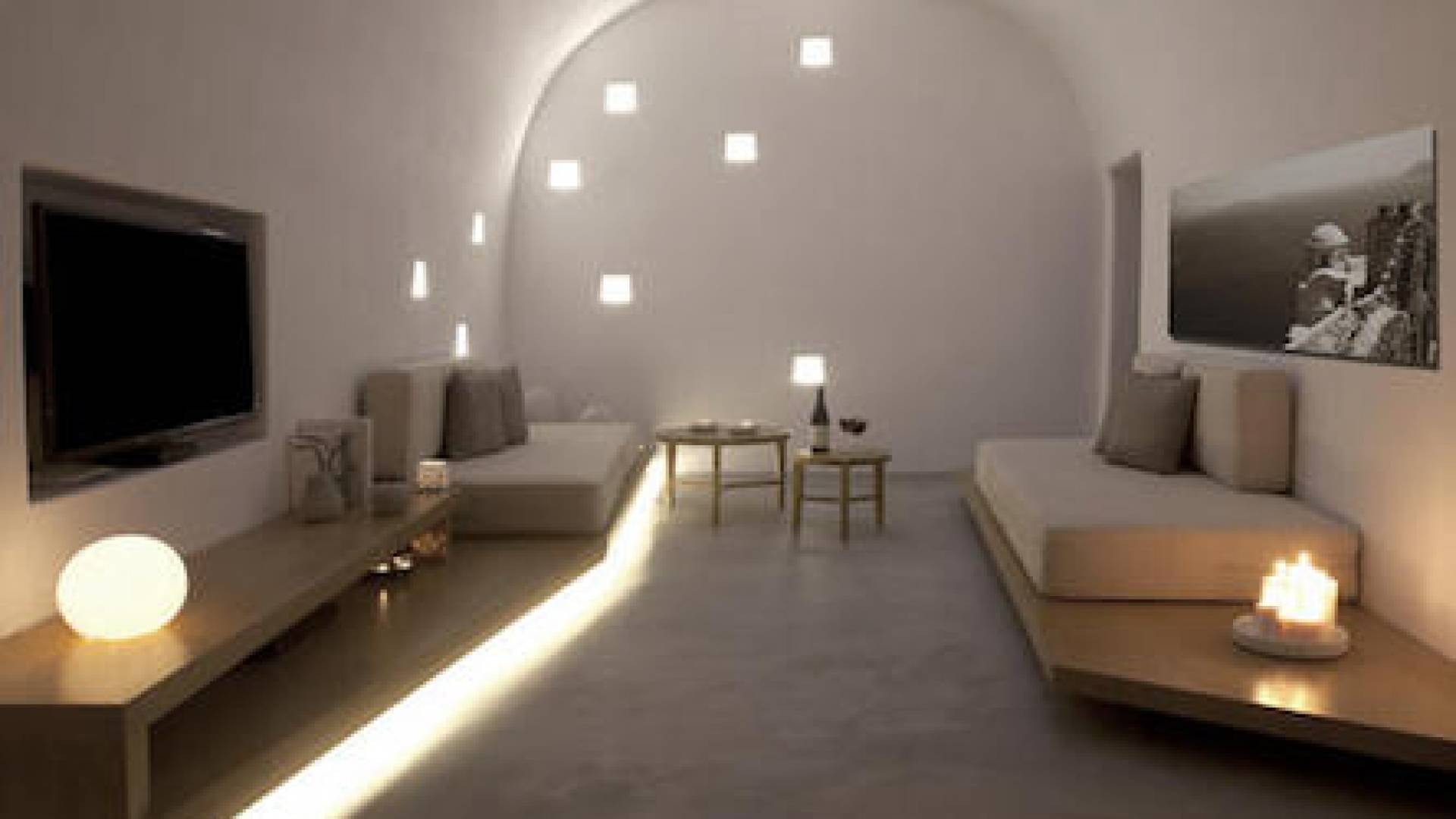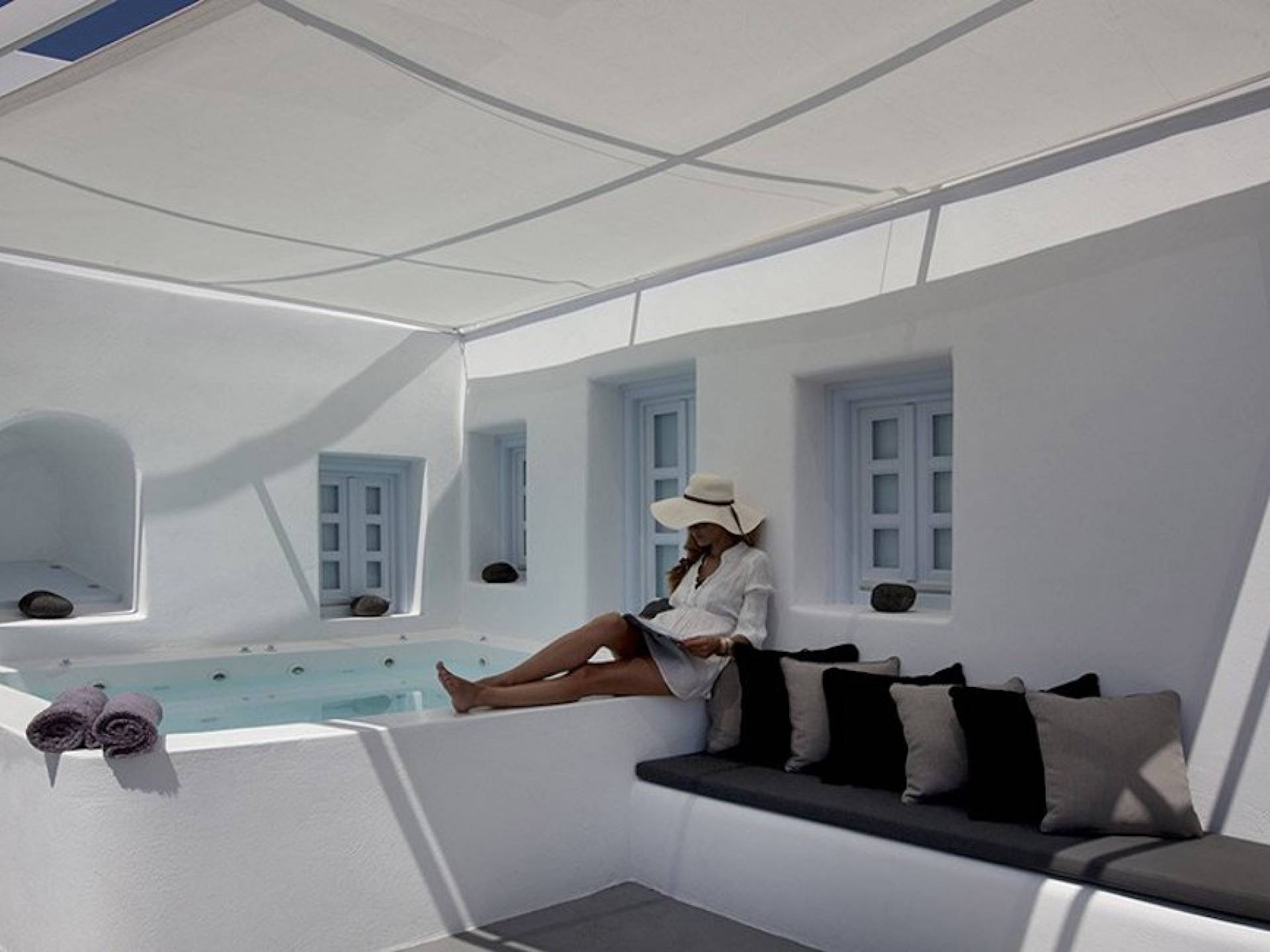 Anemolia Villa Santorini es un edificio tradicional del siglo XX, que fue renovado en 2013 por los arquitectos MPLUSM y el ingeniero civil Tziotis Georgios que combina la arquitectura tradicional de Thira con un toque minimalista de lujo y elegancia.