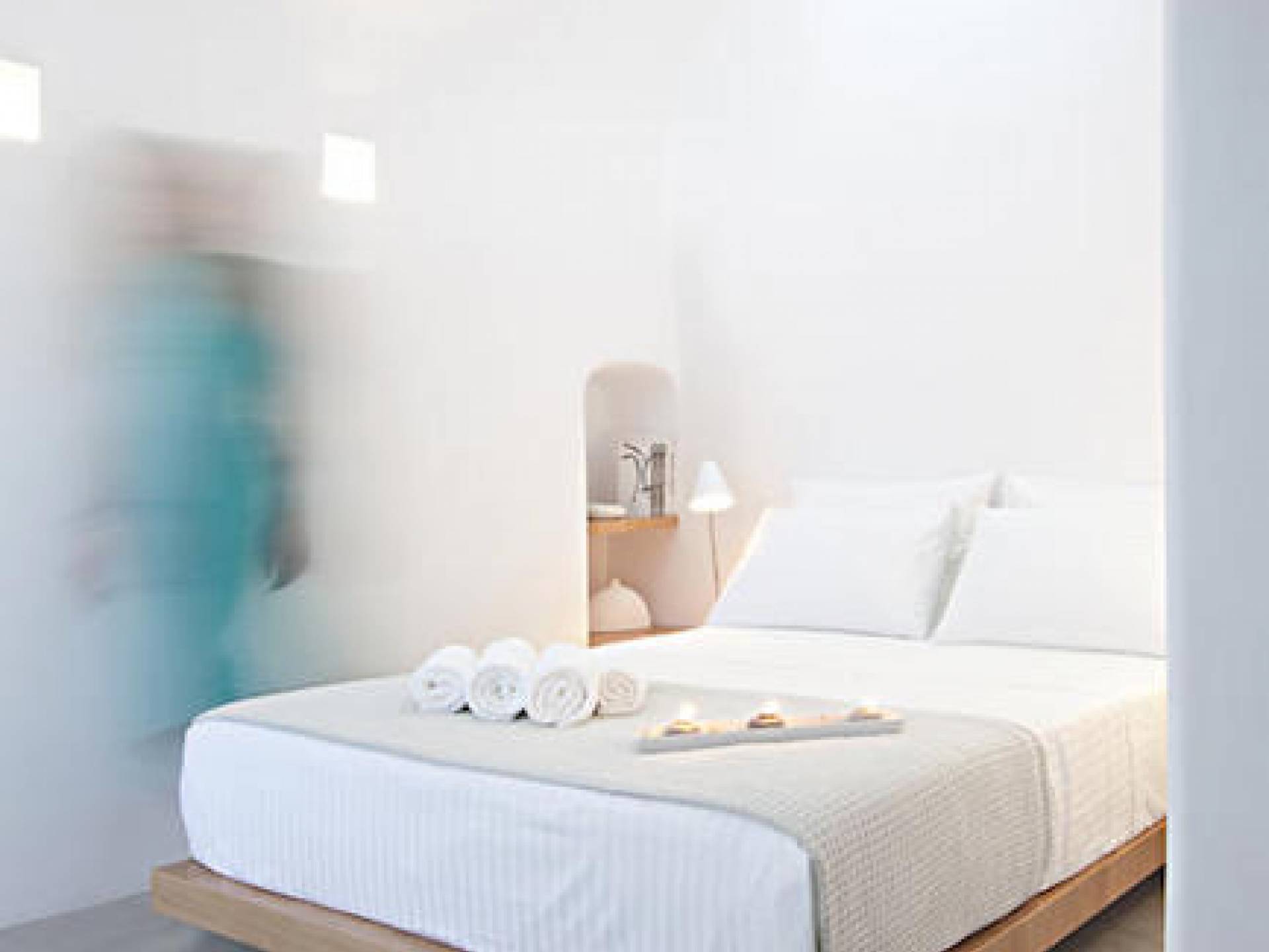 Anemolia Villa Santorini tiene capacidad para 6 personas y ofrece habitaciones espaciosas y bien equipadas con servicio diario, aire acondicionado en toda la Villa, patio con jacuzzi climatizado y terraza privada. El salón de la villa incluye dos sofás-cama con colchones anatómico-ecológicos de COCOMAT, Smart TV LED-3D, TV vía satélite y DVD Blue Ray. La villa Anemolia tiene dos dormitorios, cada uno con su propio baño. Las camas son dobles y están equipadas con colchones y cubrecolchones anatómicos ecológicos de COCOMAT y ropa de cama de marca. Cada dormitorio tiene Smart TV LED-3D y TV vía satélite. La cocina está totalmente equipada con vitrocerámica, microondas, heladera, cafetera, otros pequeños electrodomésticos y todos los utensilios necesarios.