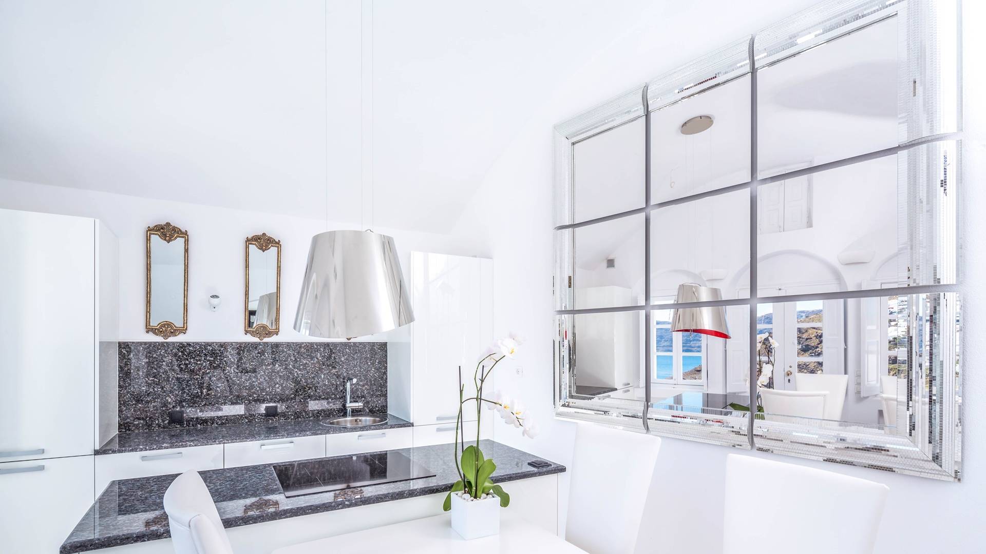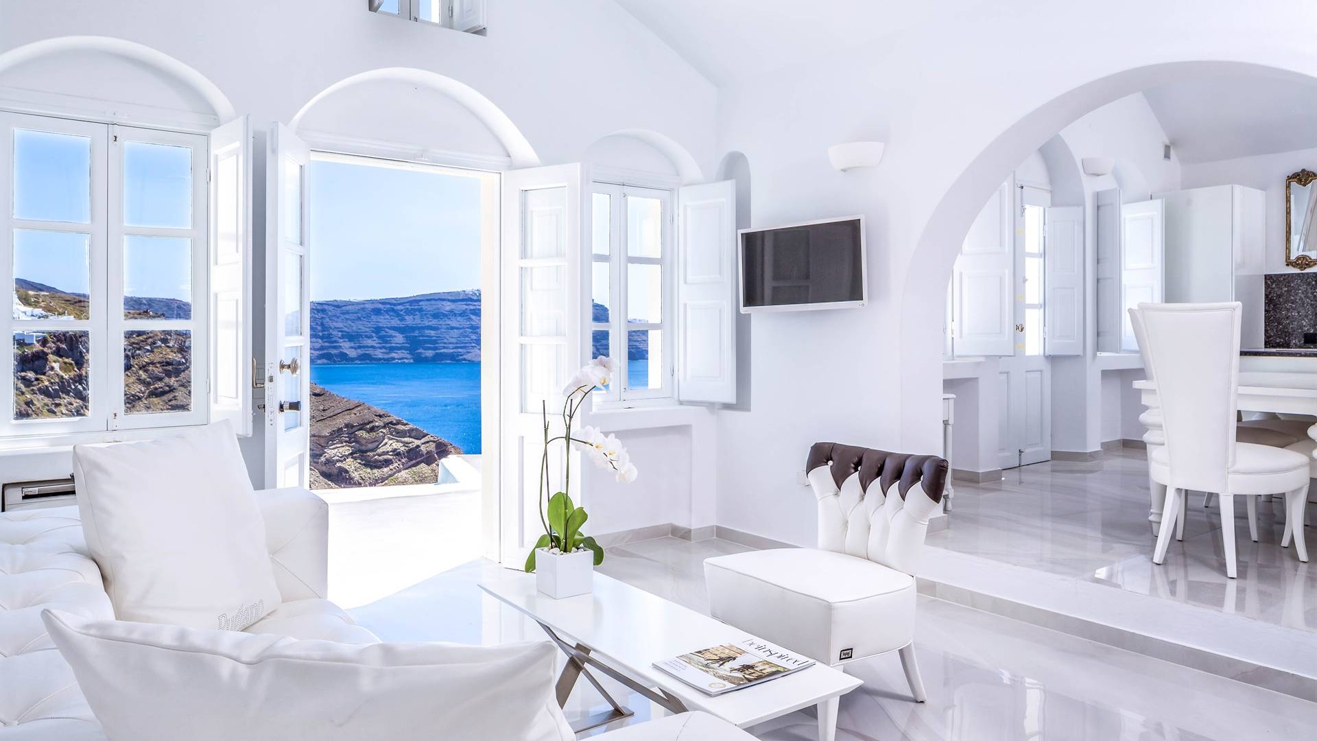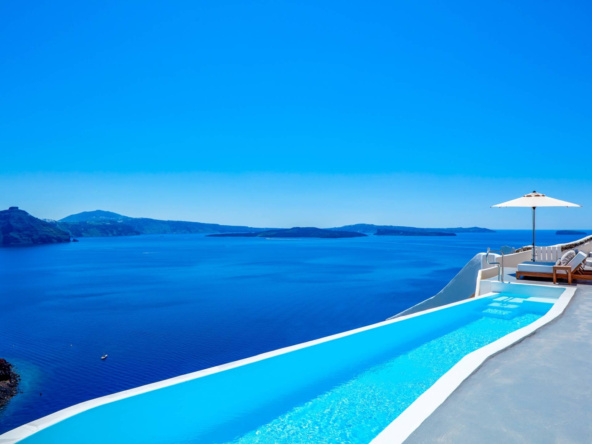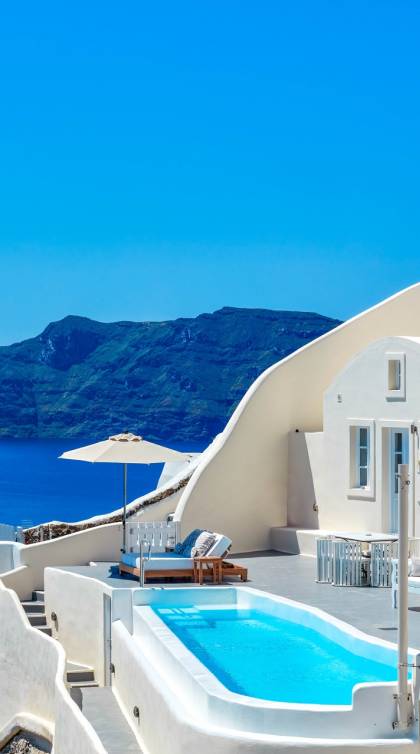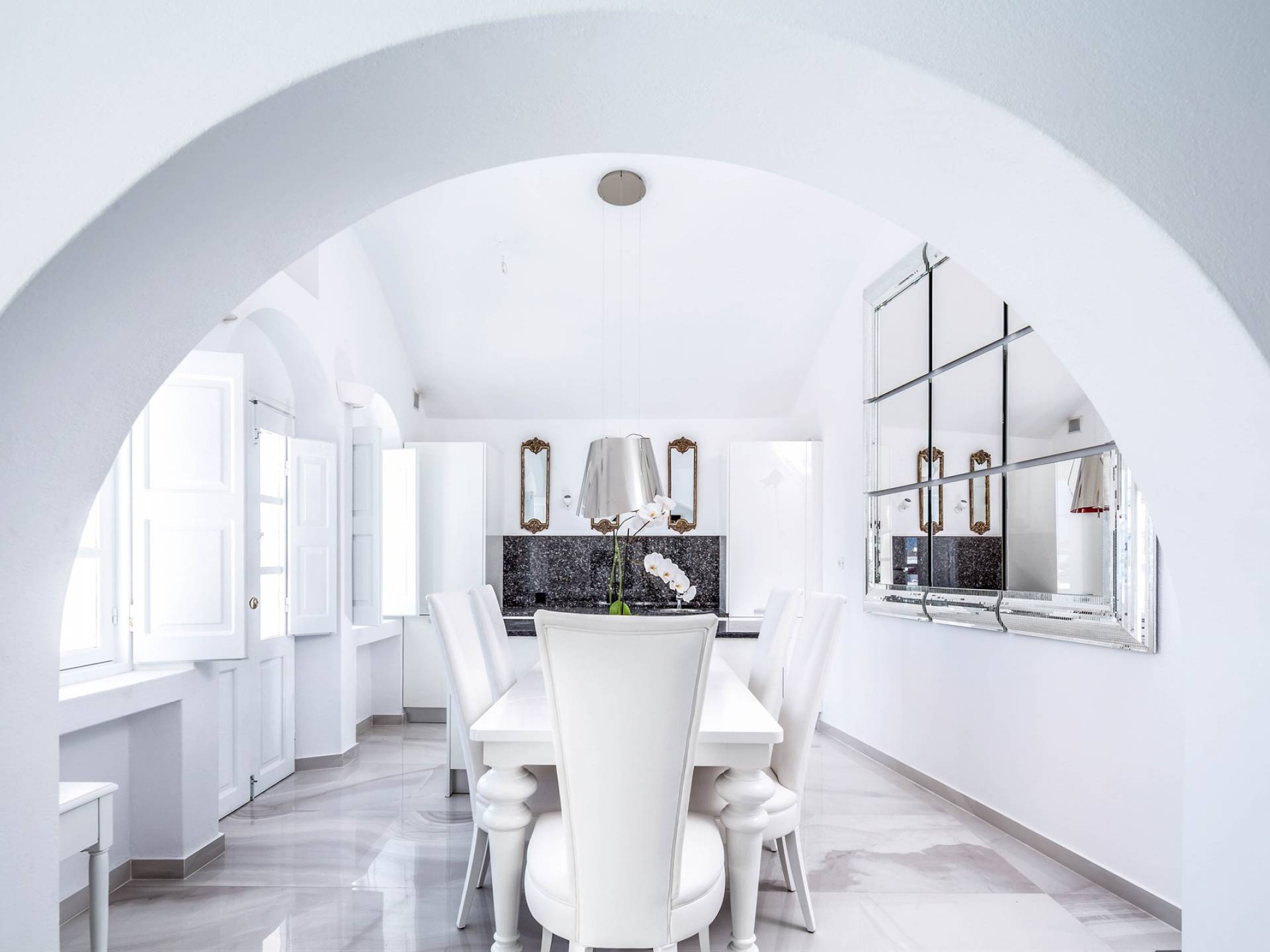 Dos grandes terrazas privadas con una gran piscina infinita iridiscente y una gran bañera de hidromasaje, y un comedor al aire libre, ofrecen espléndidas vistas panorámicas del mar Egeo, el volcán misteriosamente atractivo y la encantadora caldera, asegurando que aquellos vistas cautivadoras siempre están a la vista. Para experiencias gastronómicas finas, Canaves Villa ofrece la opción de un chef privado y servicio de mayordomo. Canaves Villa es la mejor opción para familias con niños pequeños o grupos de amigos que viajan juntos y buscan privacidad y comodidad en la idílica Santorini.
