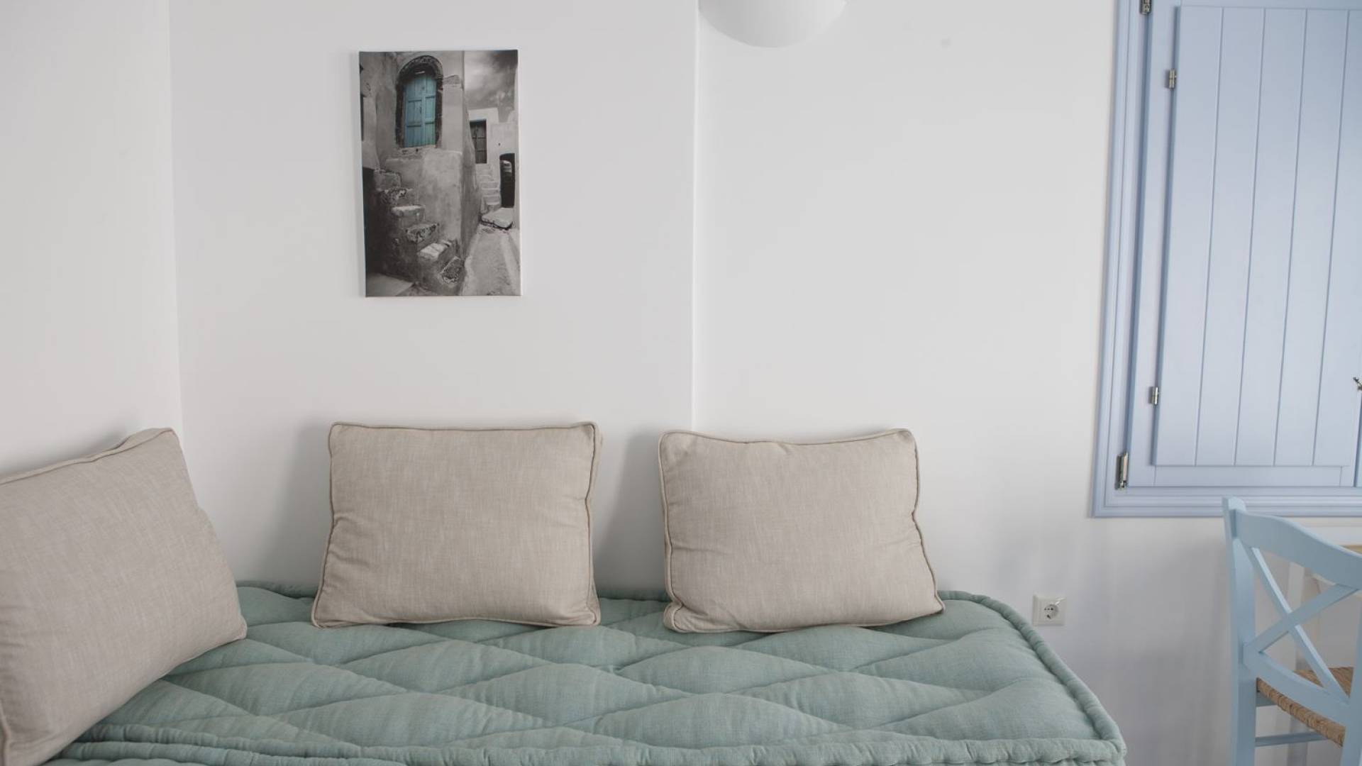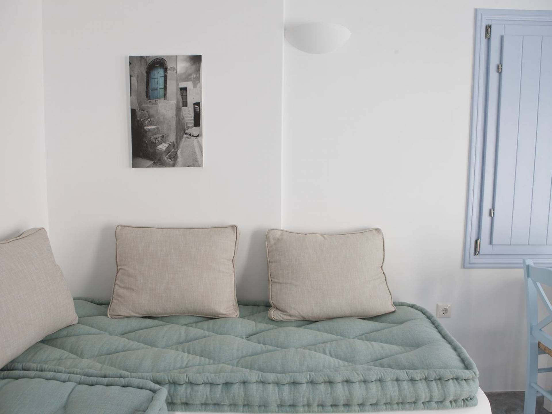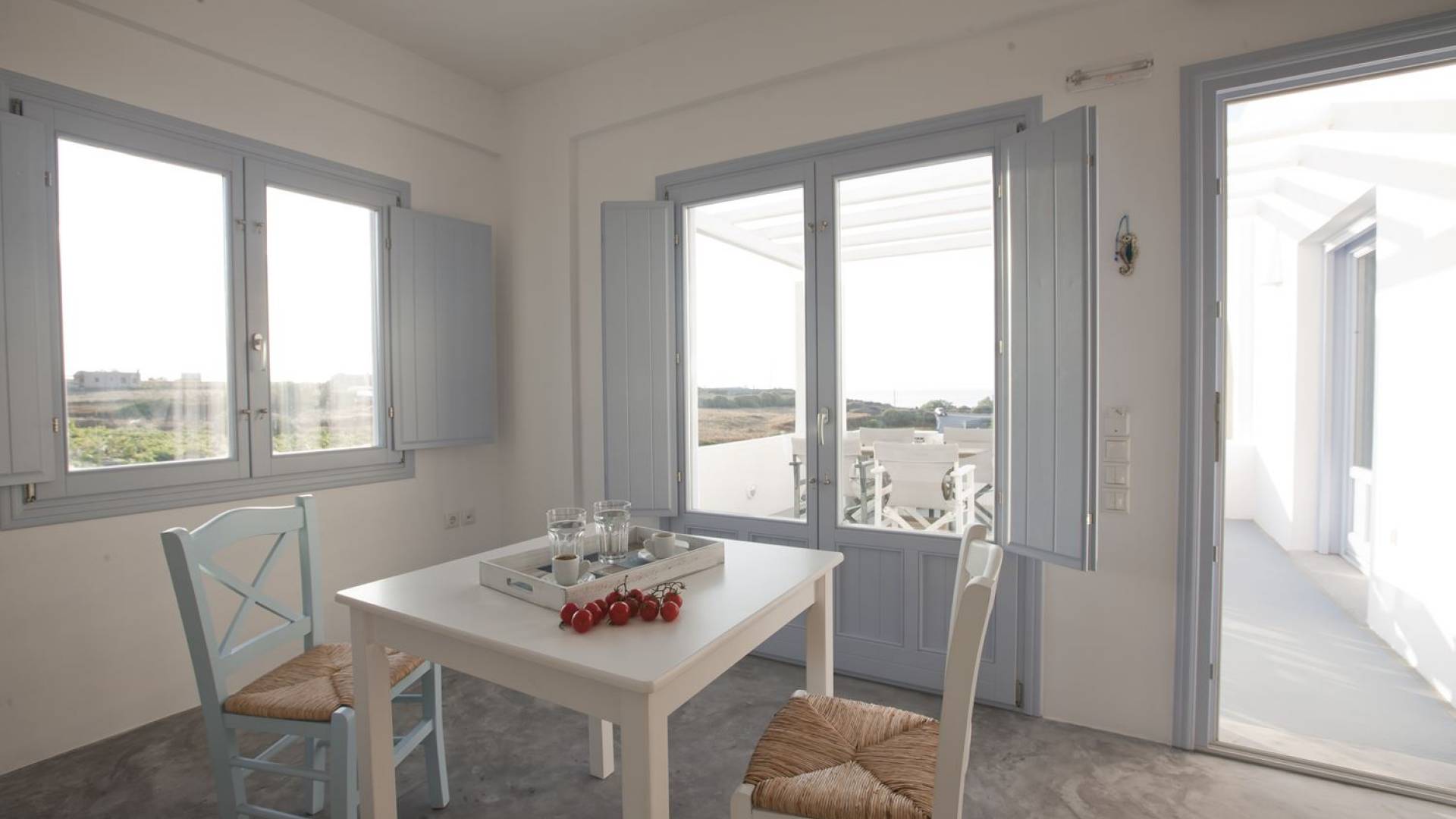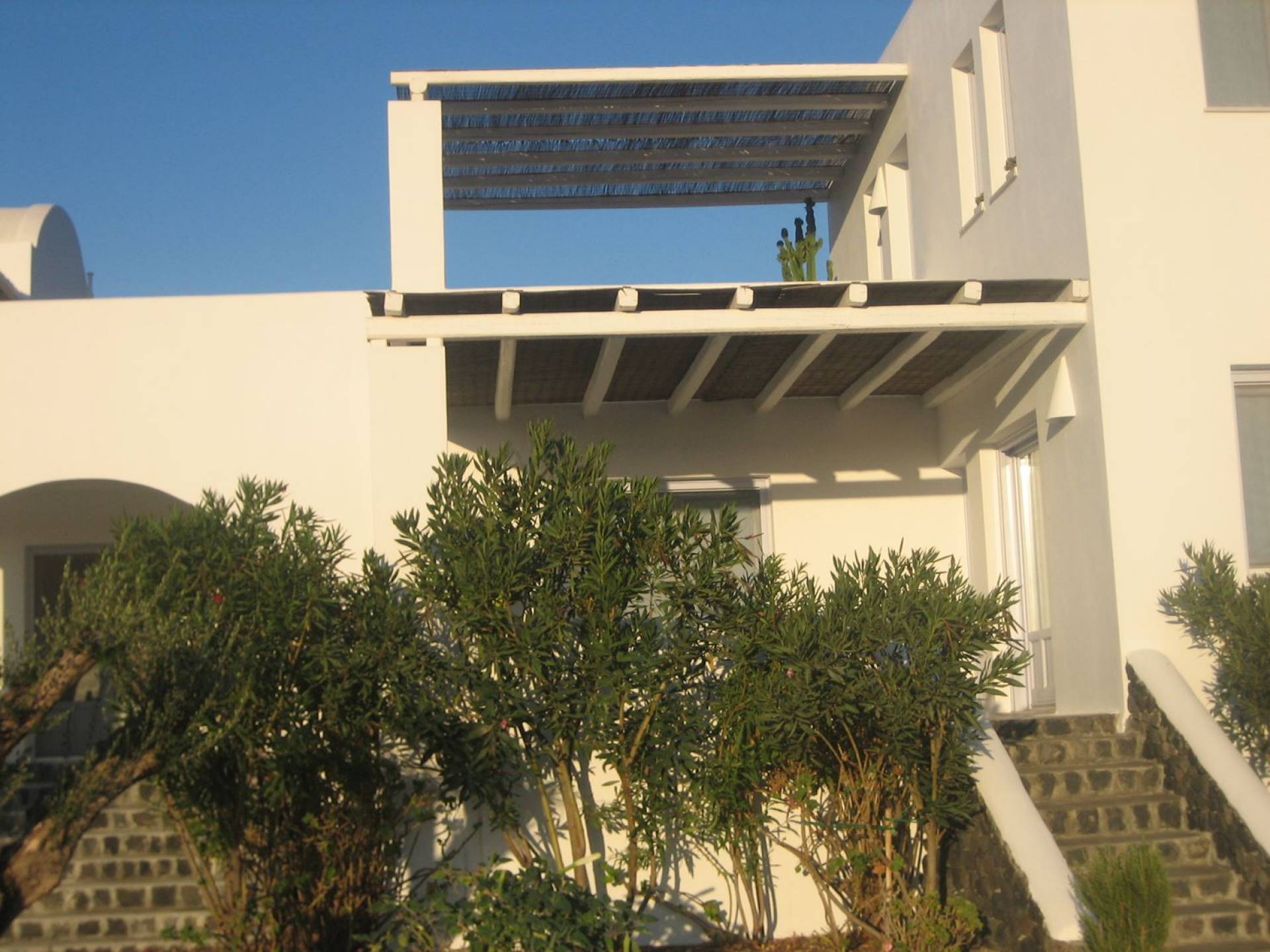 Haciendo hincapié tanto en el estilo elegante como en la hospitalidad, estamos convencidos de que su alojamiento será inolvidable y su equipaje estará lleno de colores, aromas, imágenes y sensaciones que no solo no se olvidarán sino que serán suficientes para traerle pronto regresaremos a la magnífica y majestuosa isla de Santorini. Helios Suite en Sun Anemos Santorini es una suite de lujo en alquiler con 2 dormitorios. Una suite extremadamente cómoda de 60sq. metro. con entrada independiente y una gran terraza privada de 20 m2. con pérgola. Oferta Helios Suite: un dormitorio con una cama king-size, una habitación especialmente diseñada con una cama doble empotrada y en la sala de estar, hay dos sofás empotrados tradicionales que pueden acomodar a dos personas. También tiene una cocina completamente equipada, un baño con ducha a ras de suelo y tiene capacidad para 6 personas como máximo.
